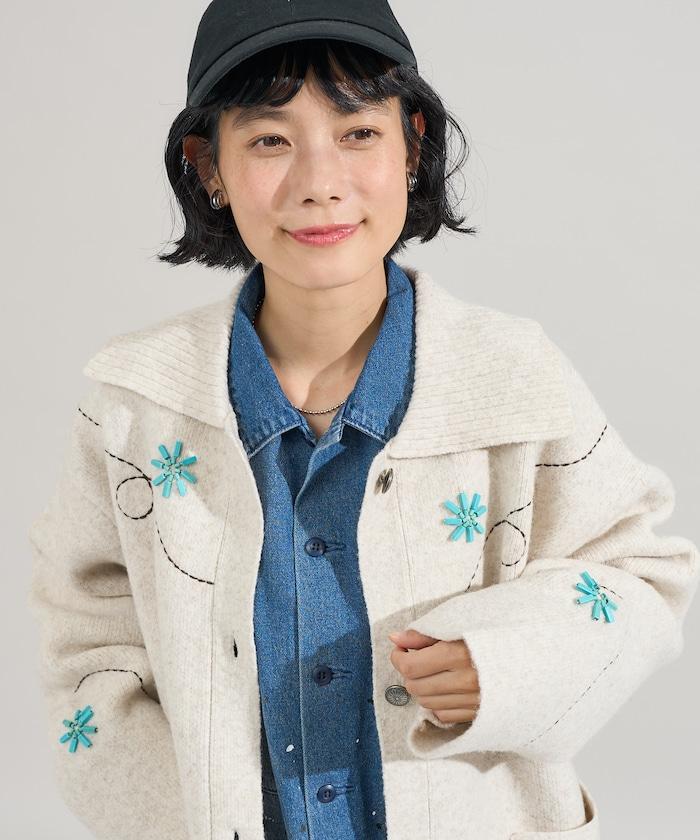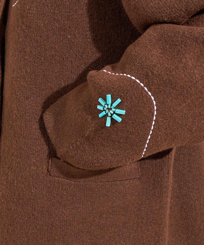 串珠裝飾、縫線、錐形紐扣和其他細節讓這款開衫極具吸引力。