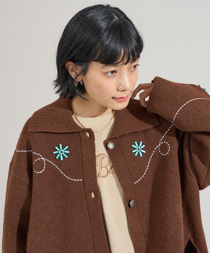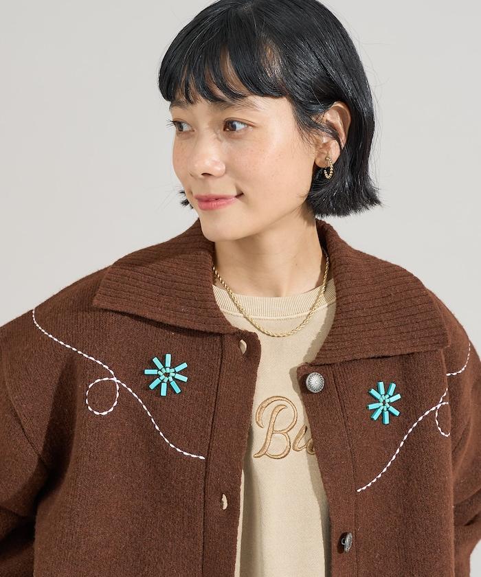 這款針織開衫採用了類似西部襯衫的設計,非常吸引人。