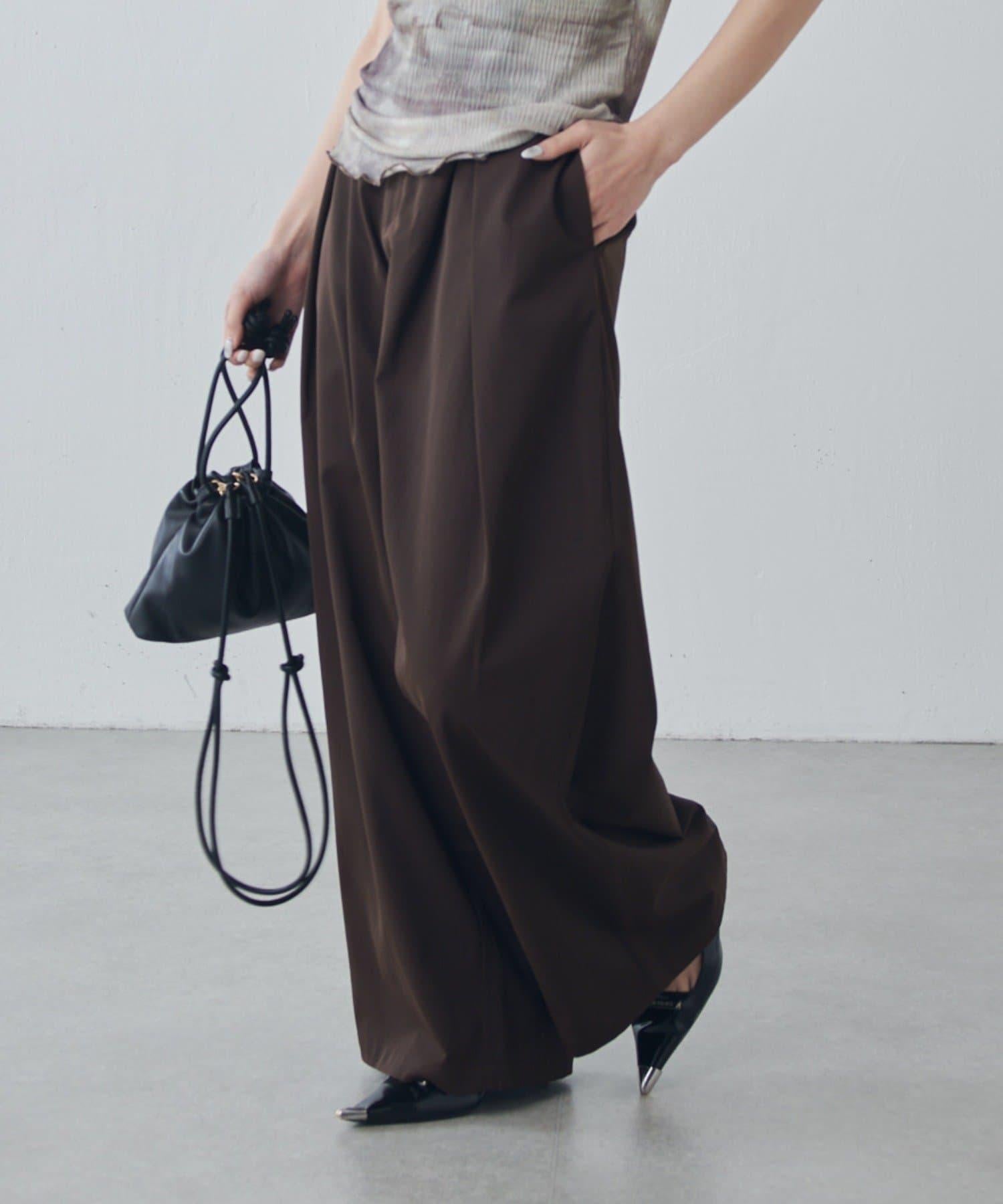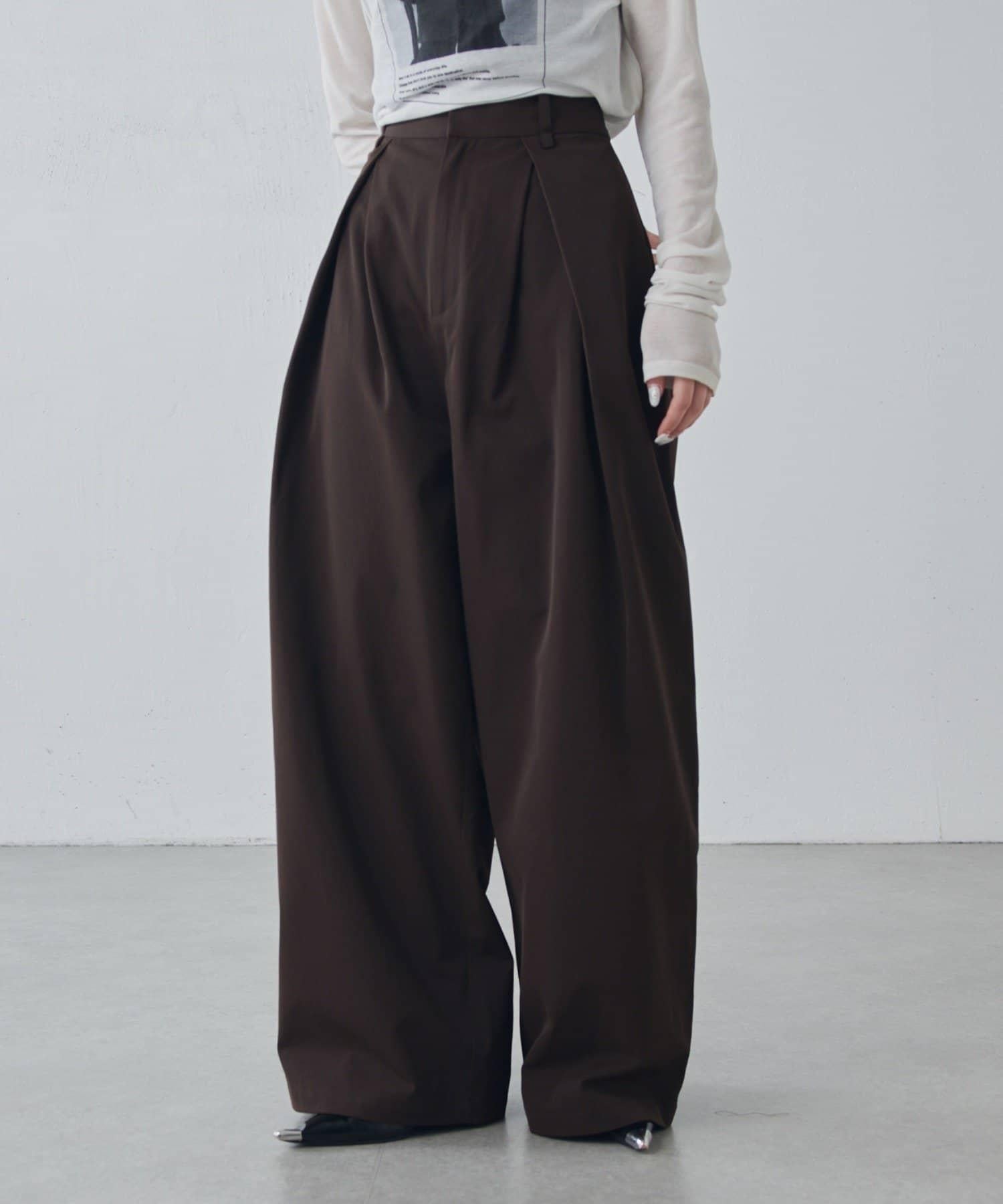 寬大的廓形整齊地採用深襉,是一款注重流暢下垂廓形的連衣裙。