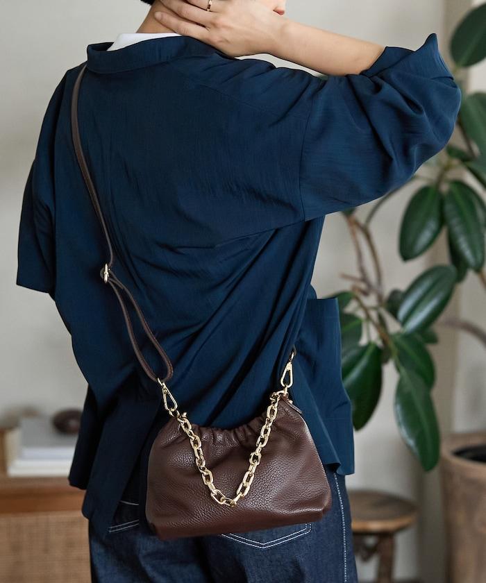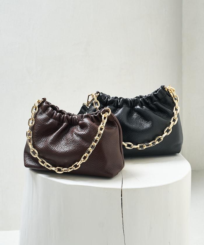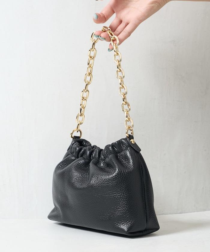 真皮迷你手袋,採用上等皮革和金色鏈條裝飾,提升您的氣質。
