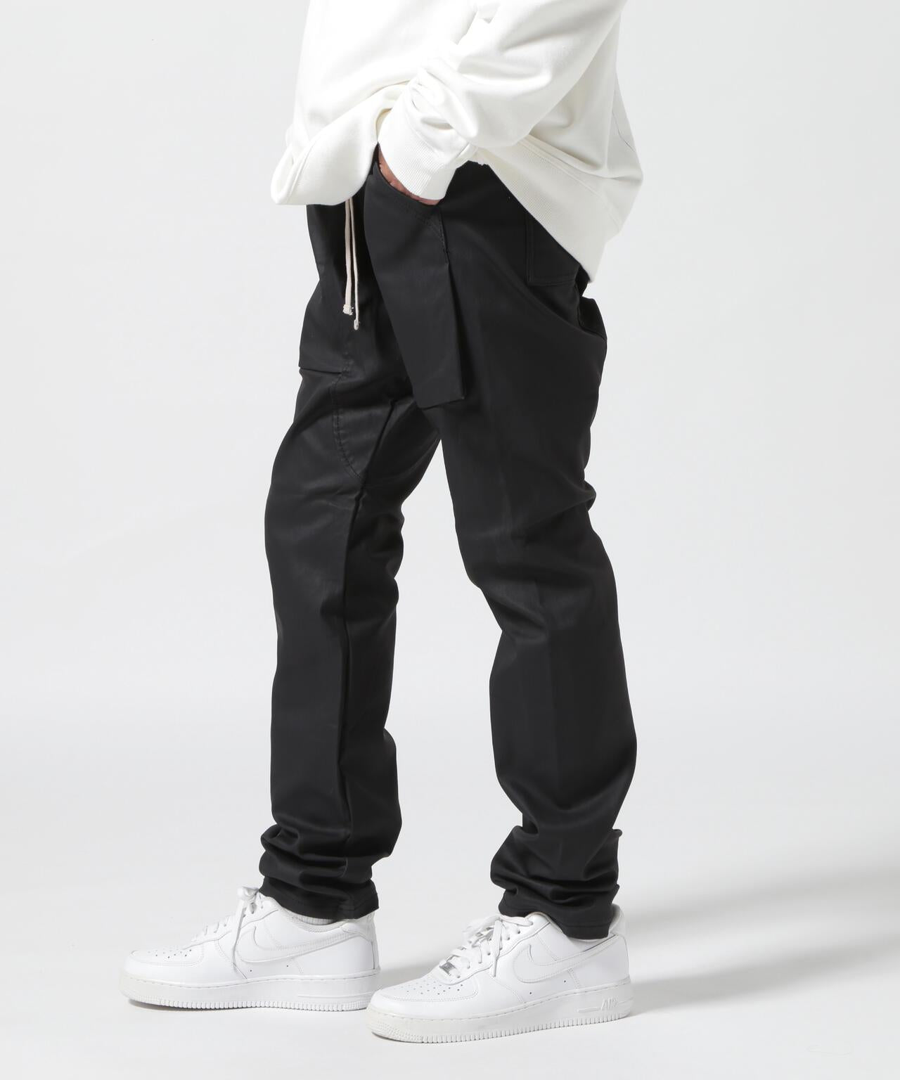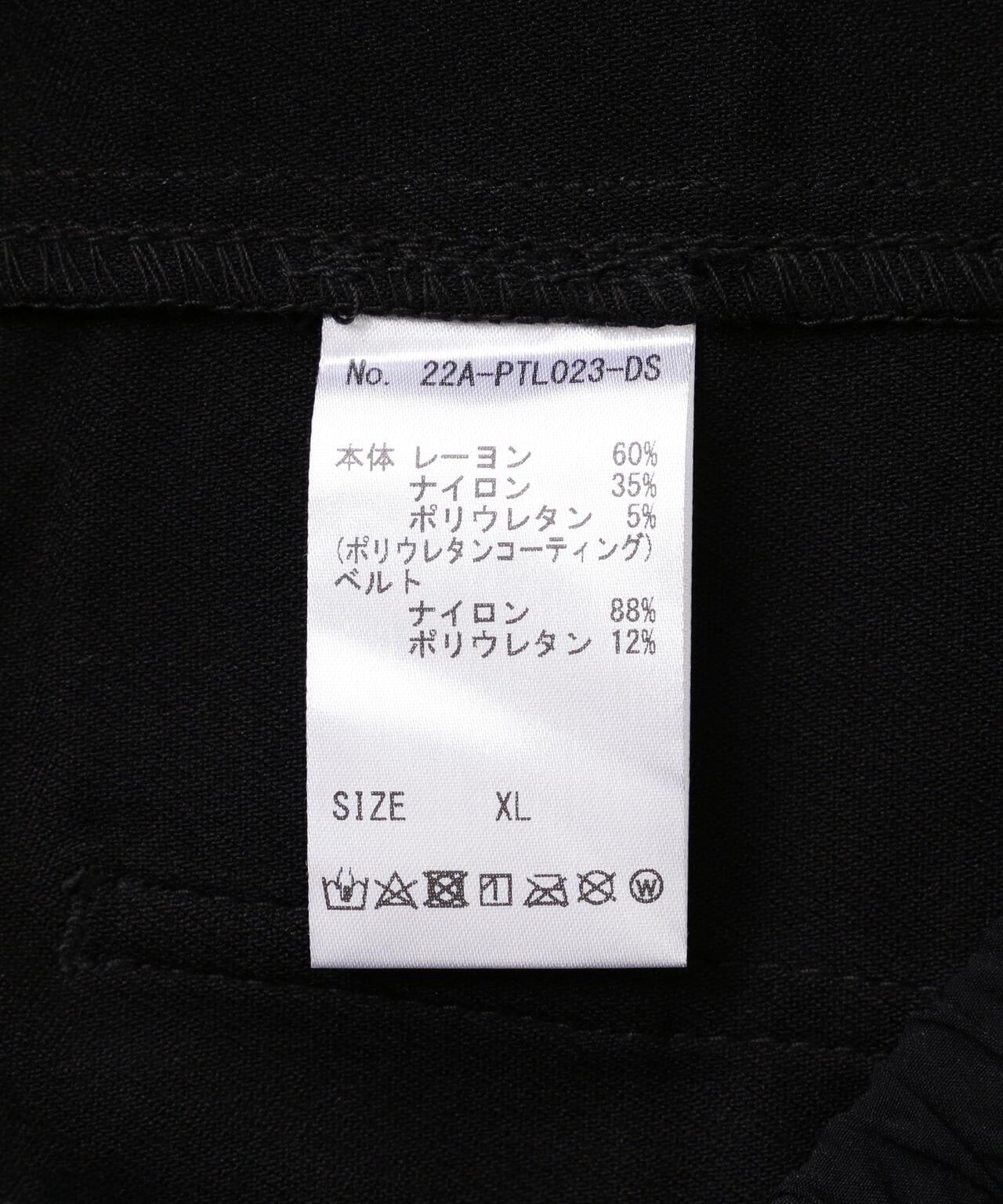 通過在 DankeSchon 褲身塗上一層塗層,這款沙魯埃爾長褲擁有了皮革長褲的外觀。在這款修身慢跑長褲上塗覆塗層,使其具有類似於模型的設計,消除了粗糙的印象。寬鬆的剪裁搭配深襠設計,盡顯淑女風範。腰部的灰塵色抽繩可用於突出造型。高收縮性材料的使用再現了修身的輪廓,既貼合身體,又穿著無壓力。整體設計簡約,因此可搭配多種風格,從休閒到時尚,從街頭到傳統,都不難搭配。
