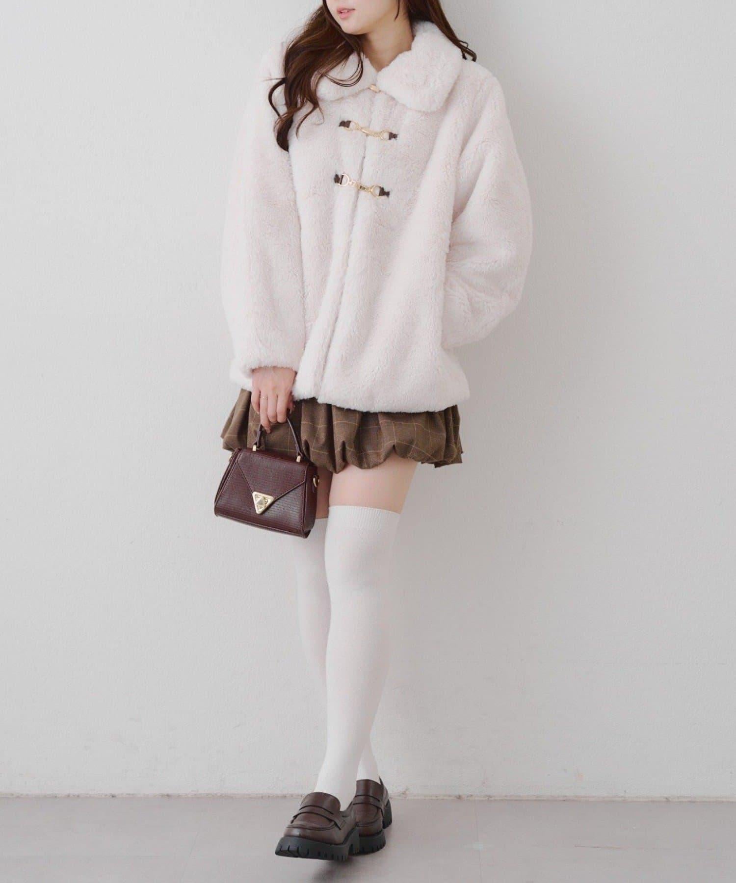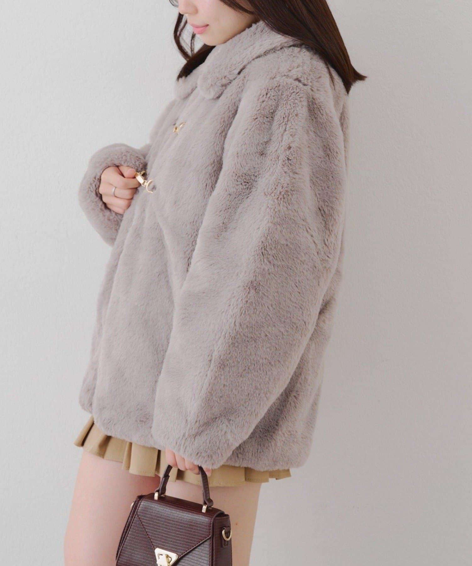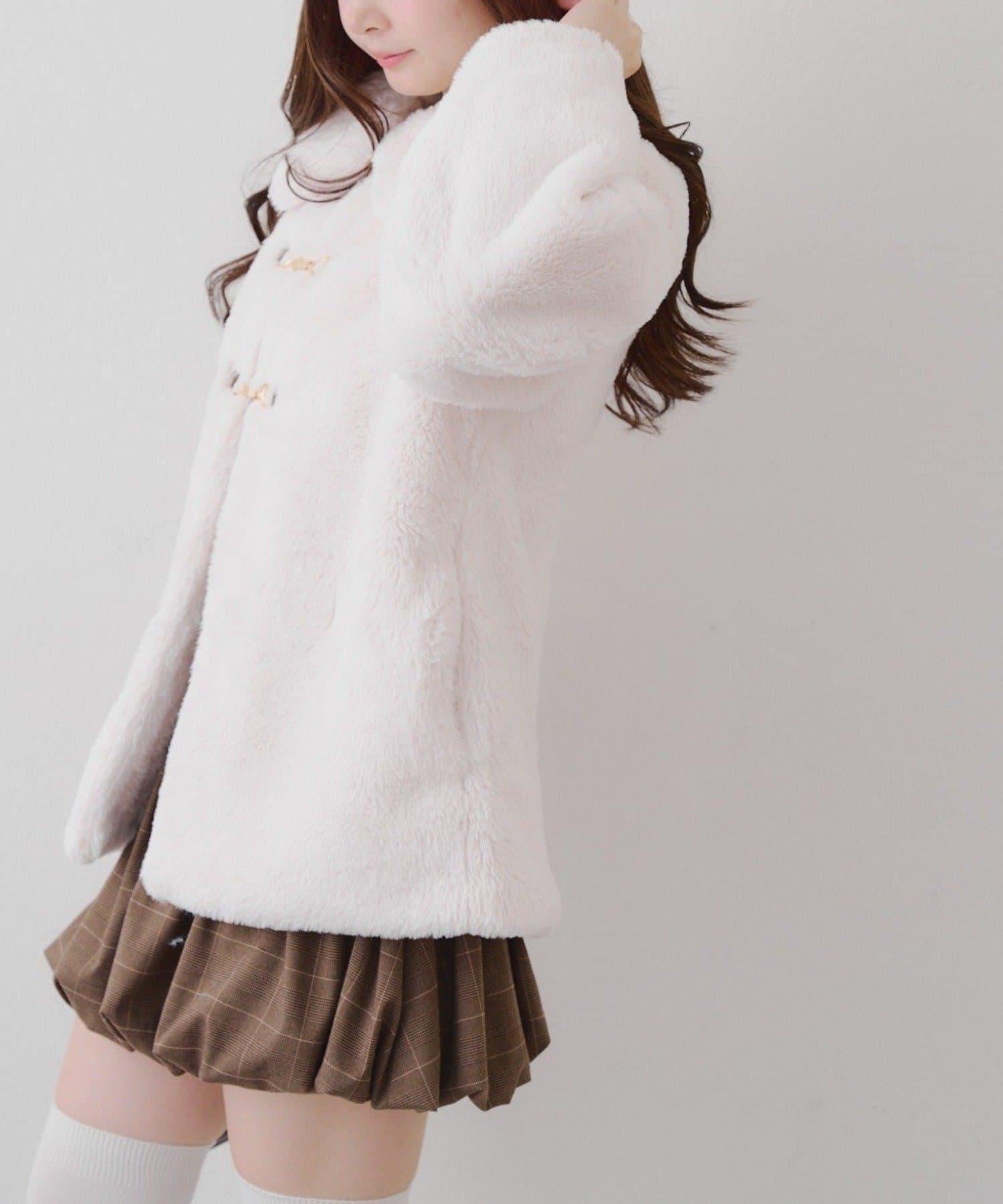 預約商品讓人期待冬天♡兔毛球裝飾中長款大衣