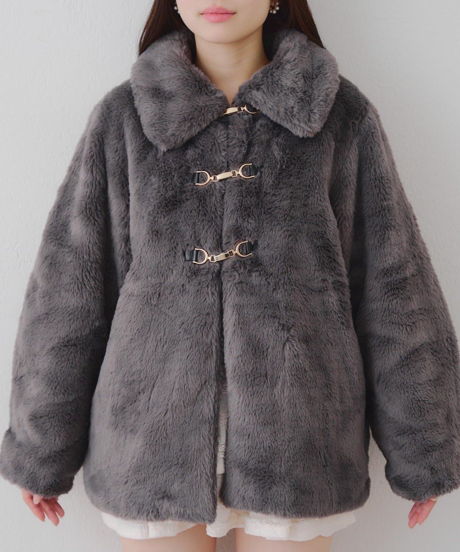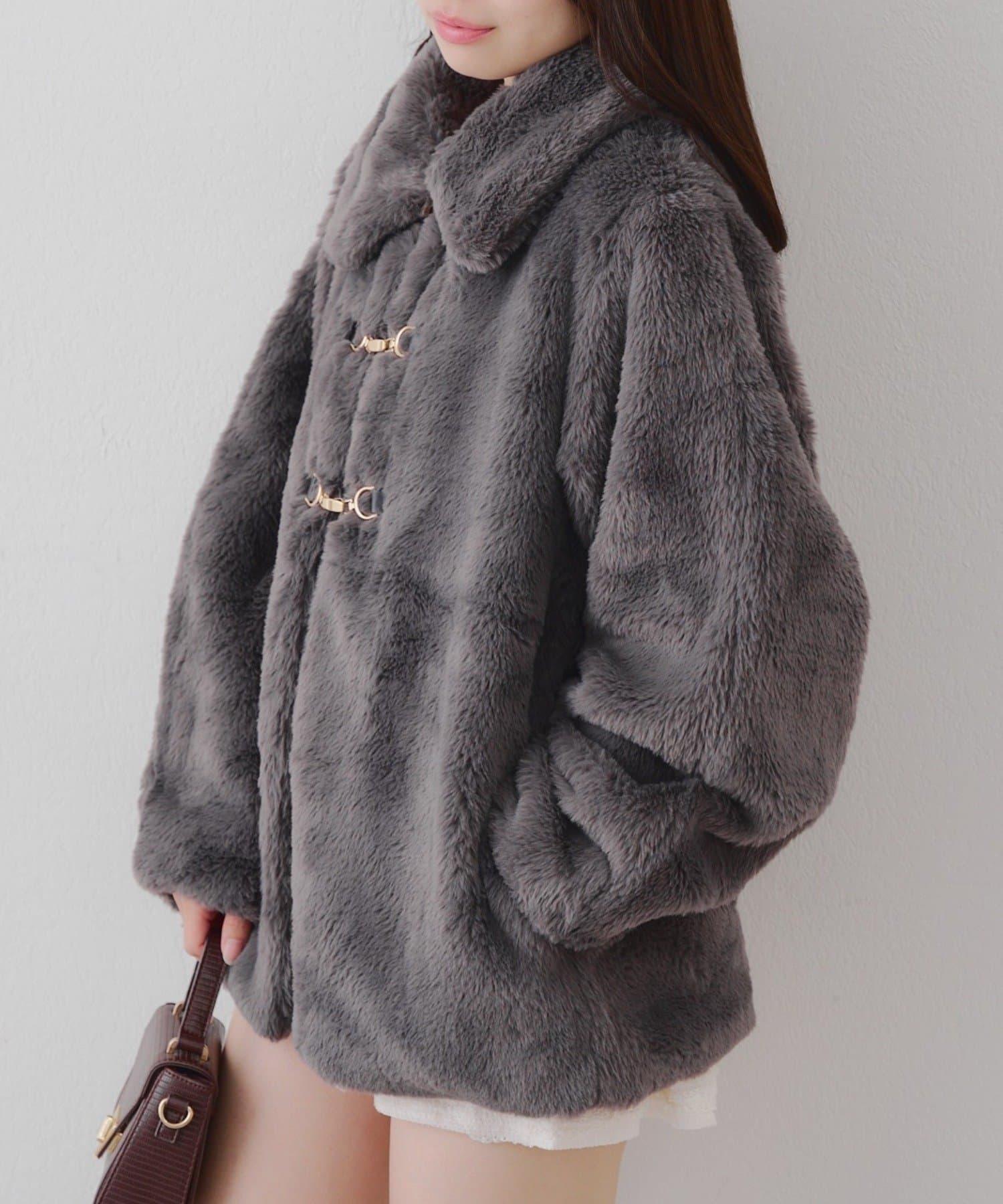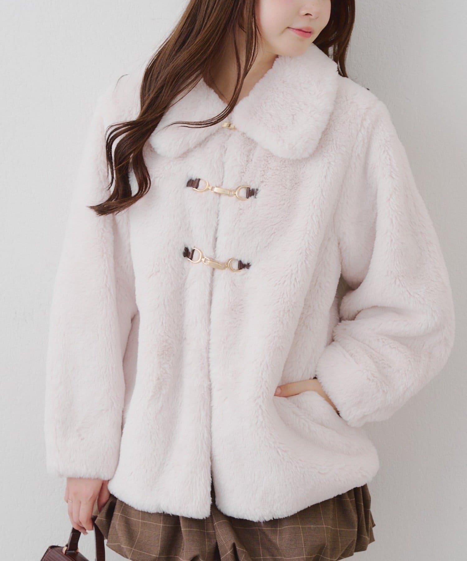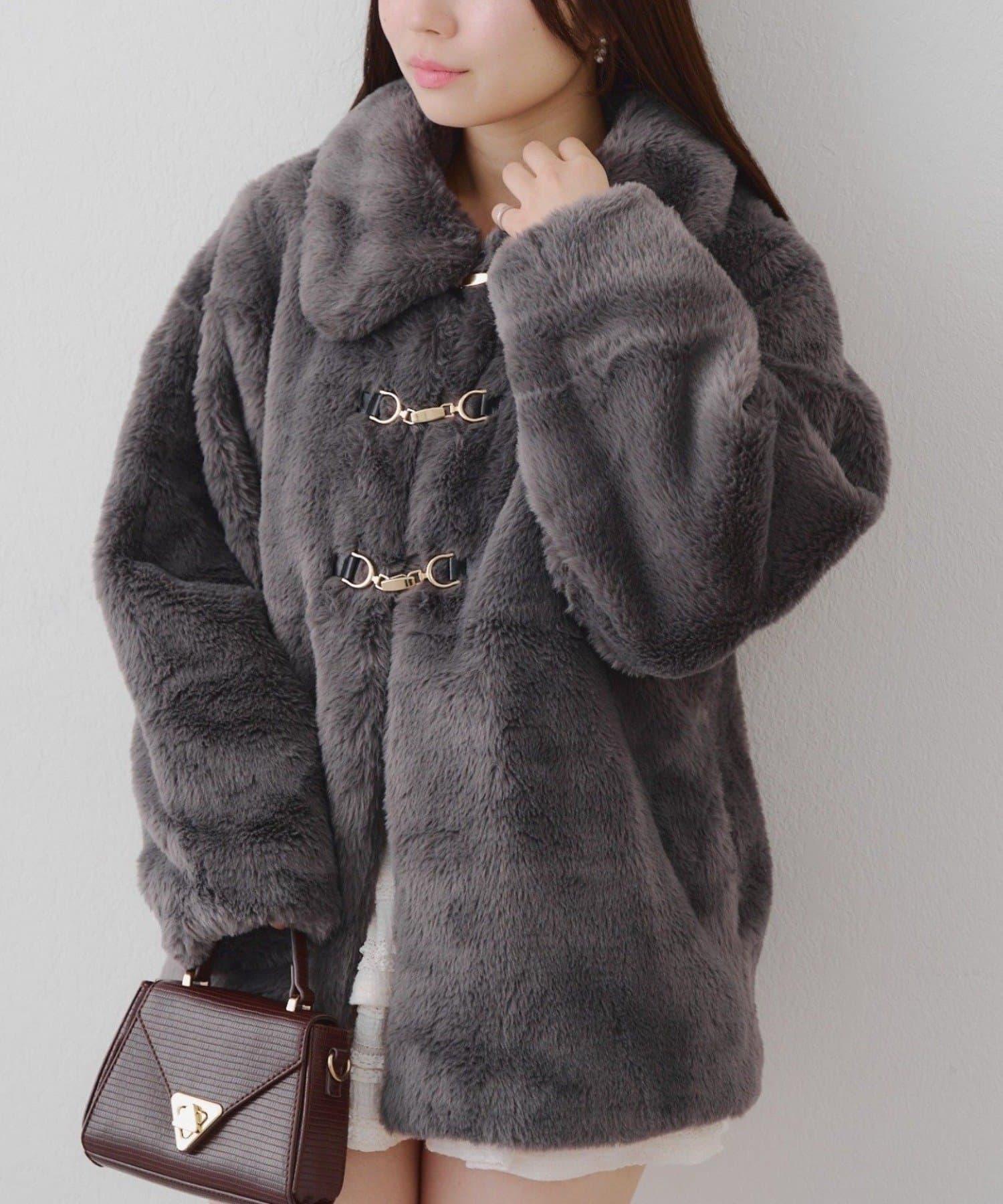 預約商品讓人期待冬天♡兔毛球裝飾中長款大衣