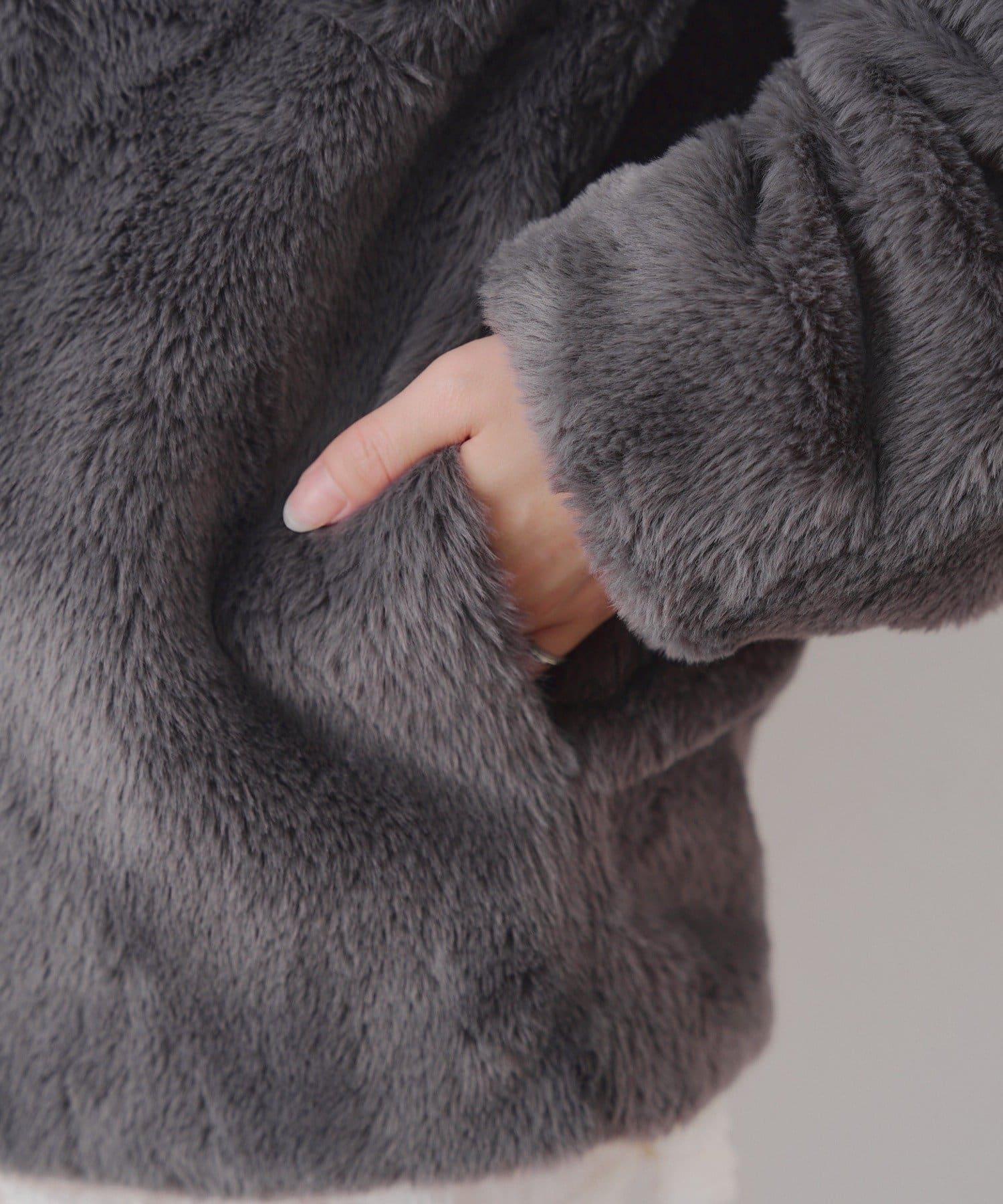 人造皮草大衣,位子設計,奢華感十足。
