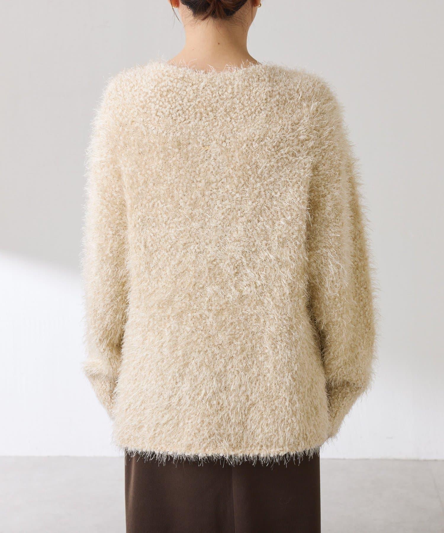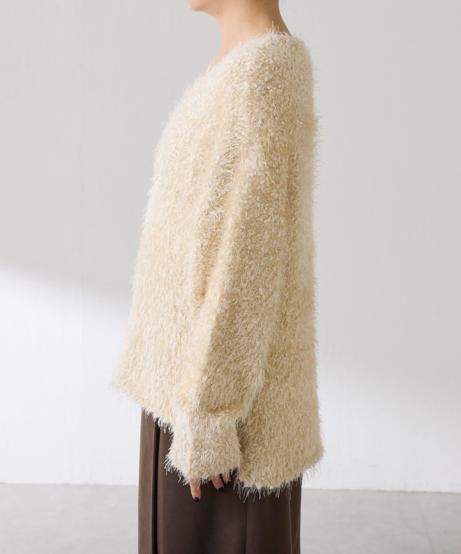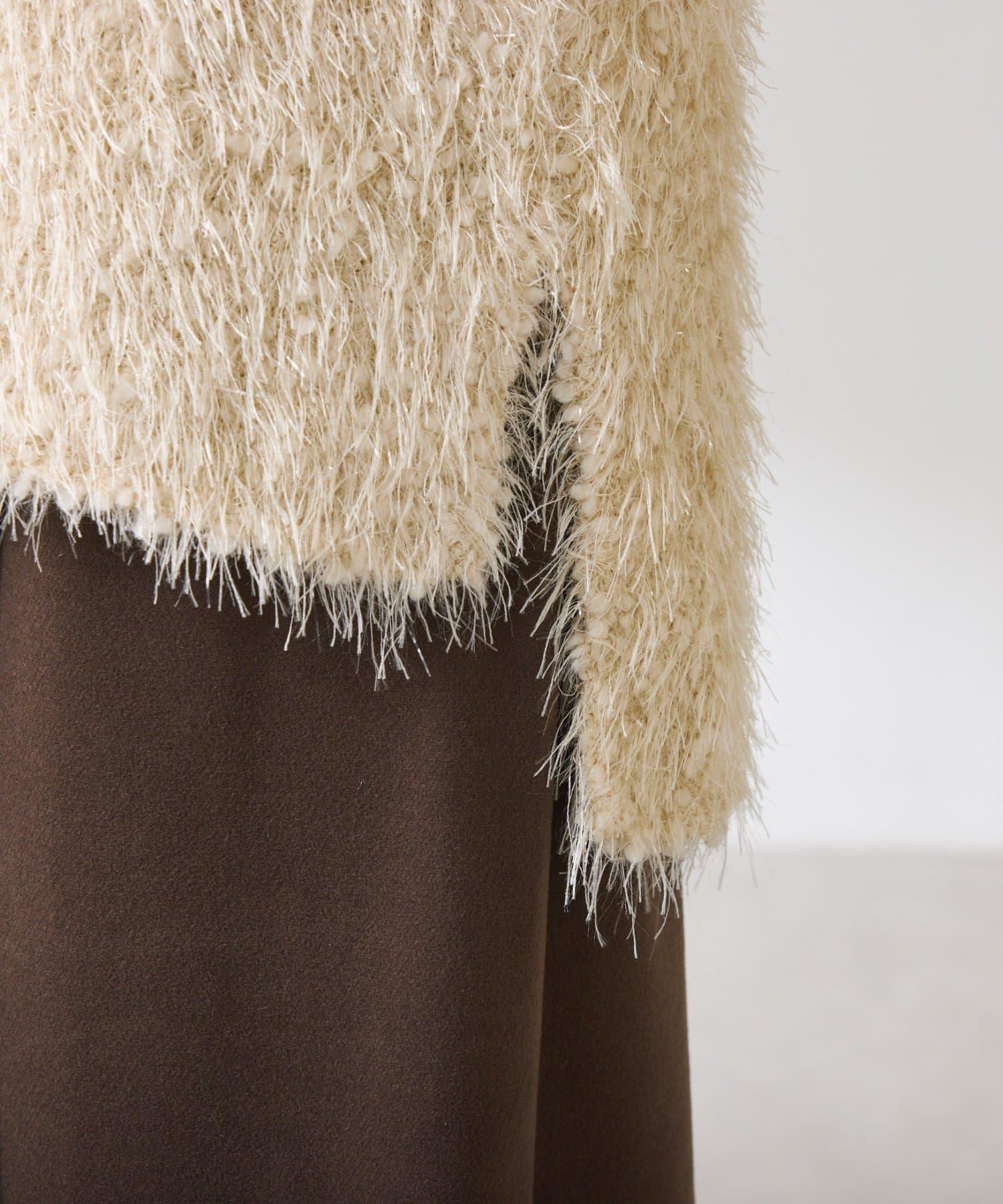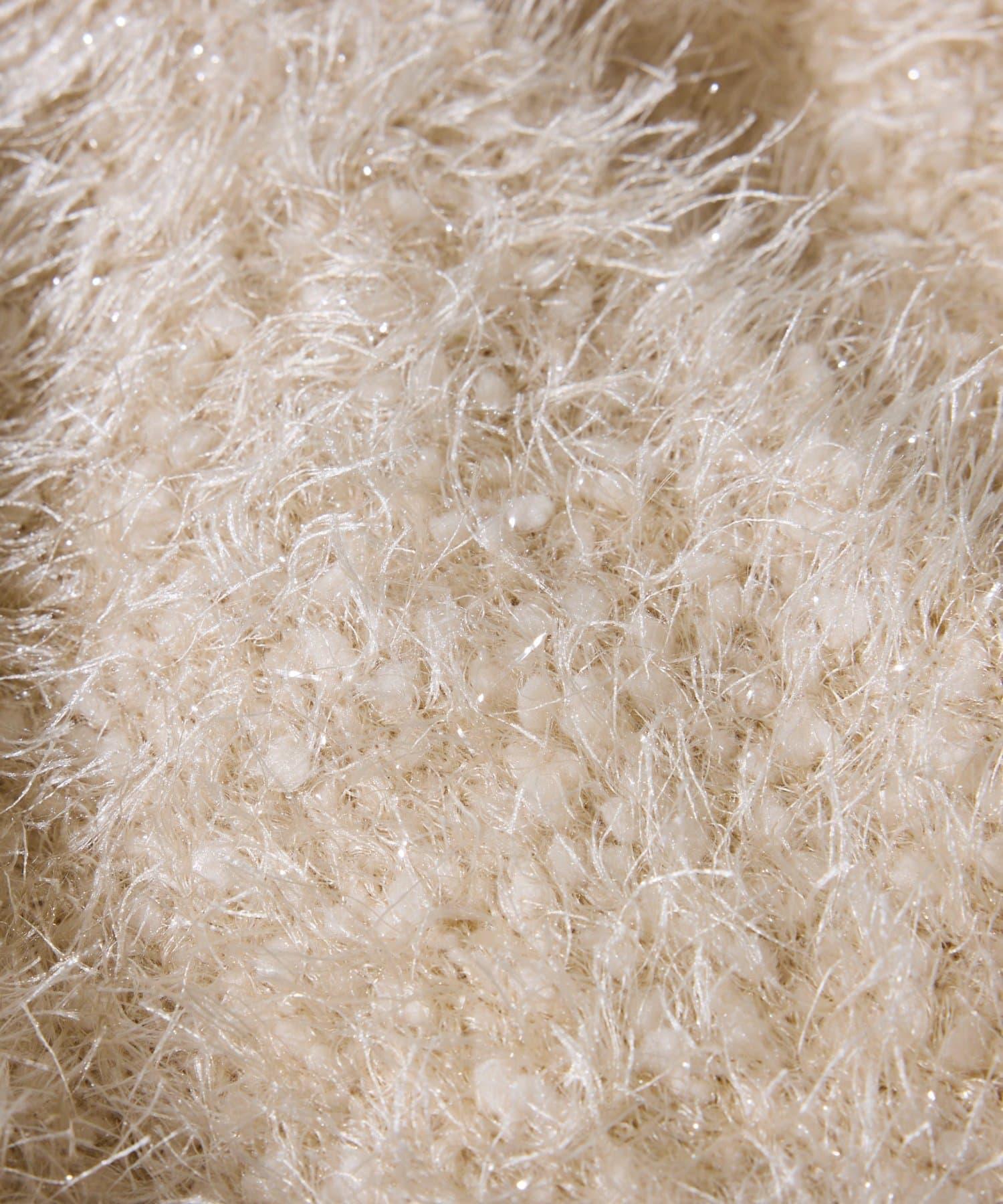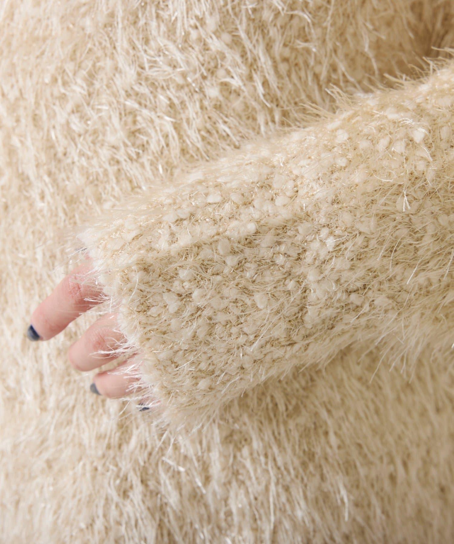 閃亮蓬鬆的華麗針織面料。衣領部位用蓬鬆的燈籠辮收緊。