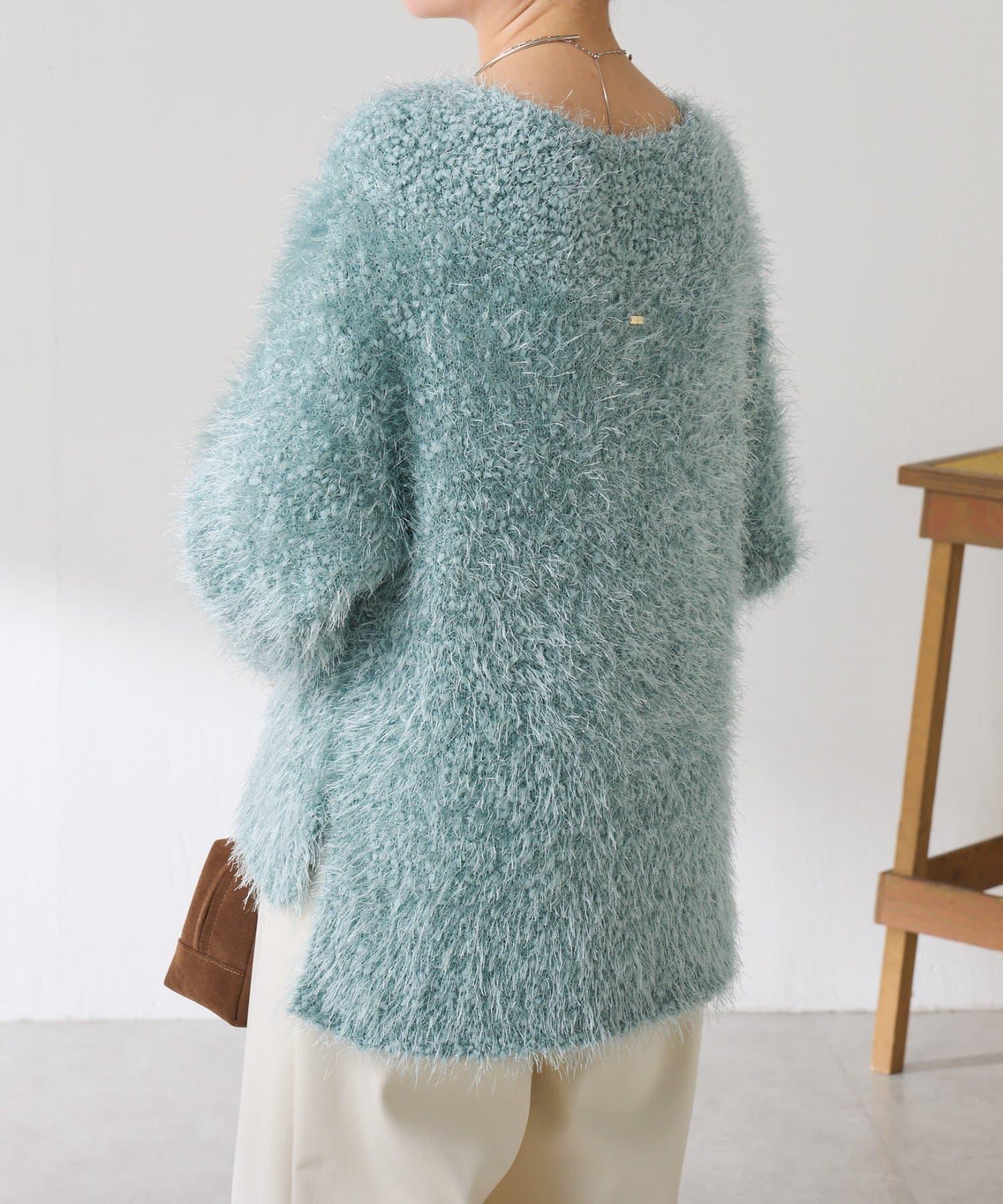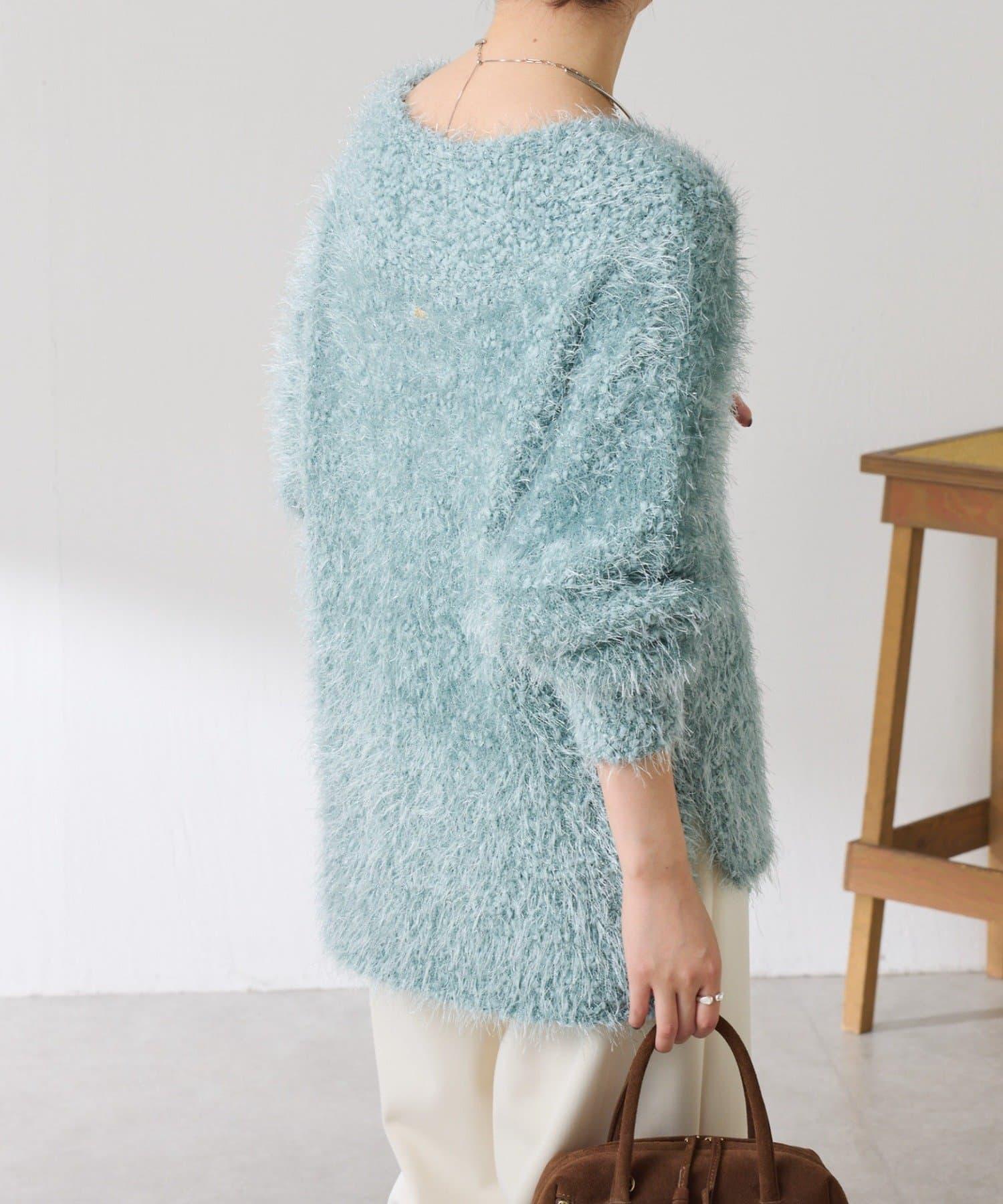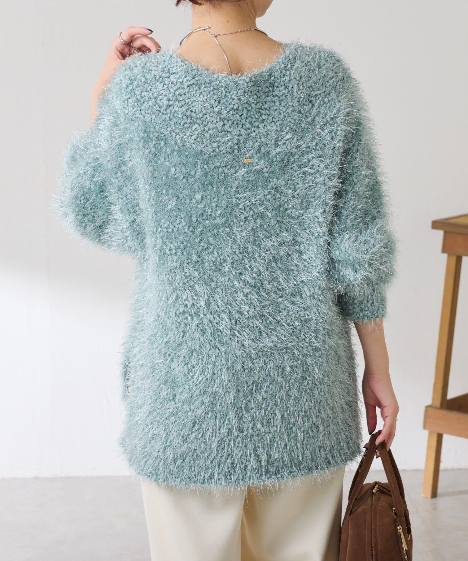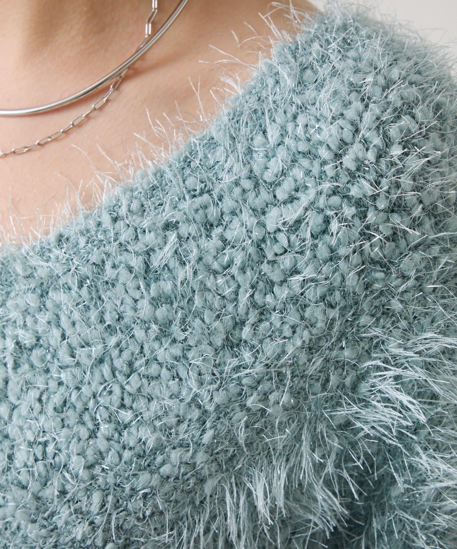 閃亮蓬鬆的華麗針織面料。衣領部位用蓬鬆的燈籠辮收緊。