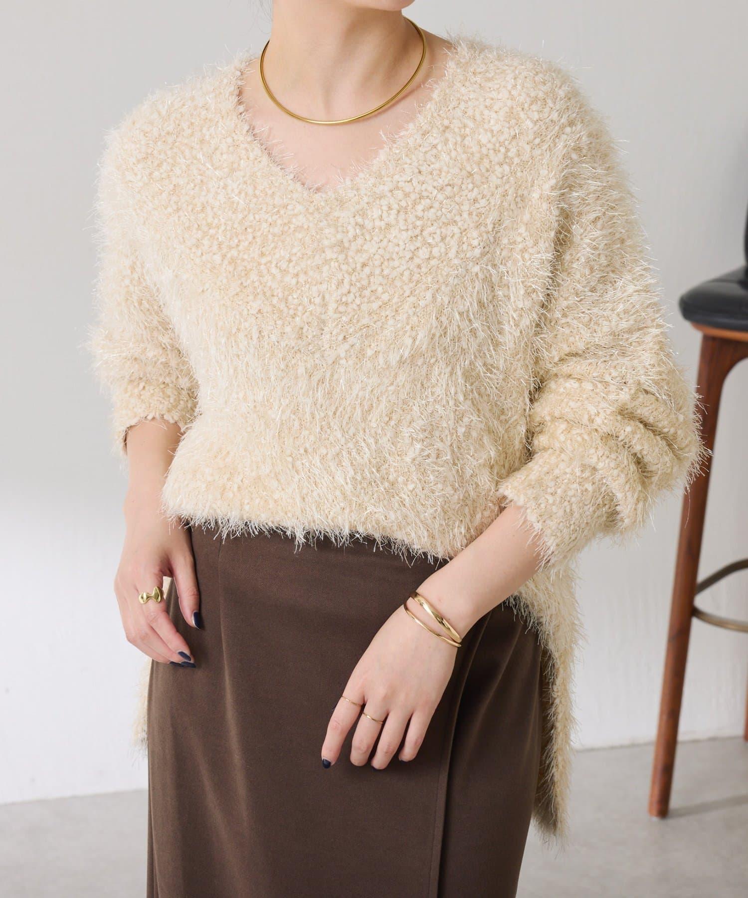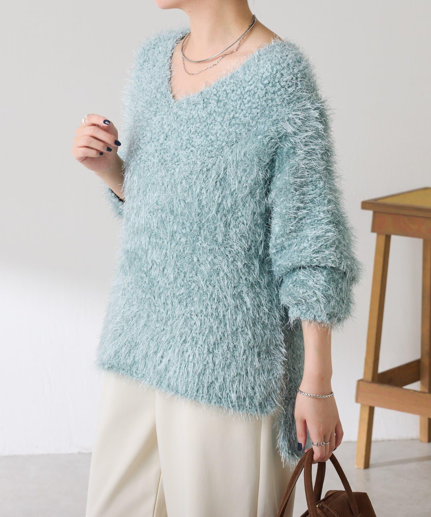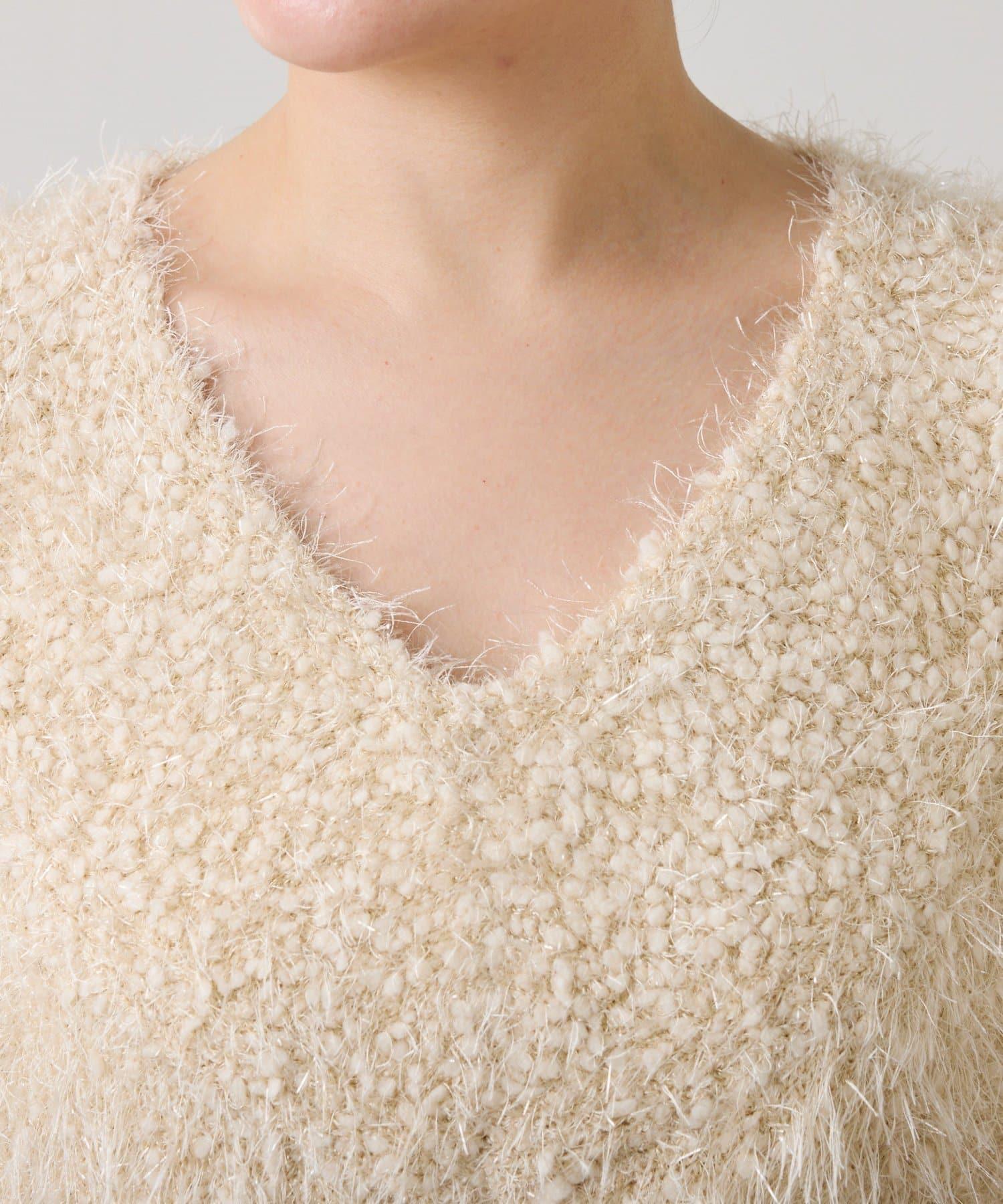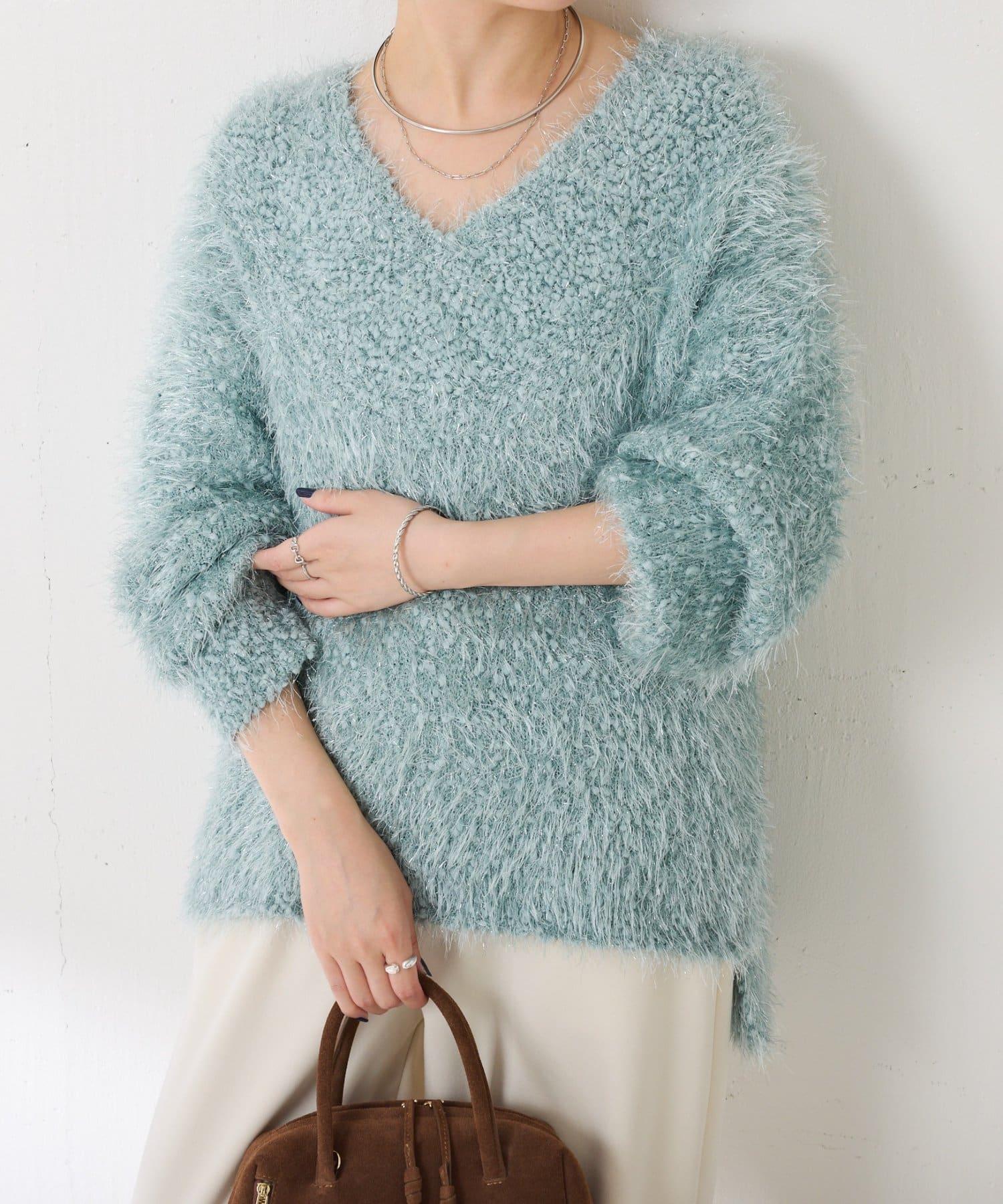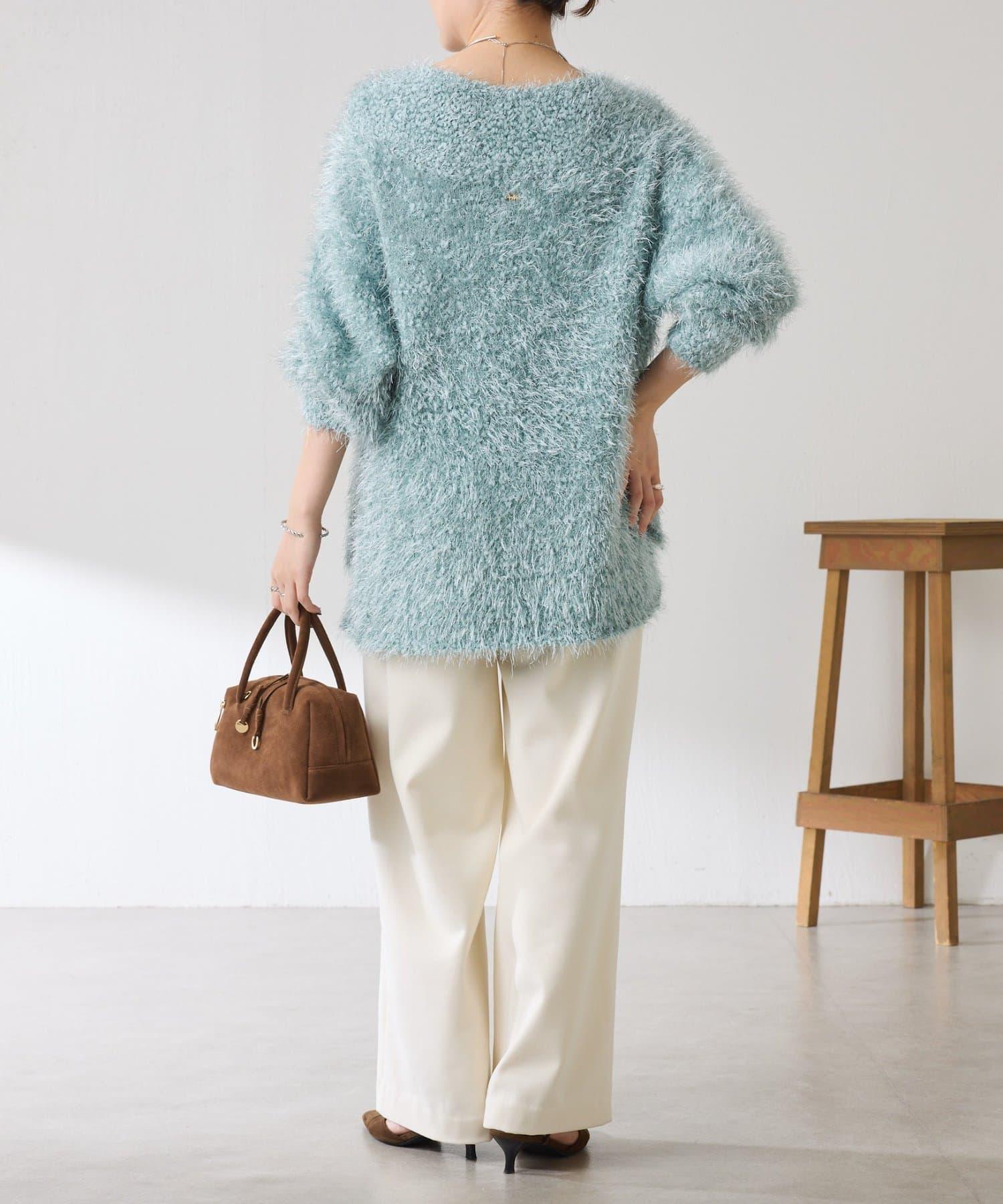 閃亮蓬鬆的華麗針織面料。衣領部位用蓬鬆的燈籠辮收緊。