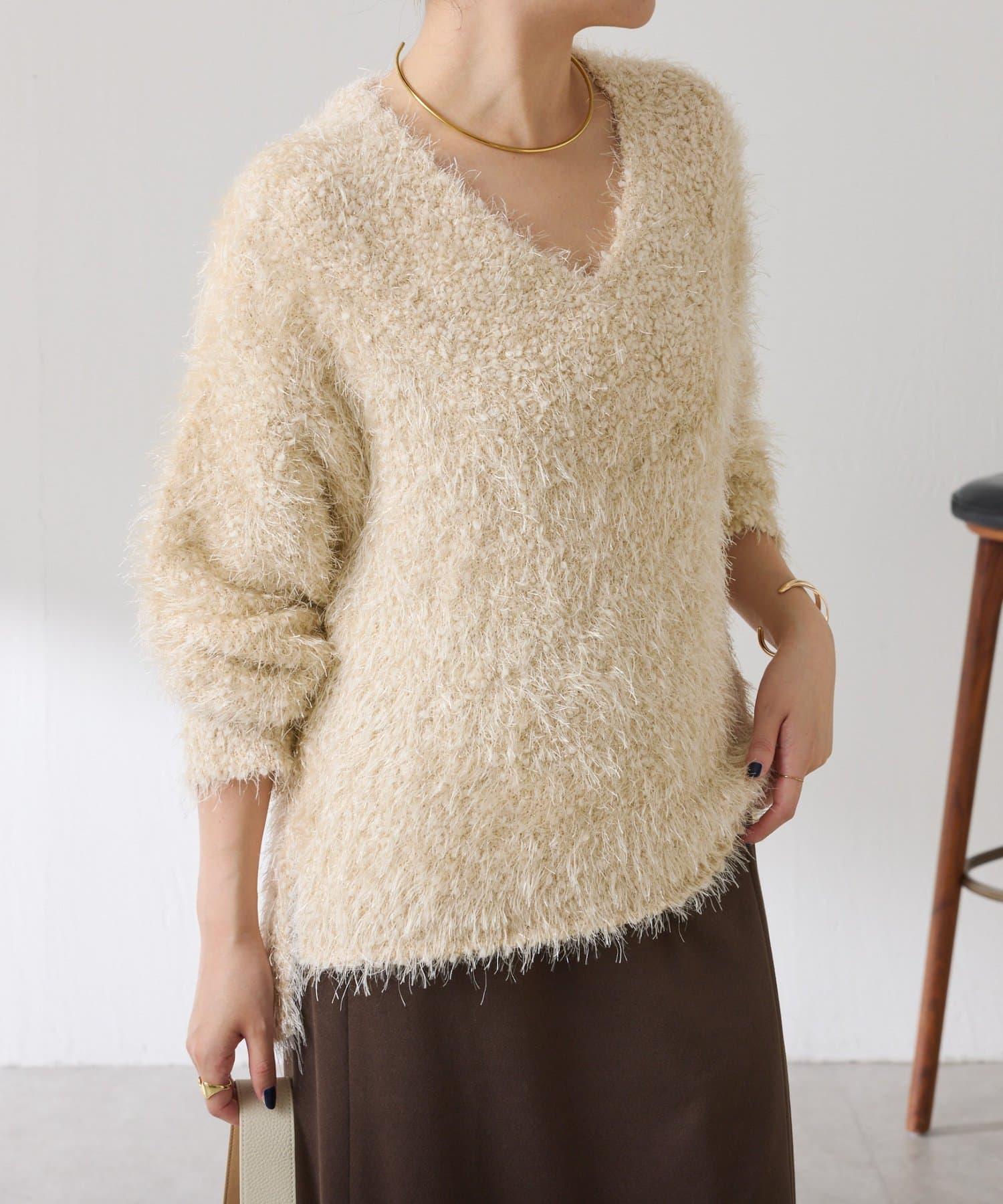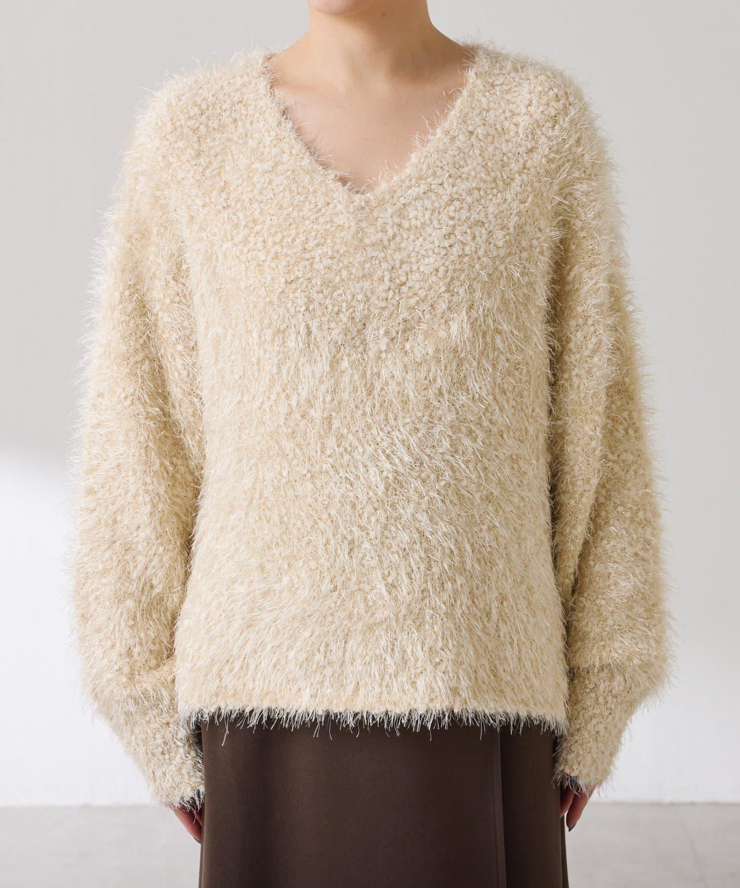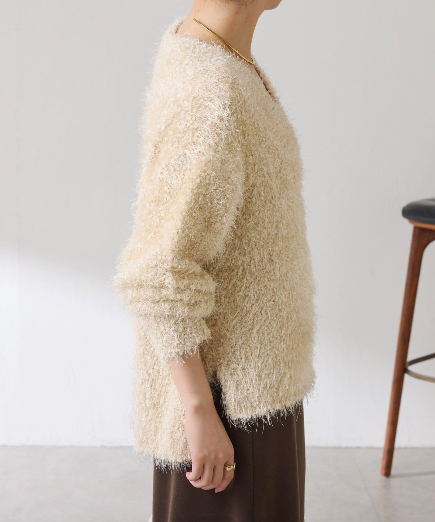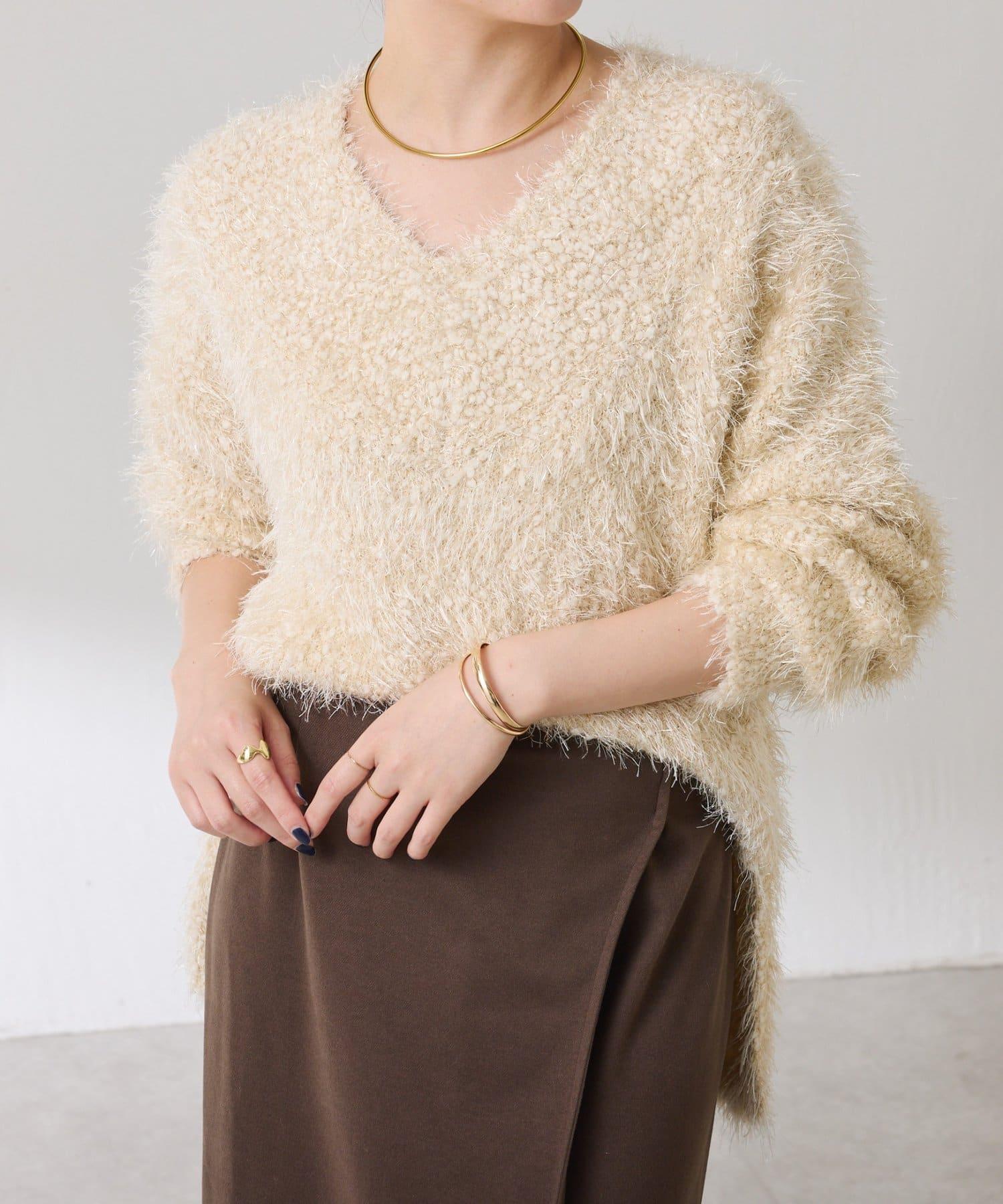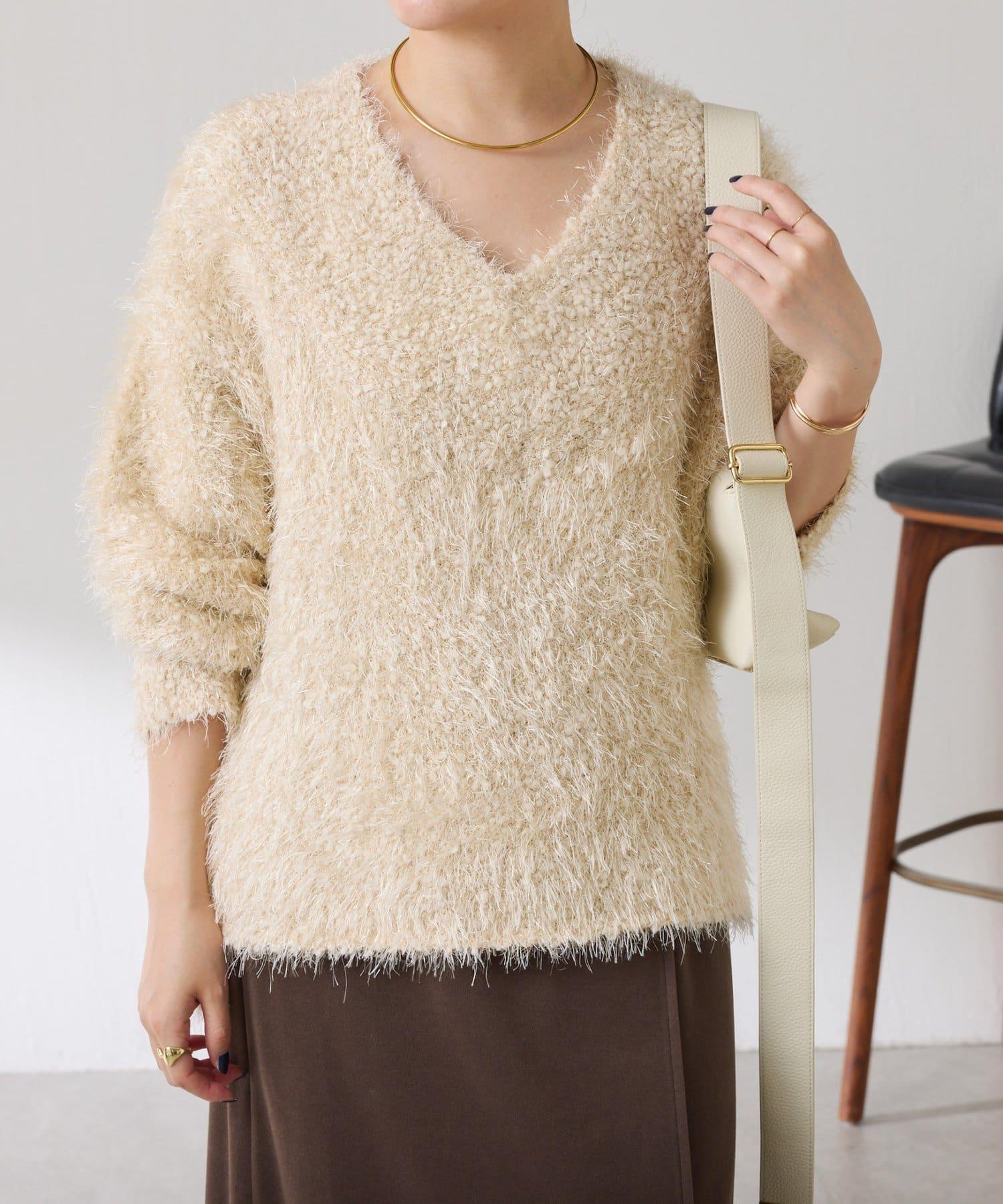 閃亮蓬鬆的華麗針織面料。衣領部位用蓬鬆的燈籠辮收緊。