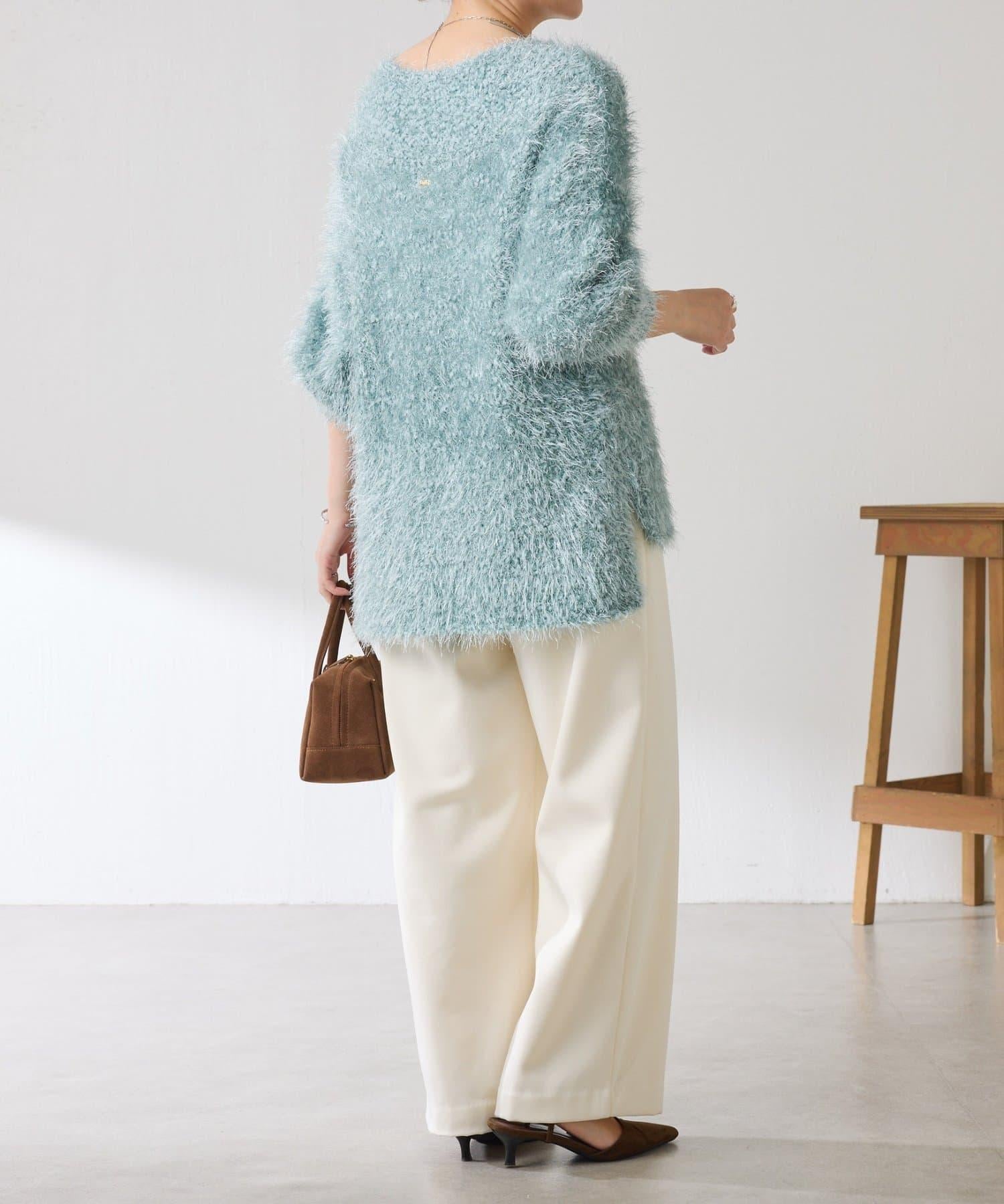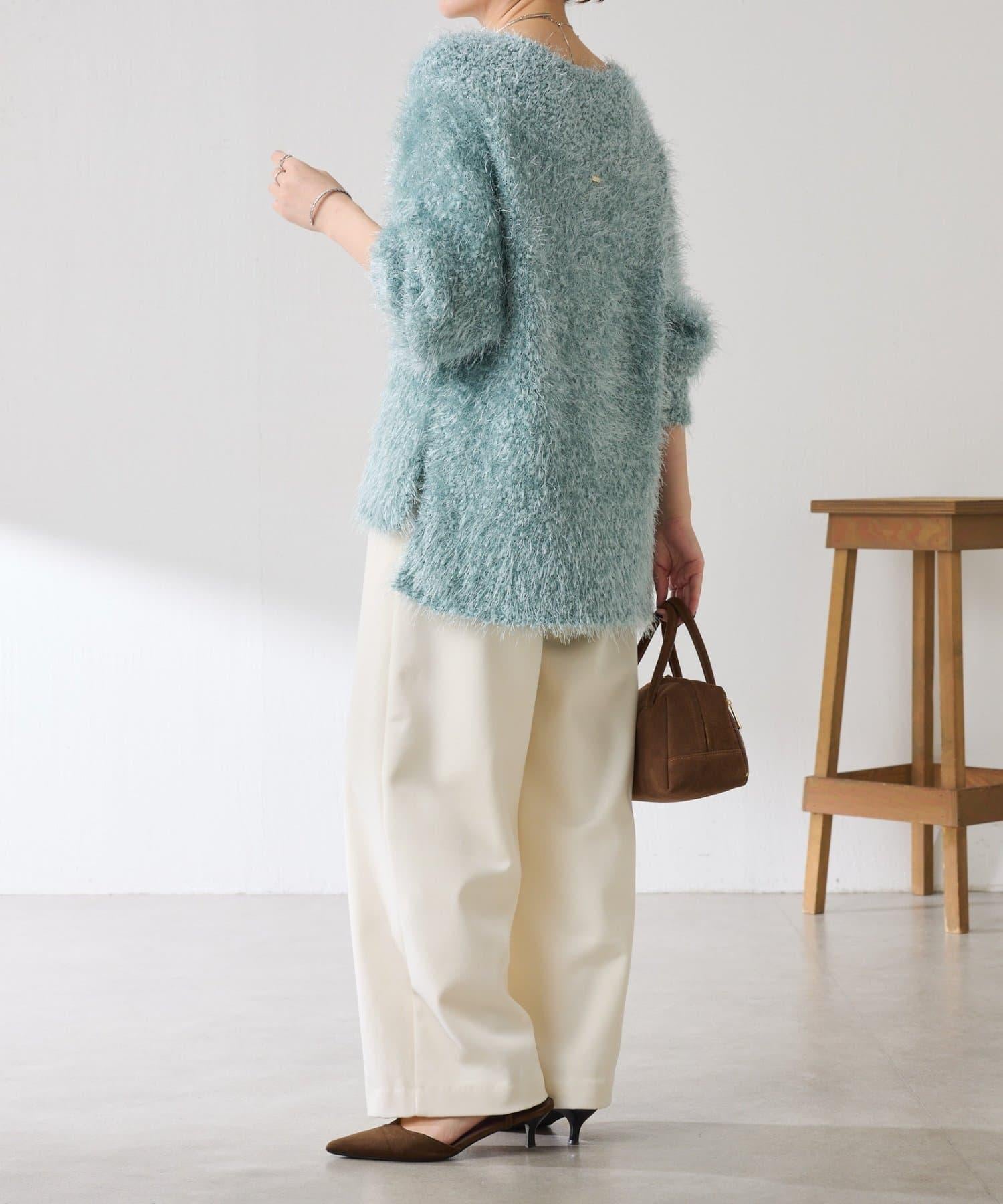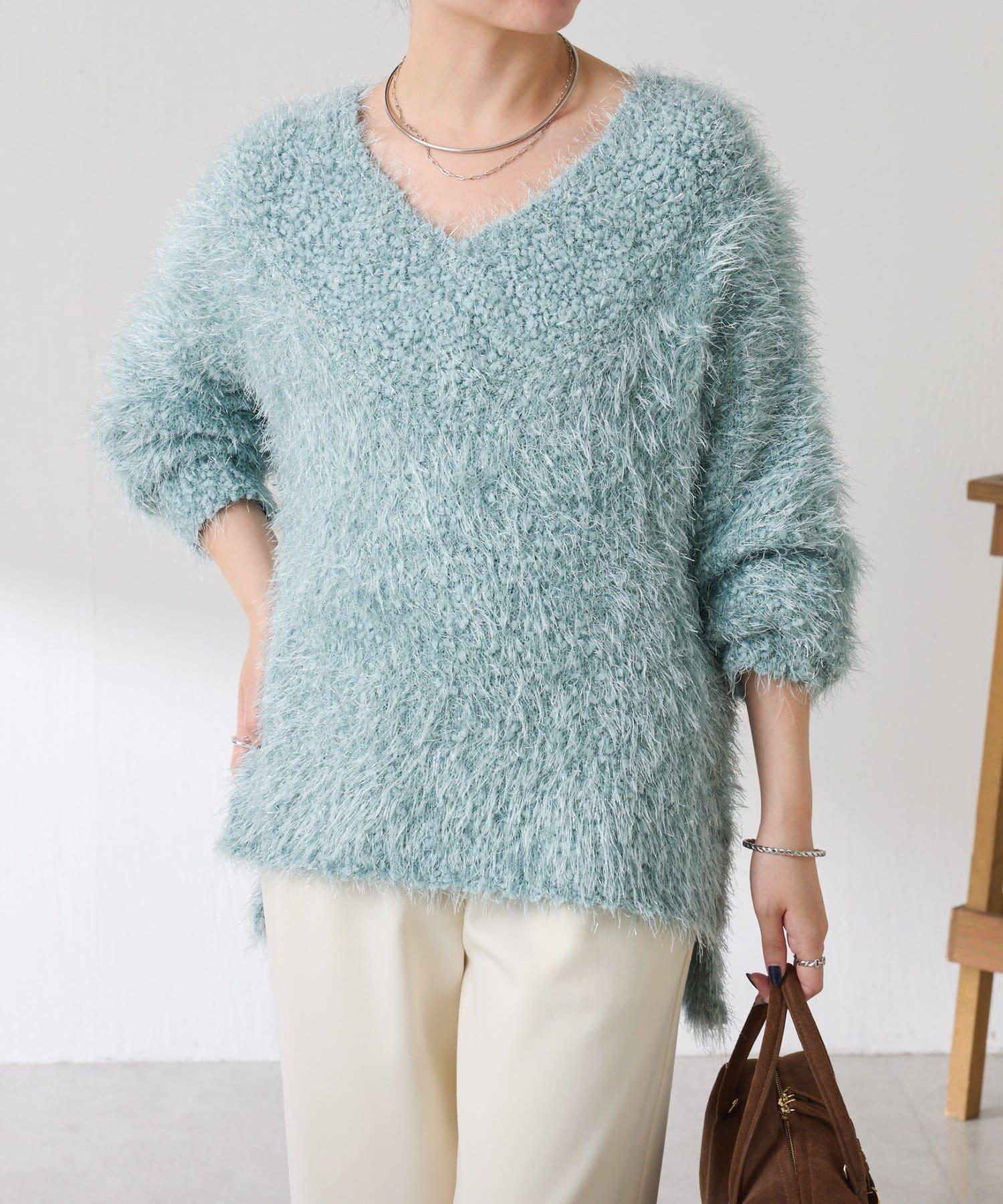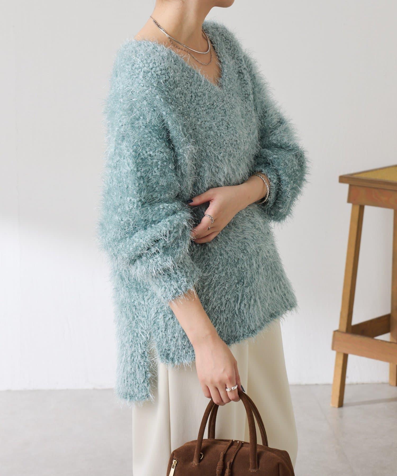 閃亮蓬鬆的華麗針織面料。衣領部位用蓬鬆的燈籠辮收緊。