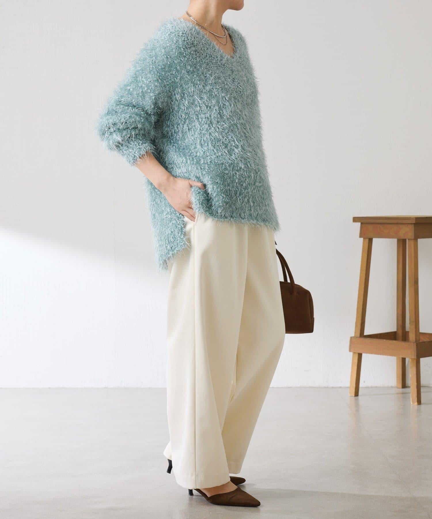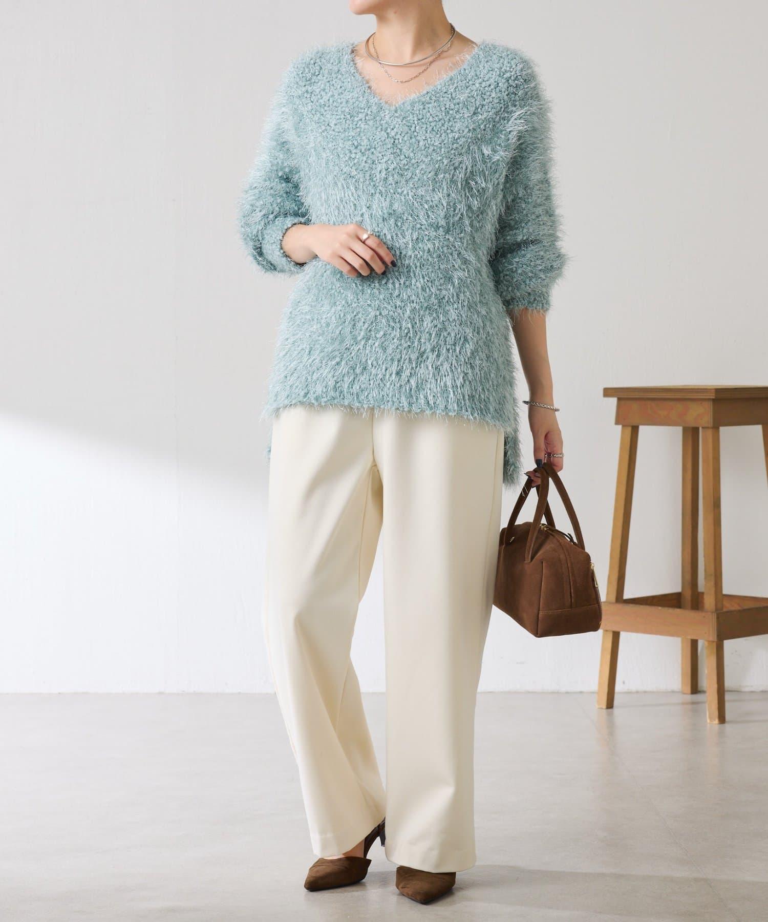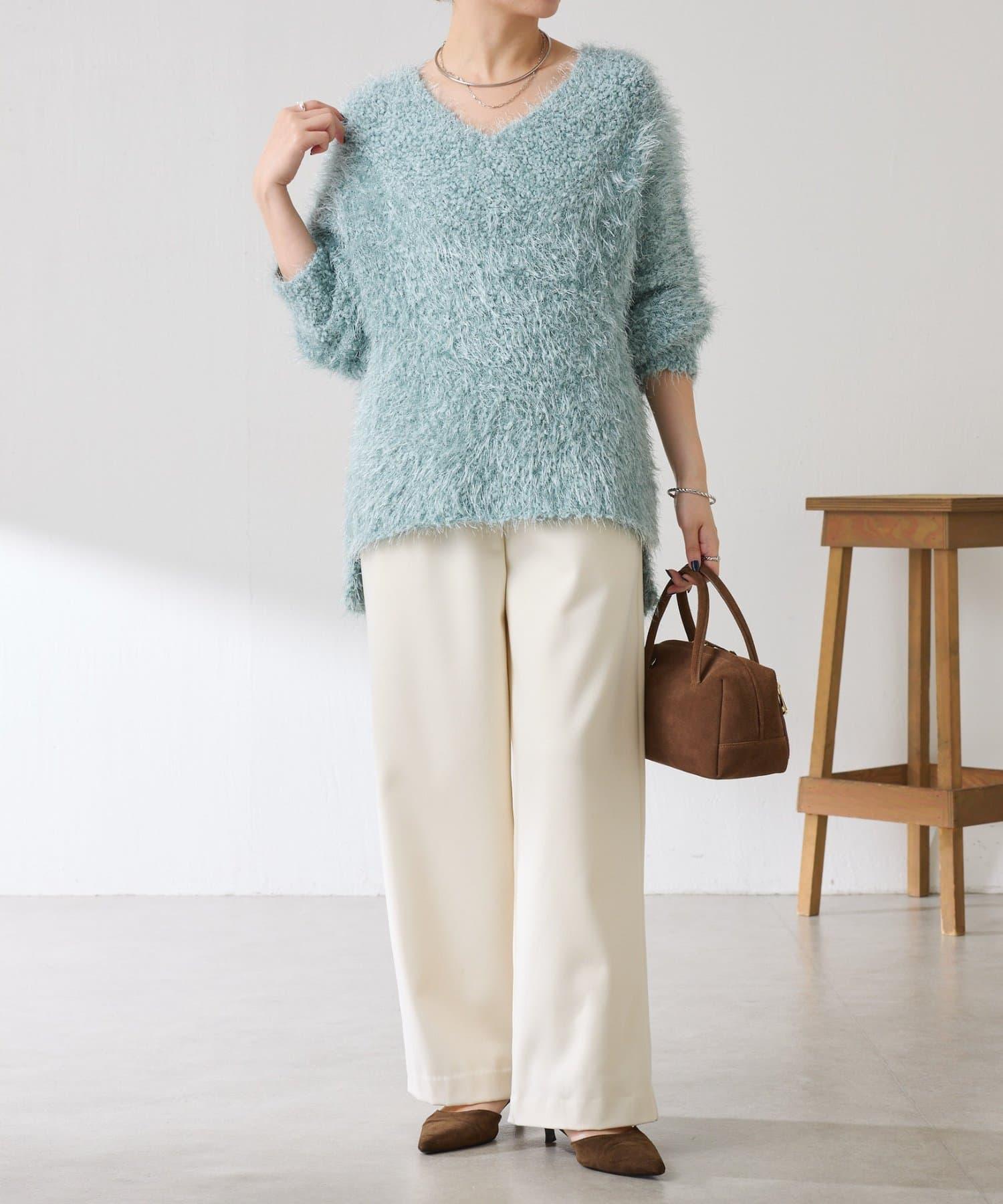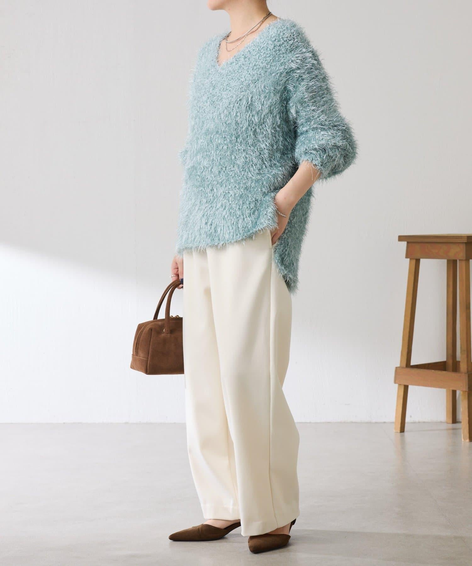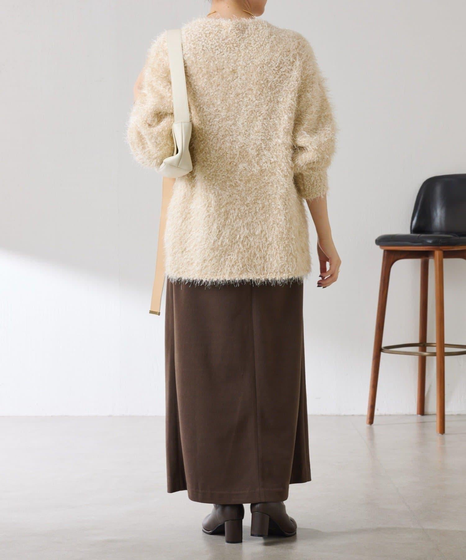 閃亮蓬鬆的華麗針織面料。衣領部位用蓬鬆的燈籠辮收緊。