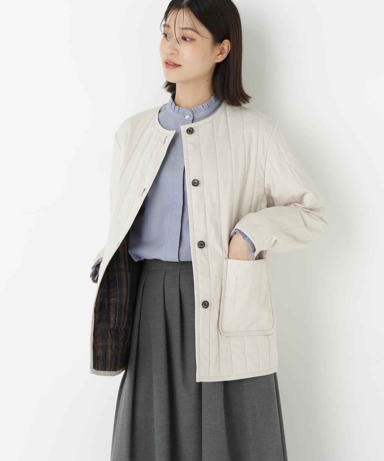 豎紋絎縫無領夾克