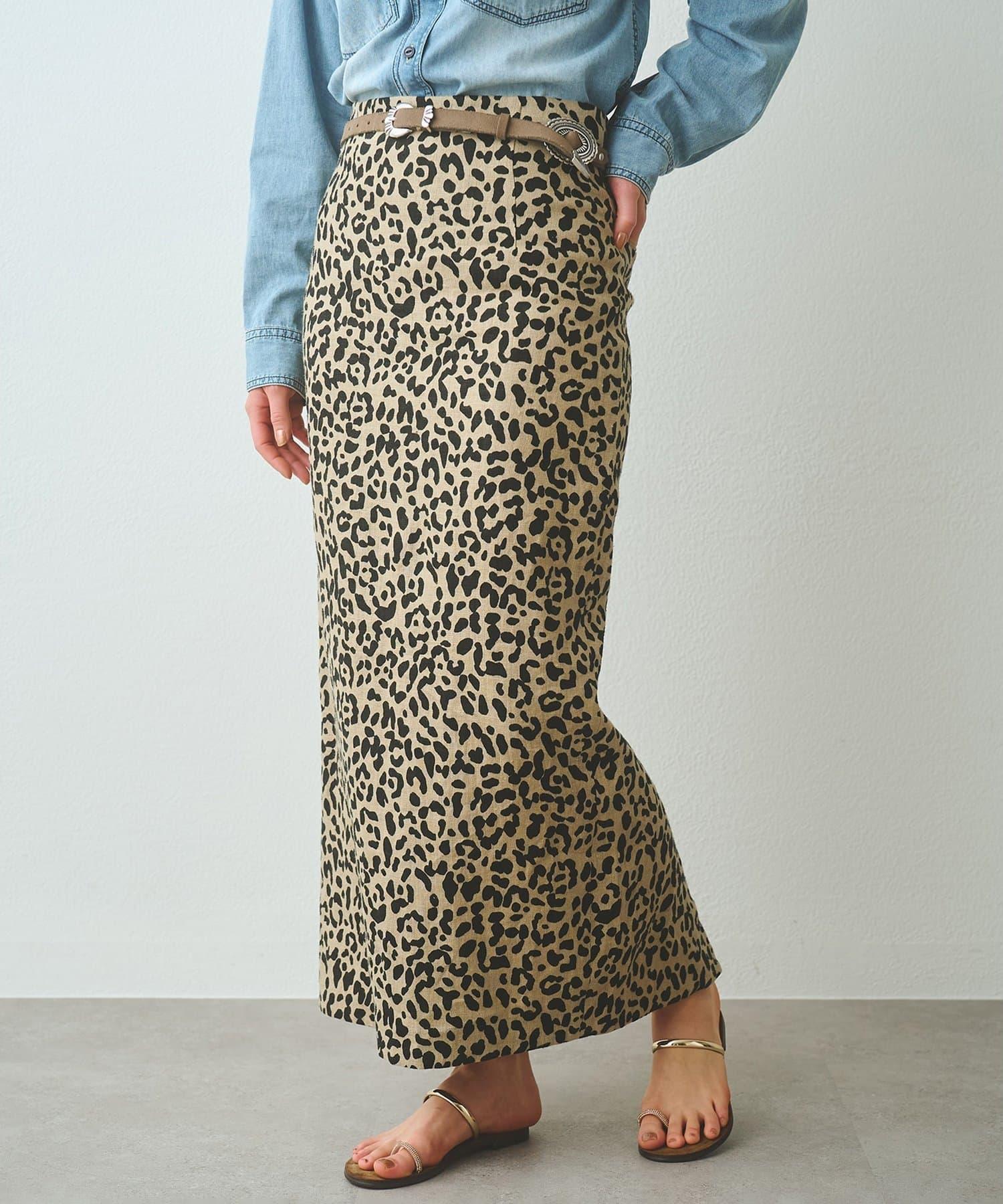 豹紋亞麻半身裙