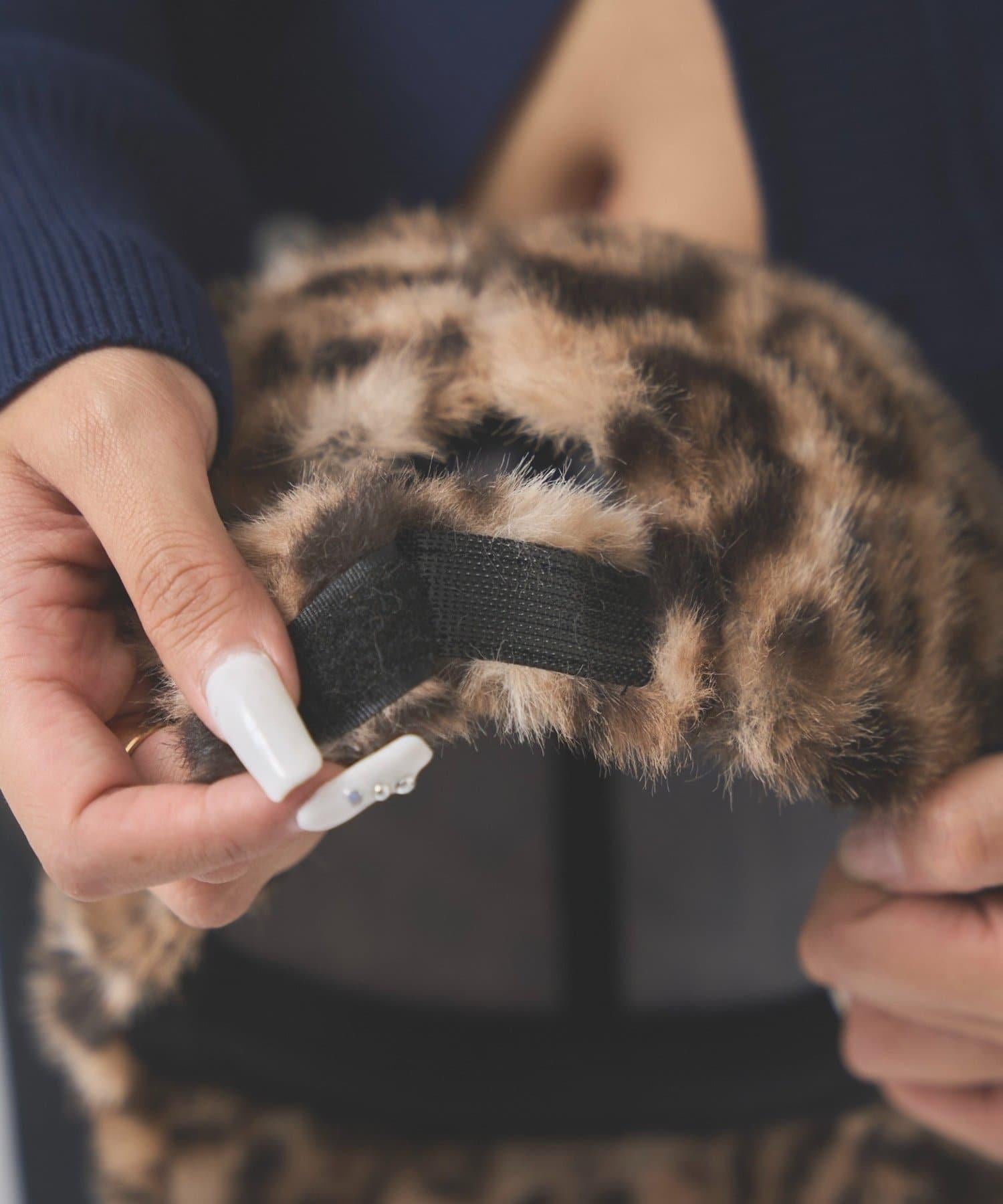 這款帽子採用時髦的豹紋圖案和當季蓬鬆的皮草面料製成。
