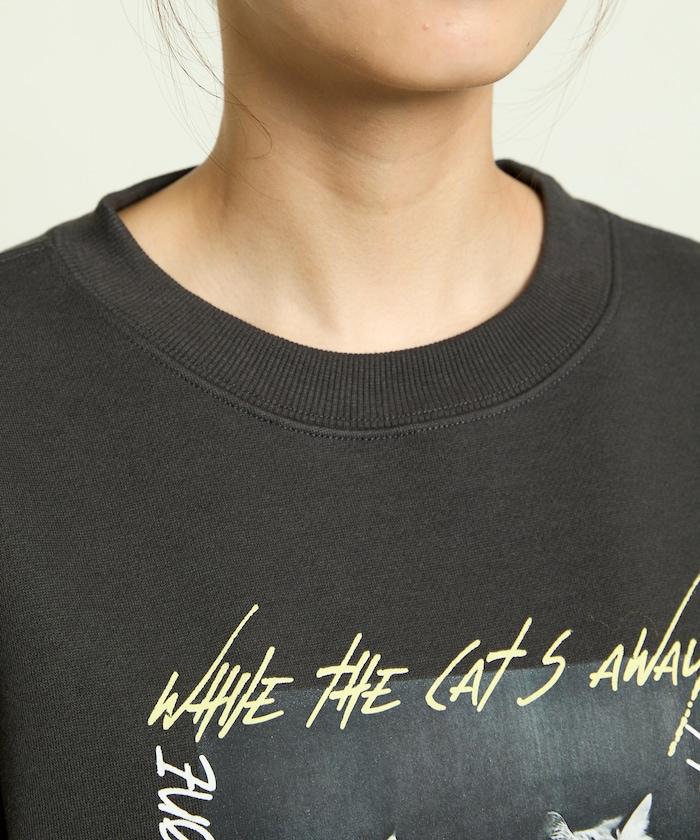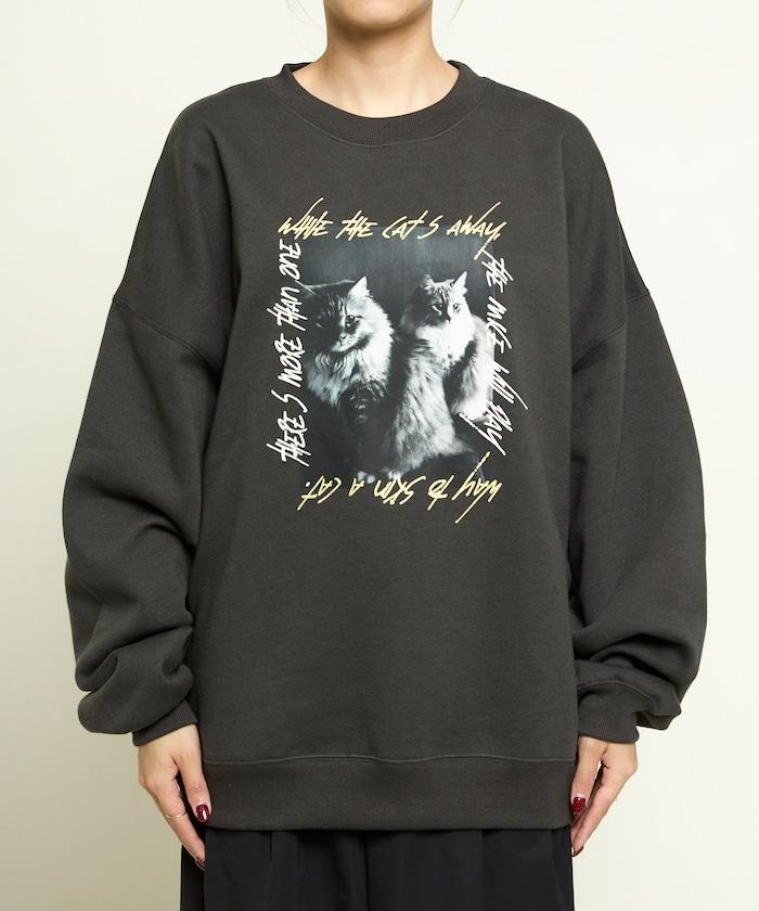 圓領運動衫上印有貓咪可愛表情的醒目照片。