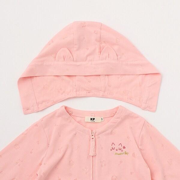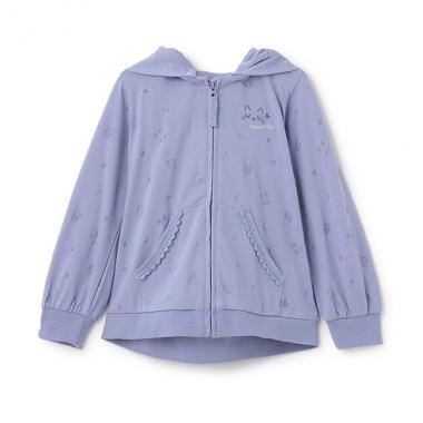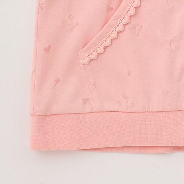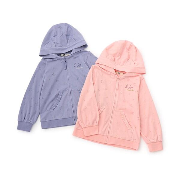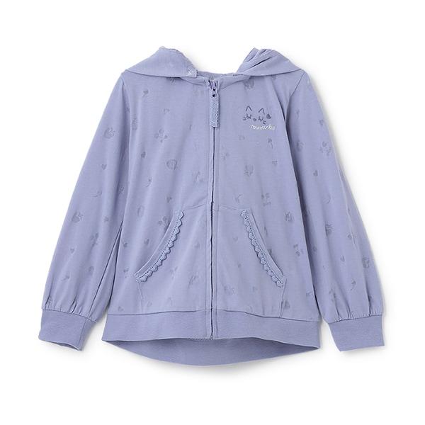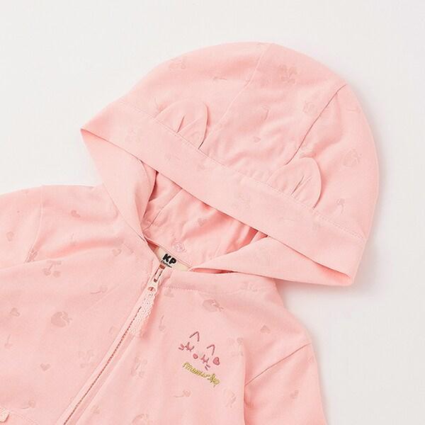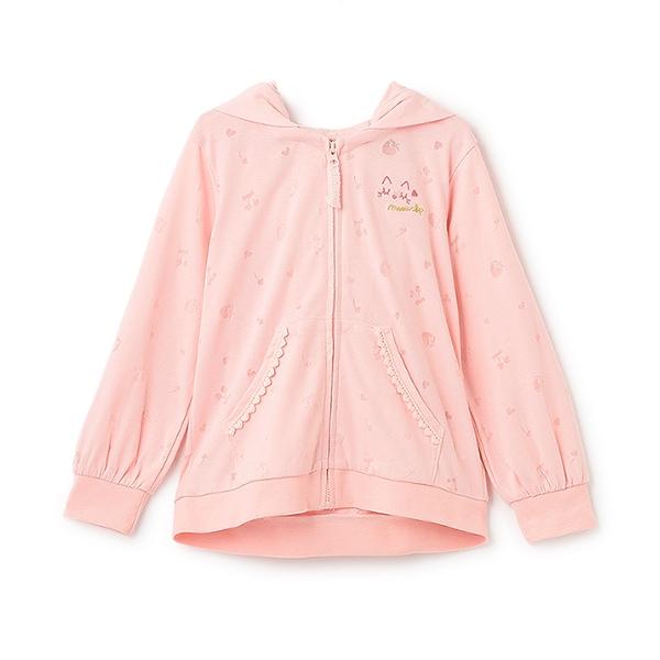 帶有乳白色草莓和櫻桃圖案的針織拉鍊連帽衫。