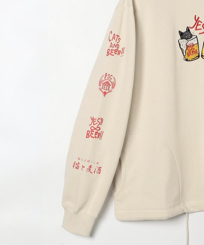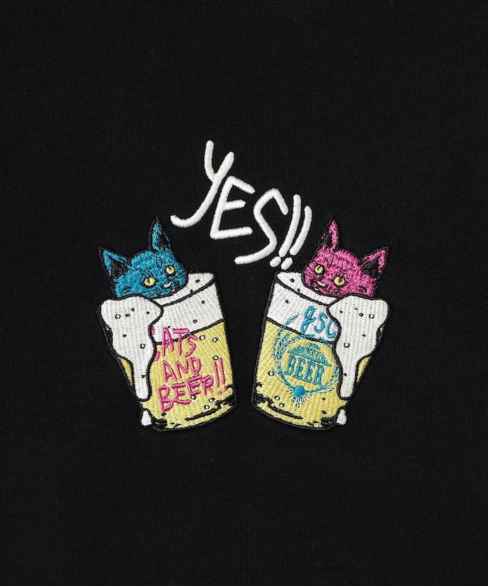 俏皮的設計,貓咪從啤酒杯中躍出,正面繡有 "YES!的刺繡圖案。