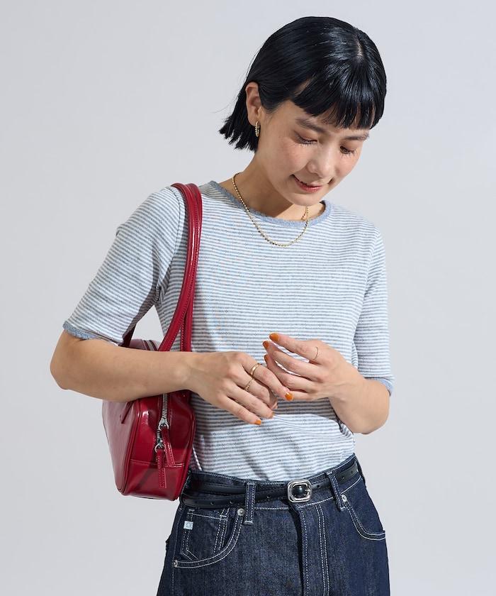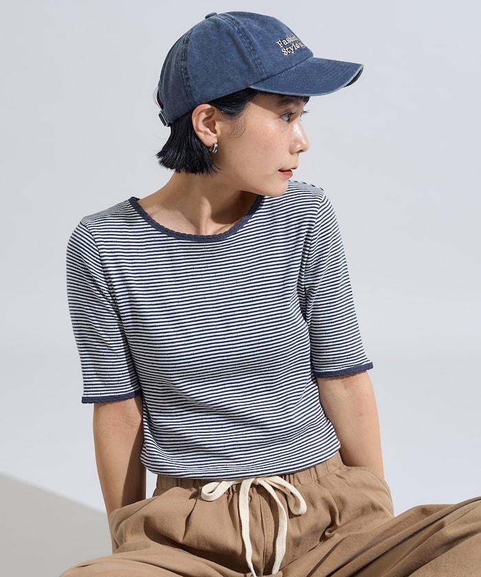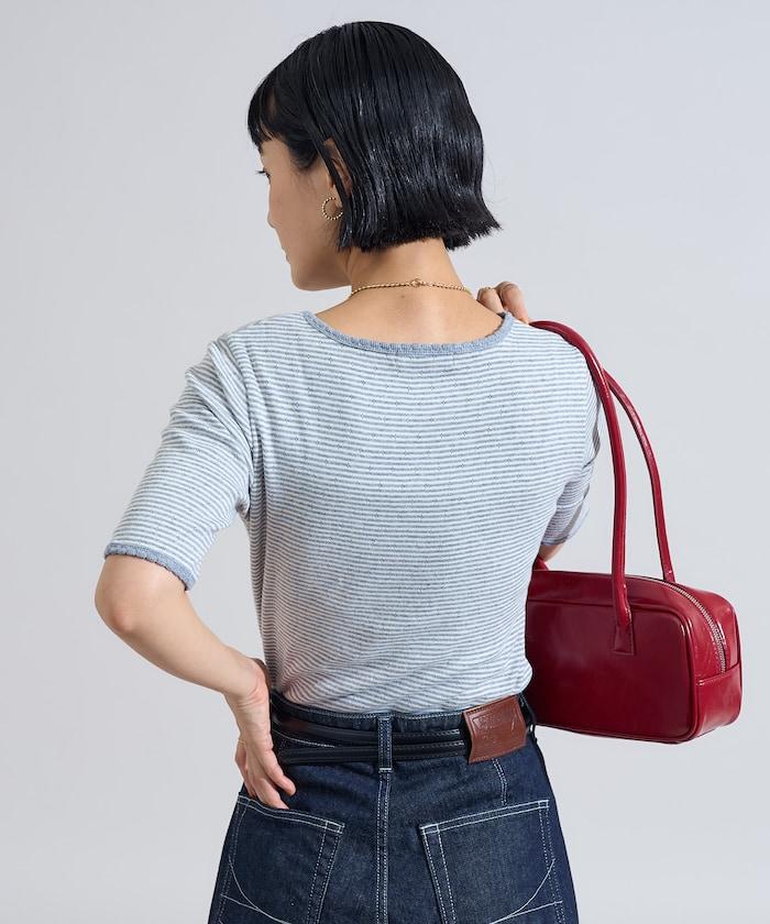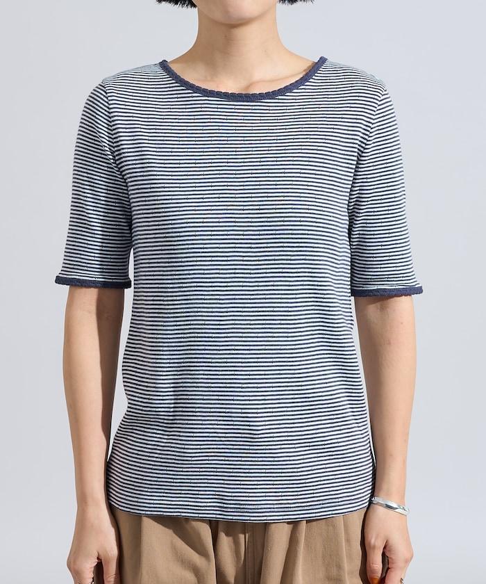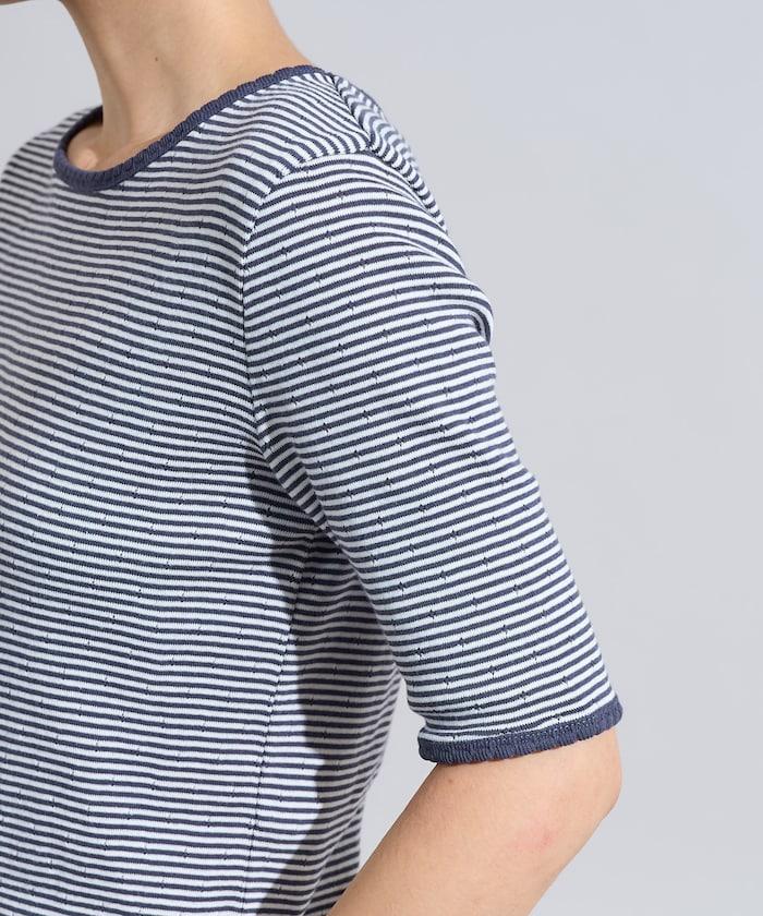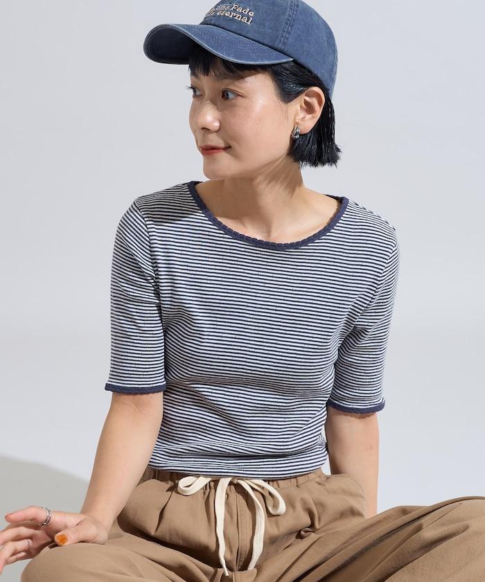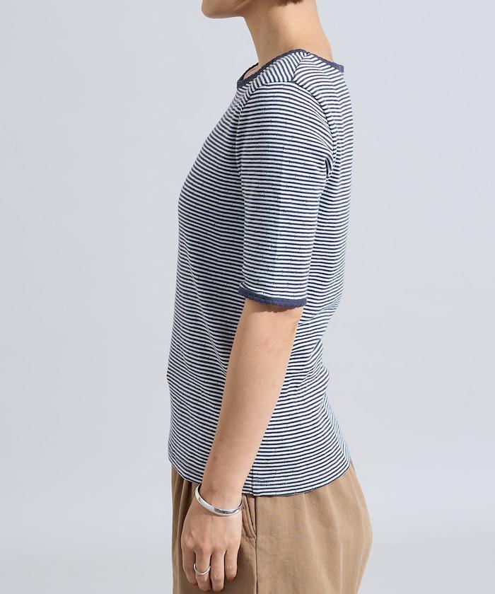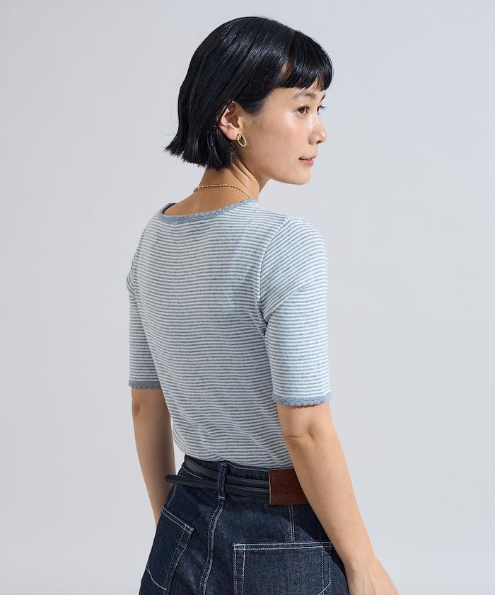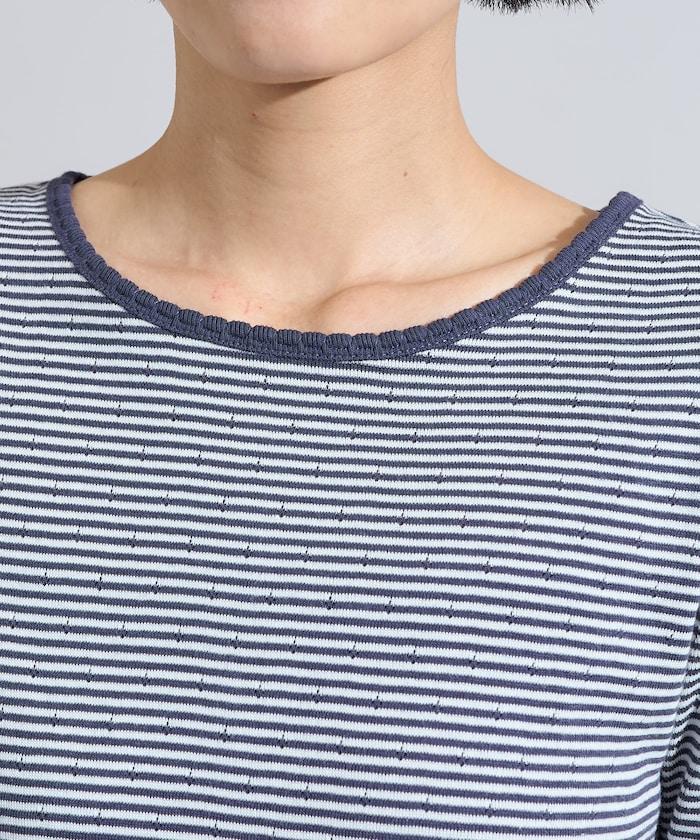 磨毛 T 恤,領口和袖口有貝殼褶。