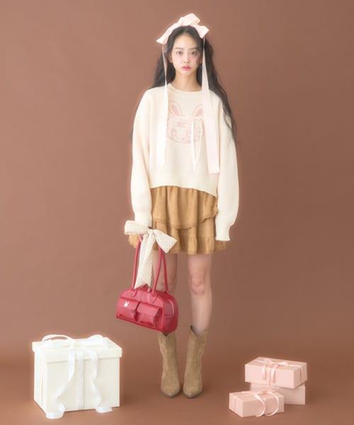 正面的翻蓋口袋裝飾有 Berrier-chan 的銀盤,設計既優雅又俏皮。