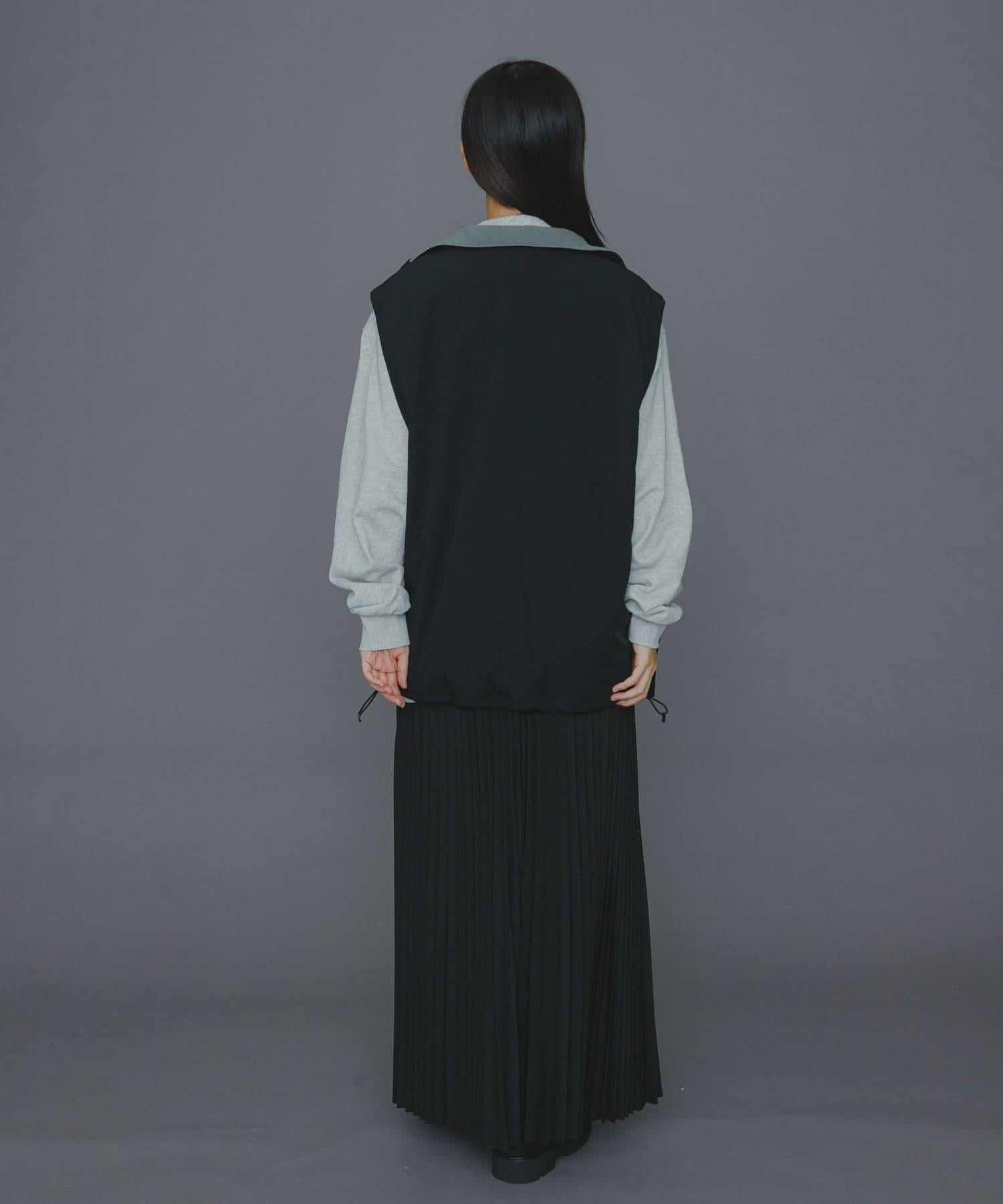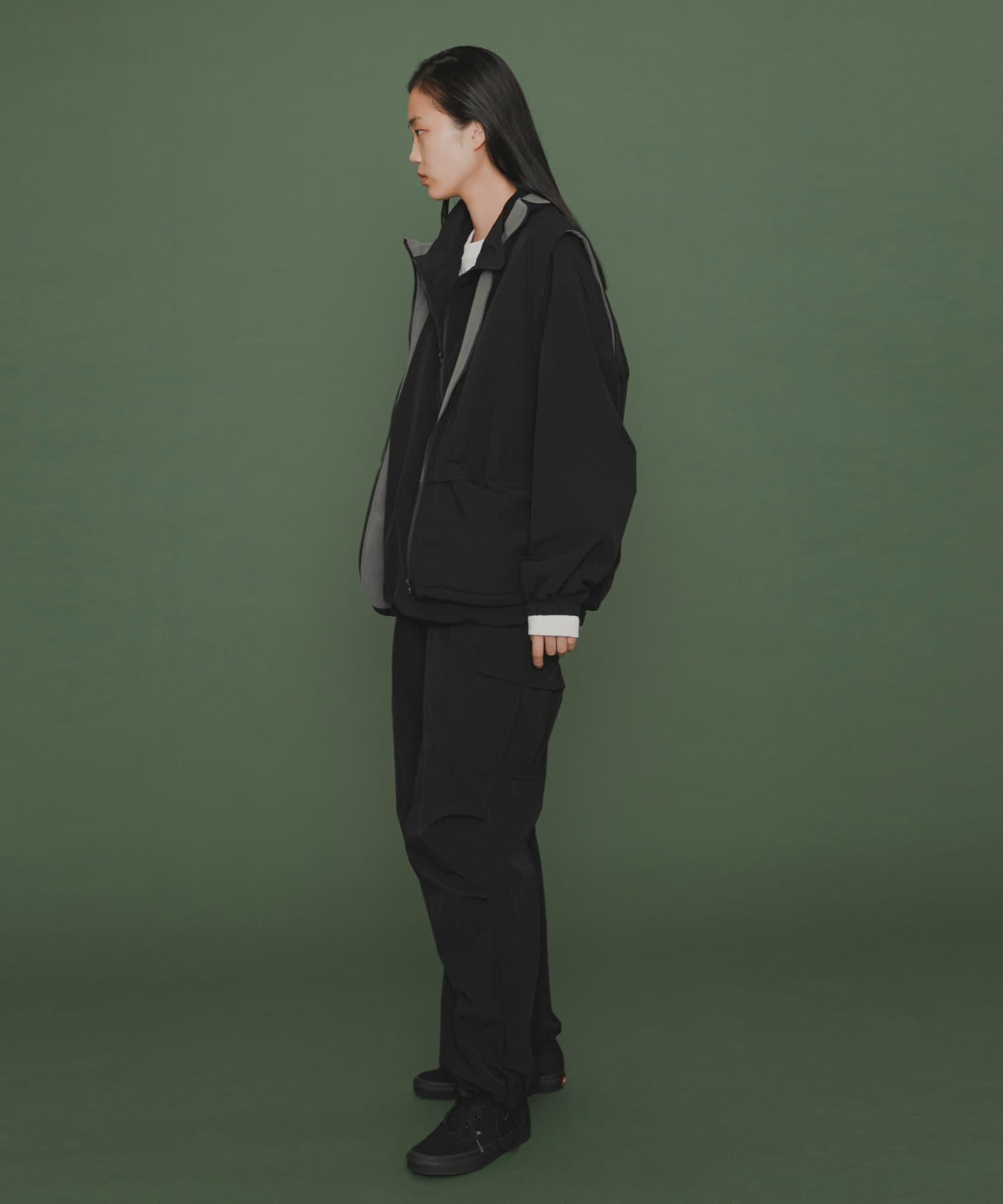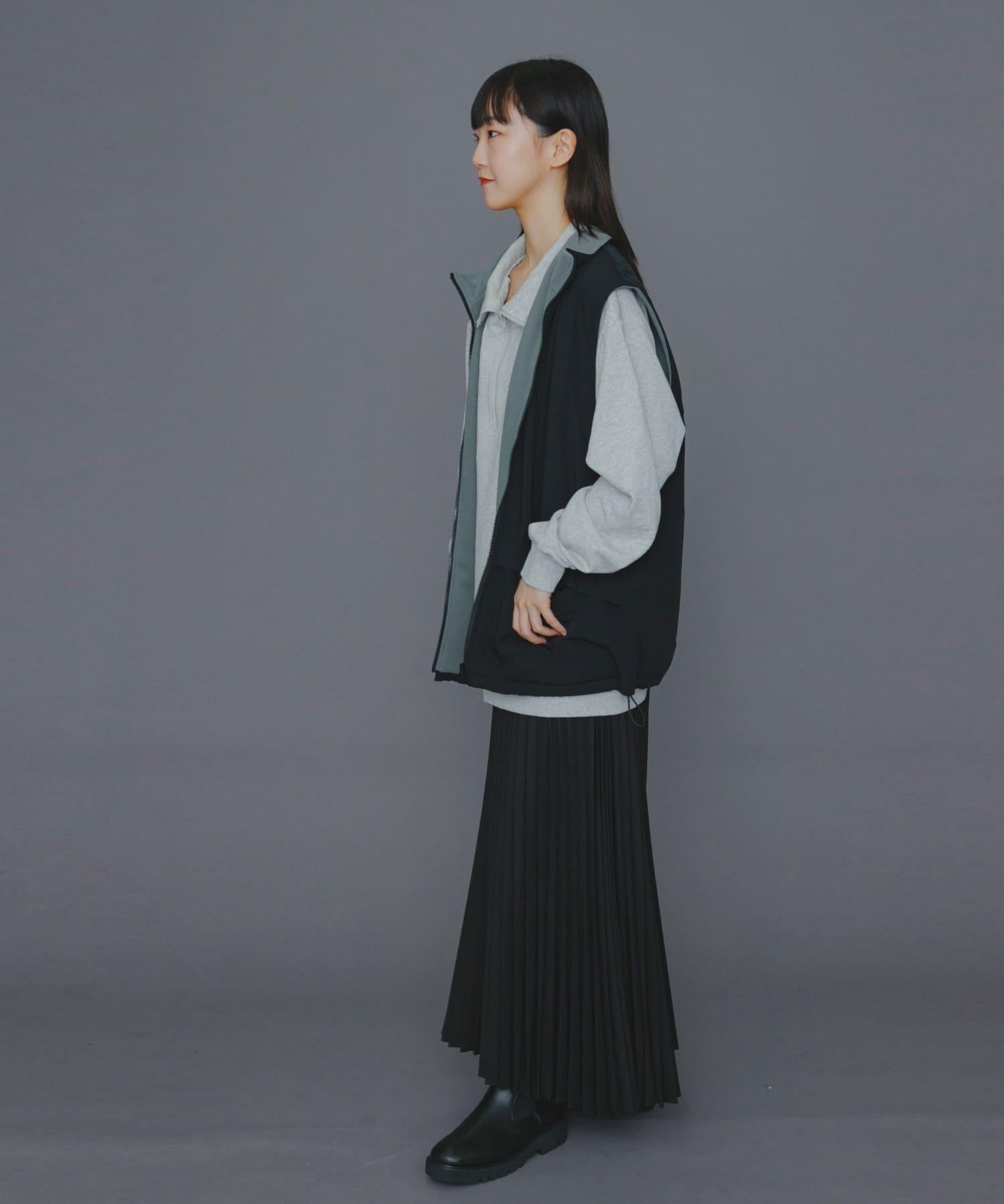 以 90 年代復古復古單品中的雙面背心為基礎,以現代的方式安排輪廓和材料。反面由短肢羊毛製成,廓形寬鬆,可疊加在外衣上。