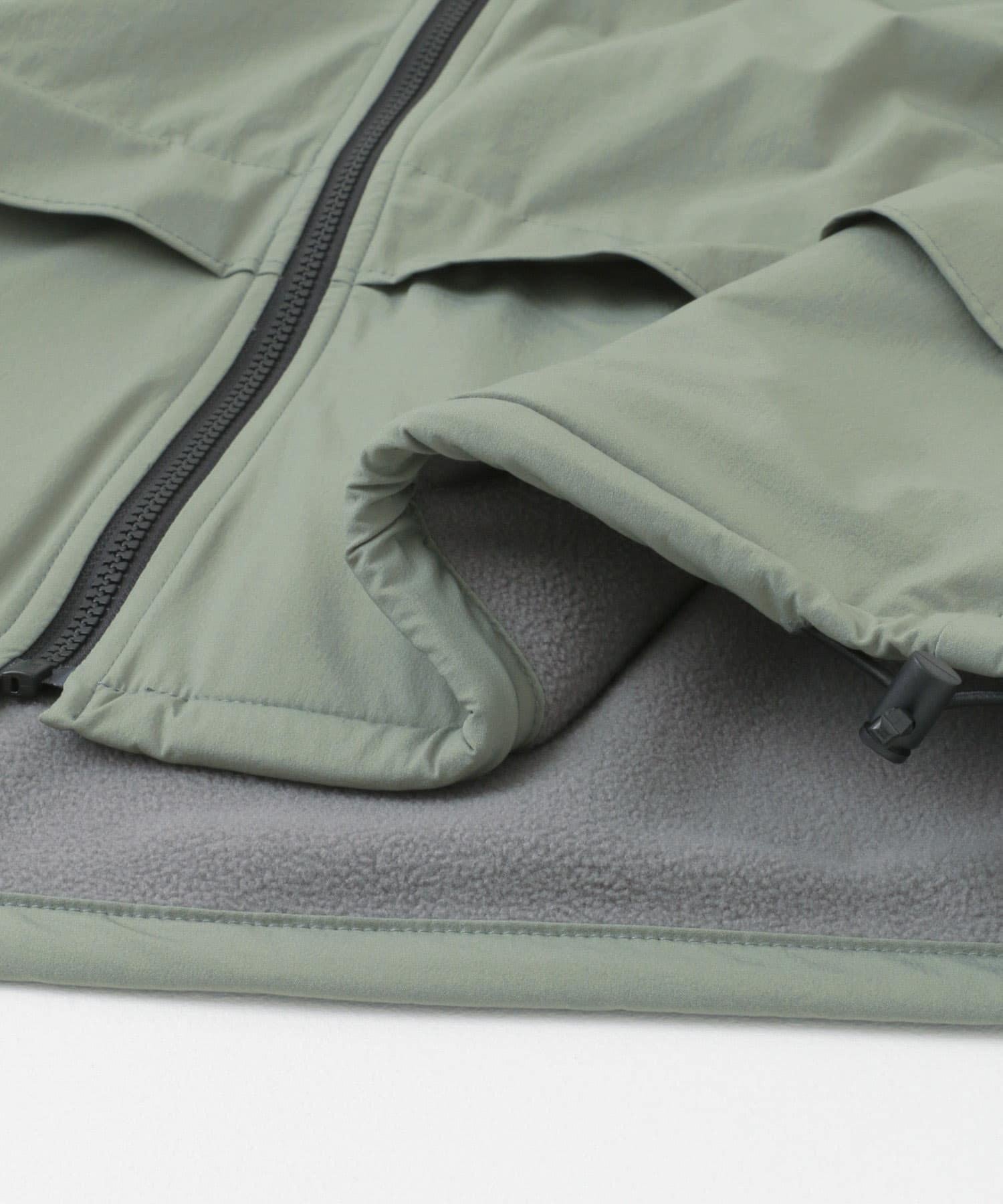 正面採用標準的 4 向彈力面料,具有速幹特性。反面由短肢羊毛製成。