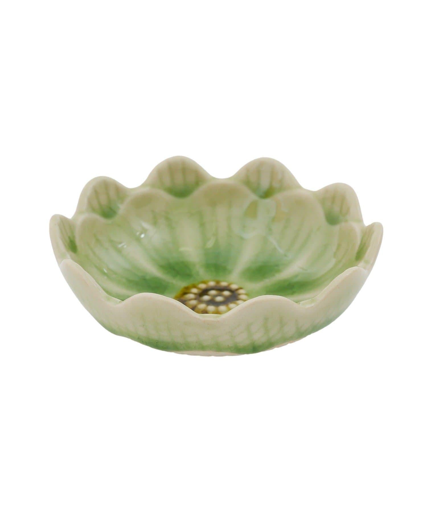 漂亮的花形造型和半透明玻璃般的釉面質感使其在餐桌上呈現出明亮華麗的效果。