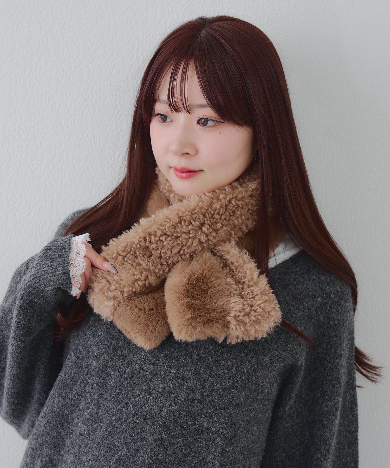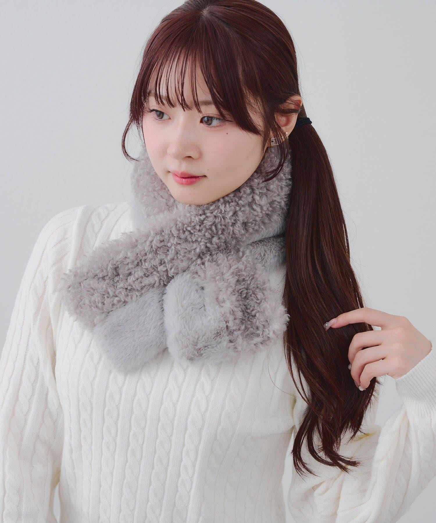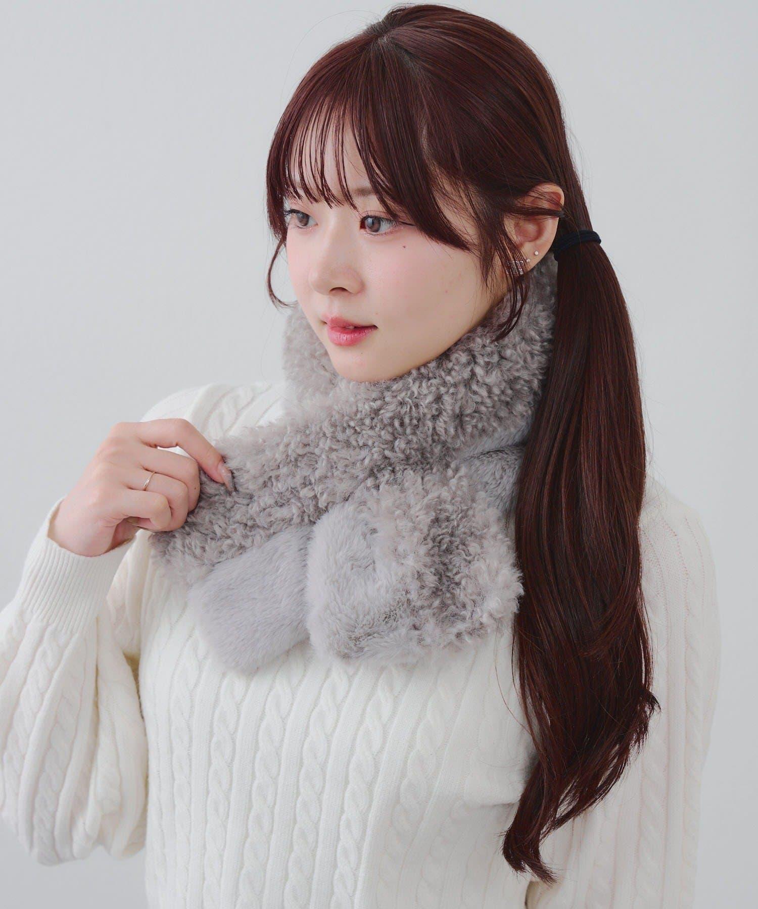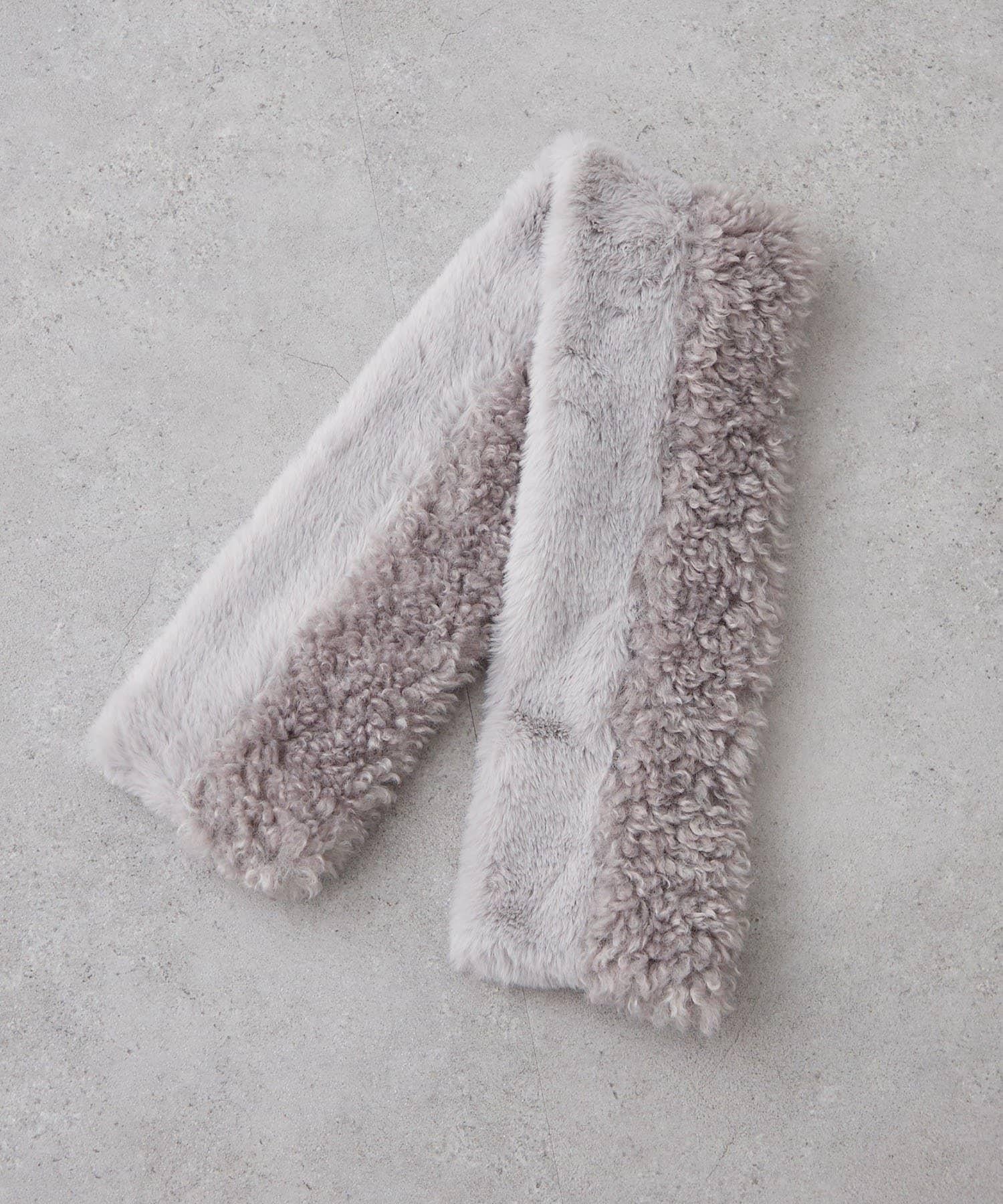 使用兩種不同類型的毛皮製作的保暖圍巾。