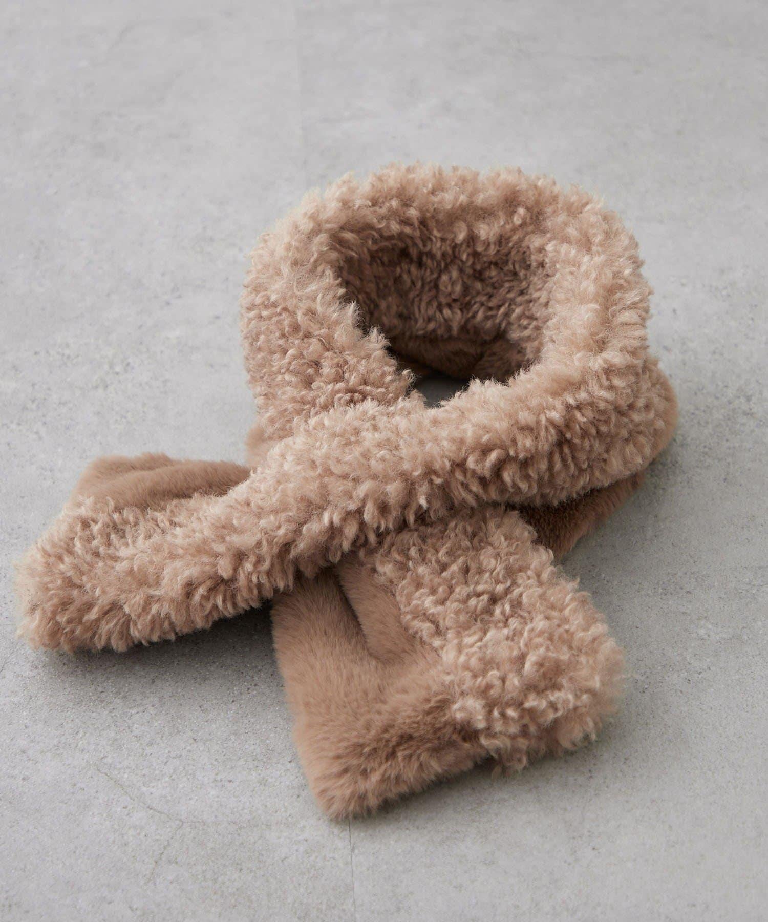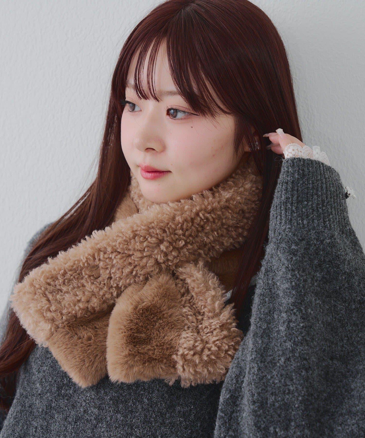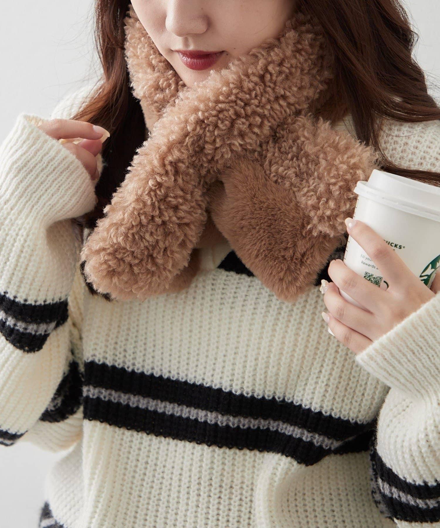 使用兩種不同類型的毛皮製作的保暖圍巾。