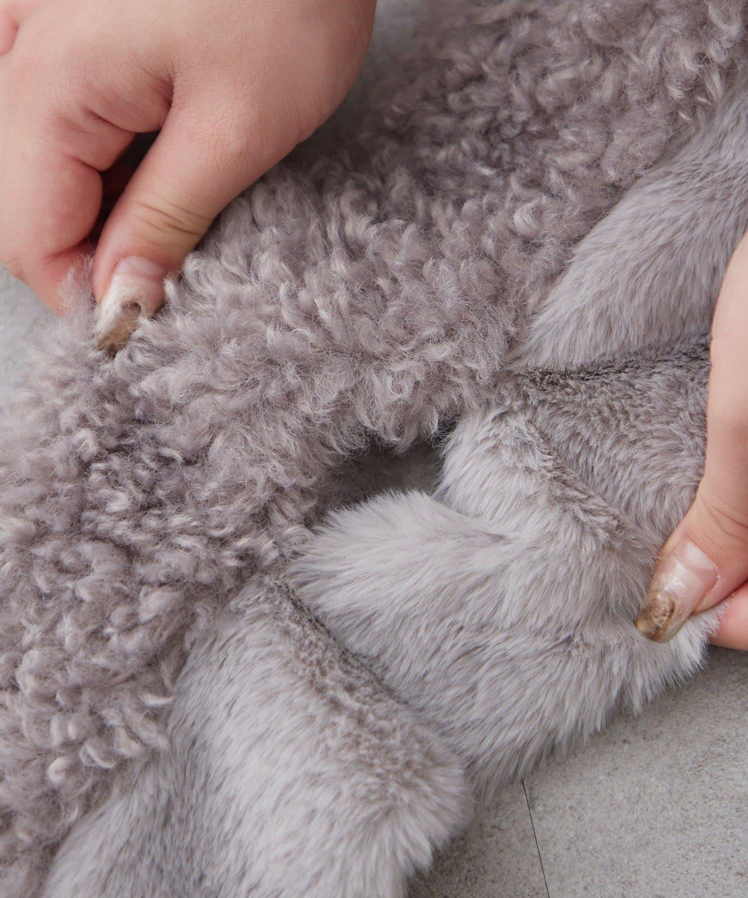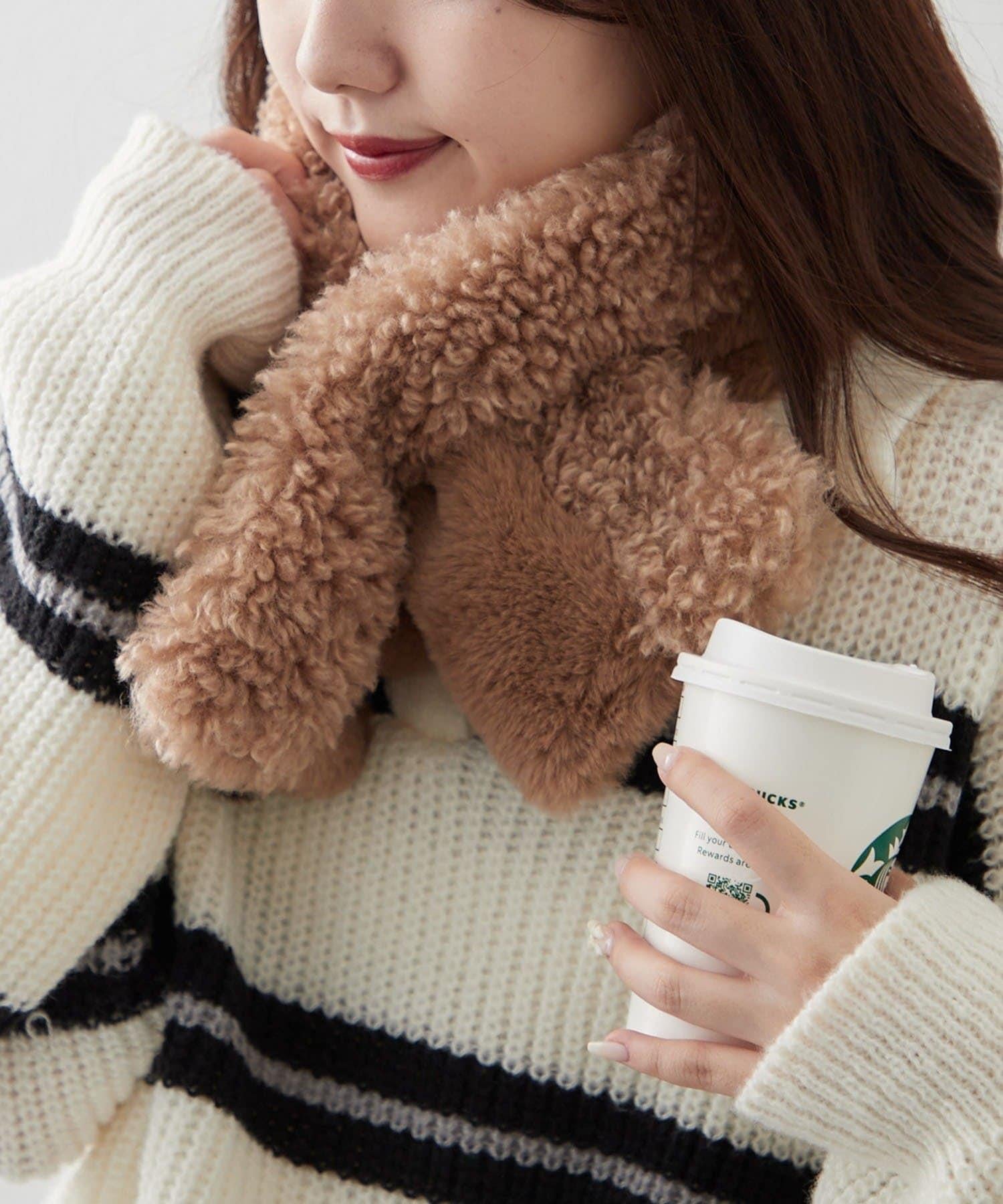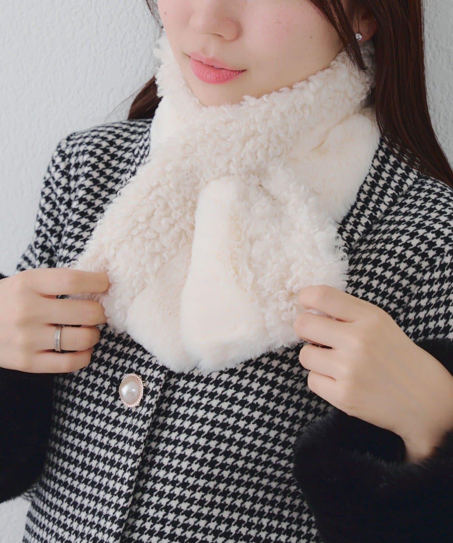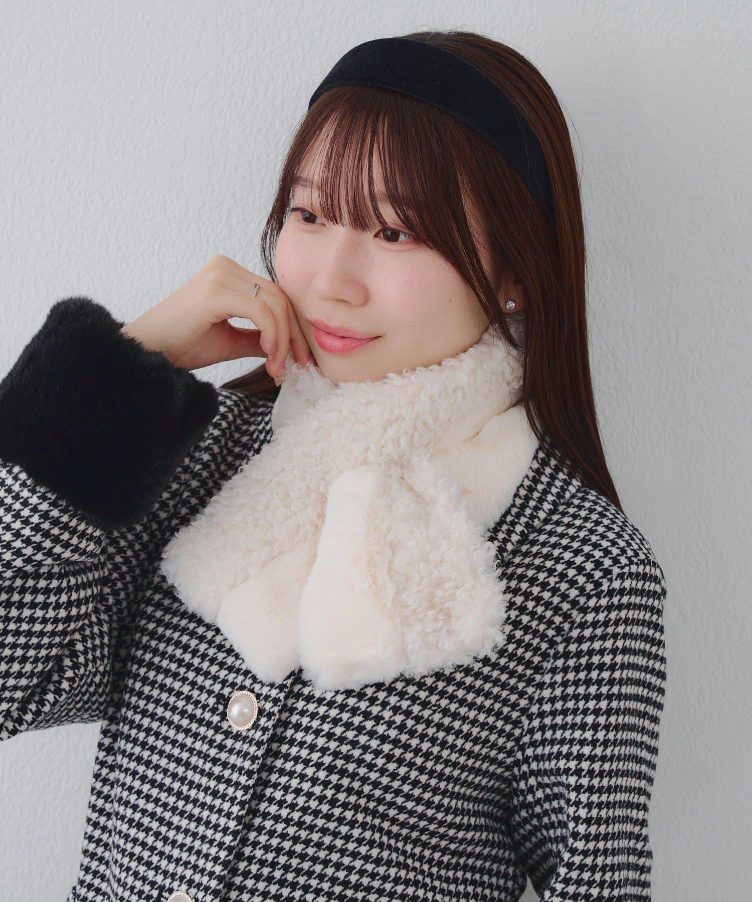 使用兩種不同類型的毛皮製作的保暖圍巾。