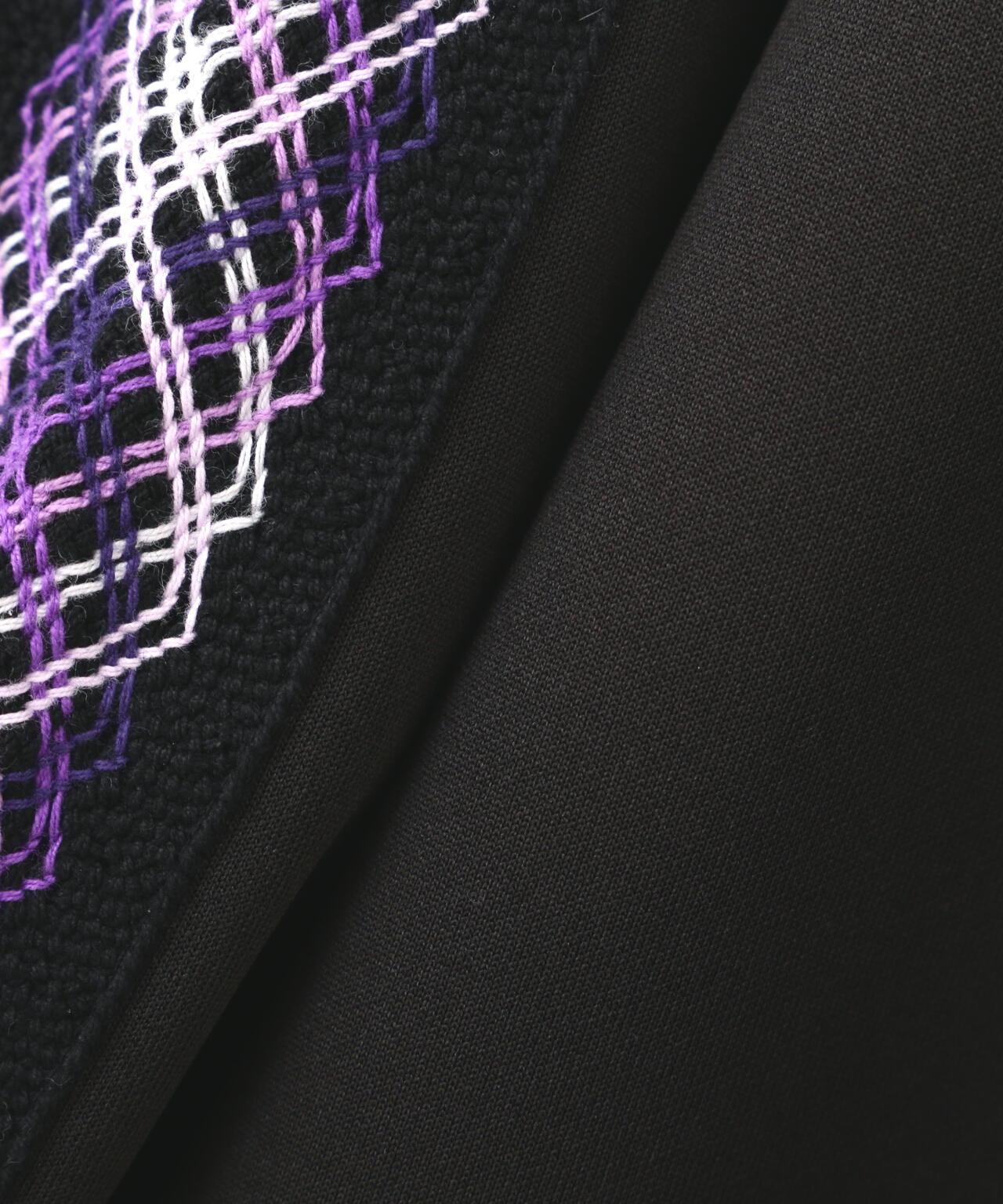 運動衫從肩部到袖子都有側邊綁帶。織帶由美利拉紗製成,柔軟蓬鬆,與針織面料非常搭配。使用了獨創的針織漸變帶。通常情況下,彩色紗線相交的地方不可能呈現出漂亮的色彩,而這種方法是在紗線相交時將紗線插入紗線之間,這樣就能呈現出漂亮的色彩。這種方法只有日本的這家工廠才能做到。運動夾克有三種顏色可供選擇,每種顏色都配有不同顏色的膠帶。夾克還可以作為協調的配飾,穿著舒適,尺碼寬鬆。肖特的歷史可以說是騎手夾克的代名詞,它始於 1913 年在尼