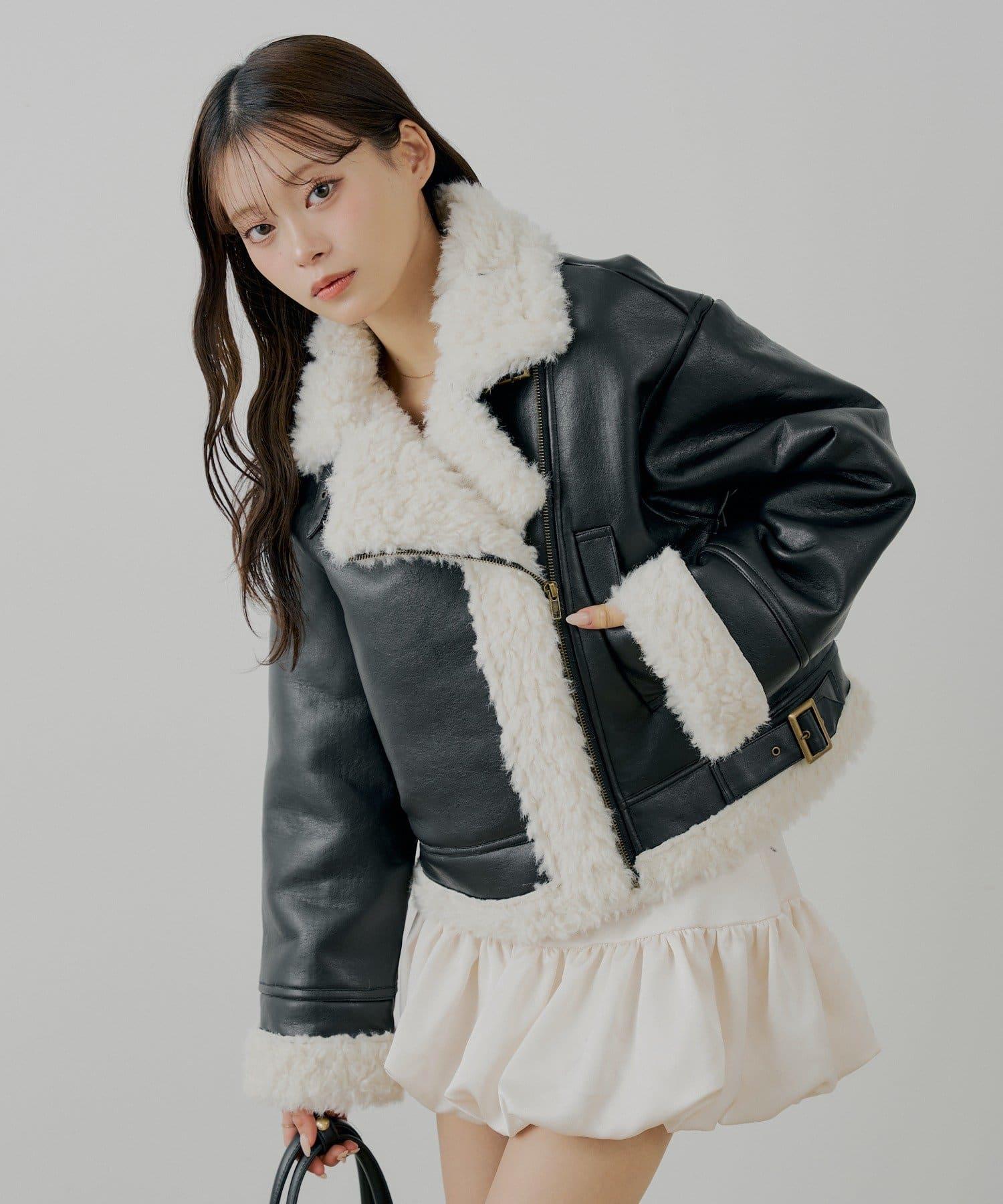 從頸部到前襟、袖口和下襬的蟒蛇襯裡給人一種溫暖的感覺,臉部周圍也有迷人的效果。