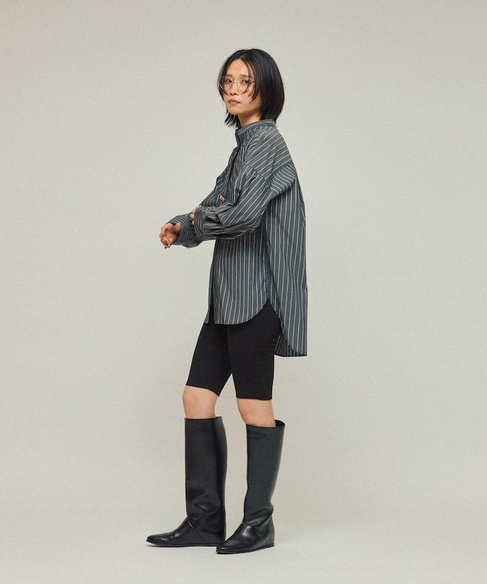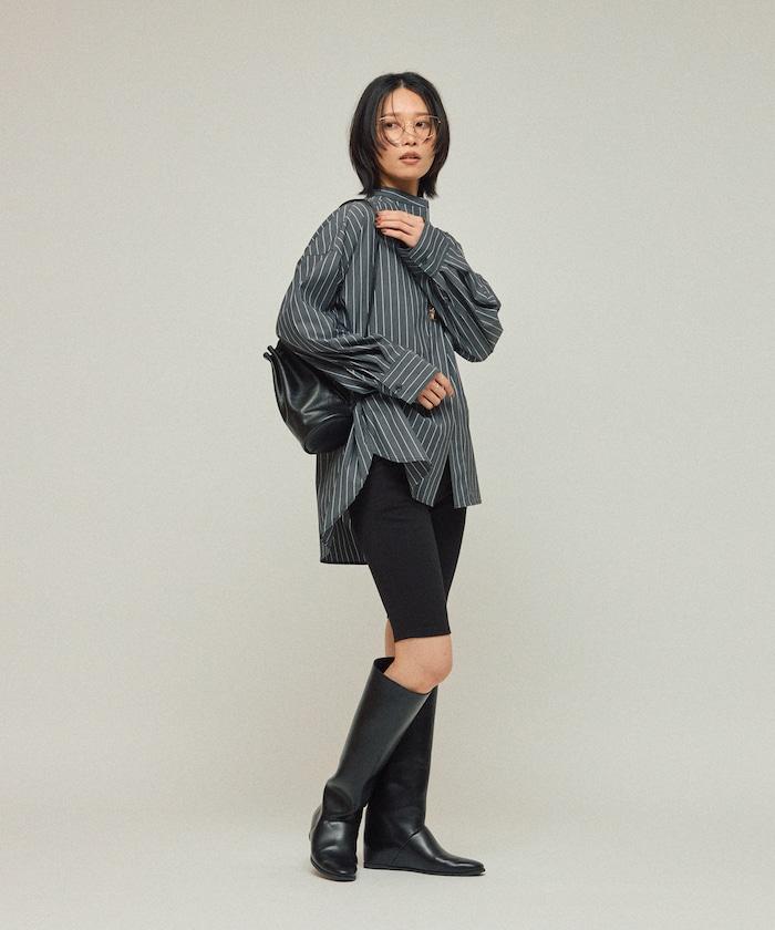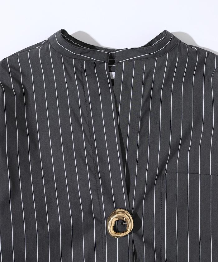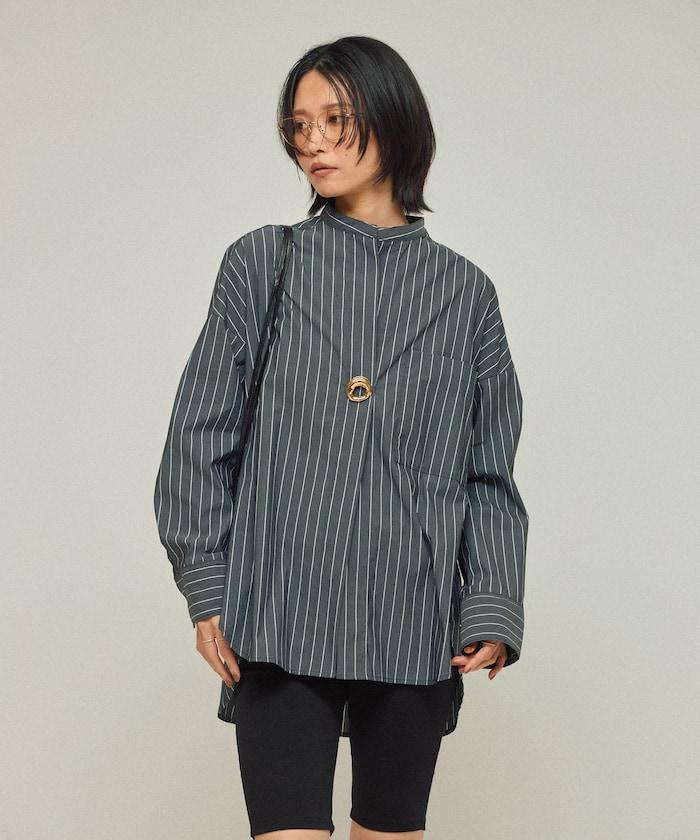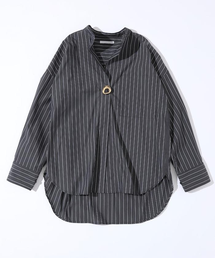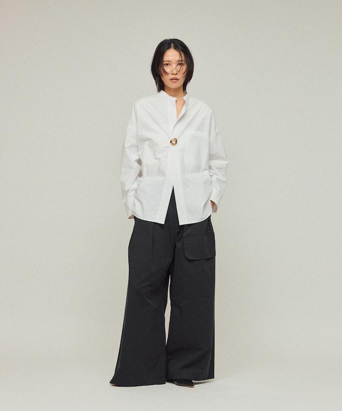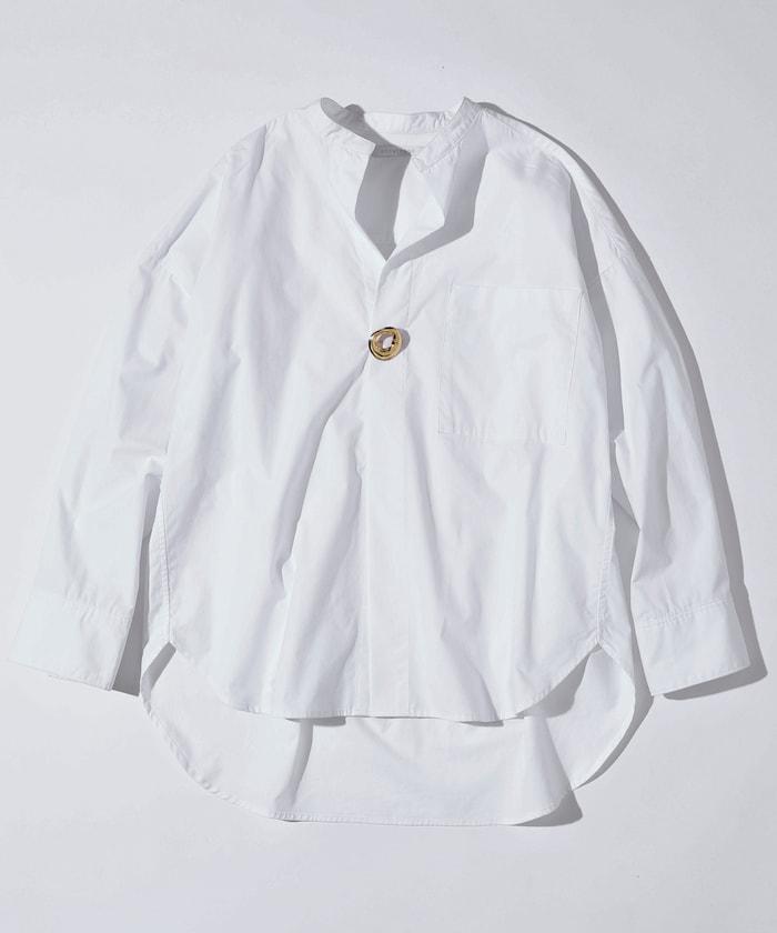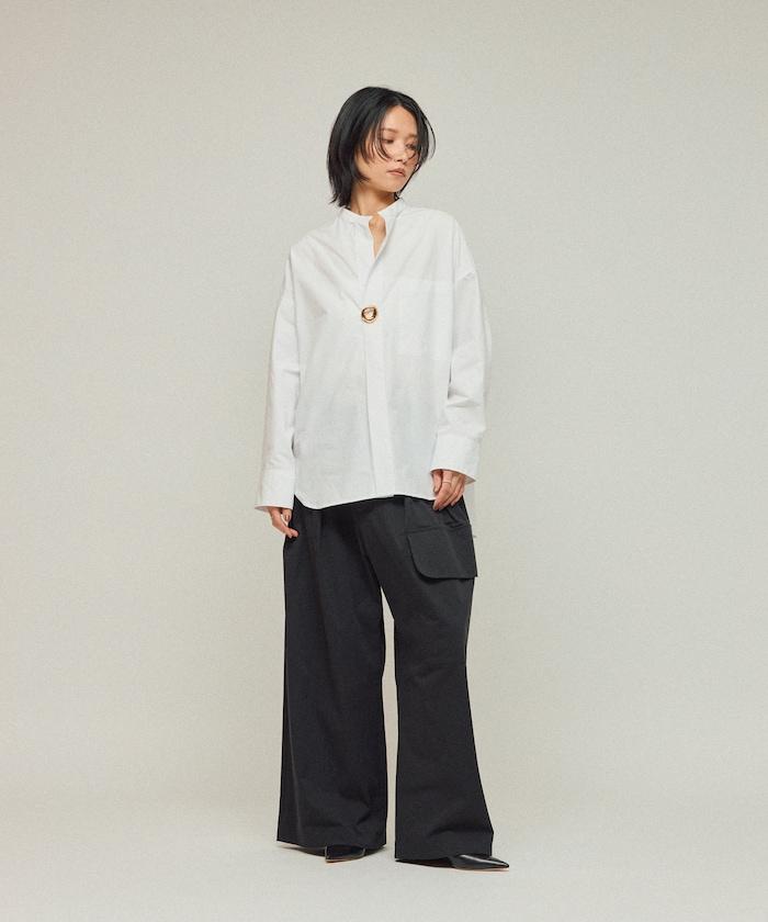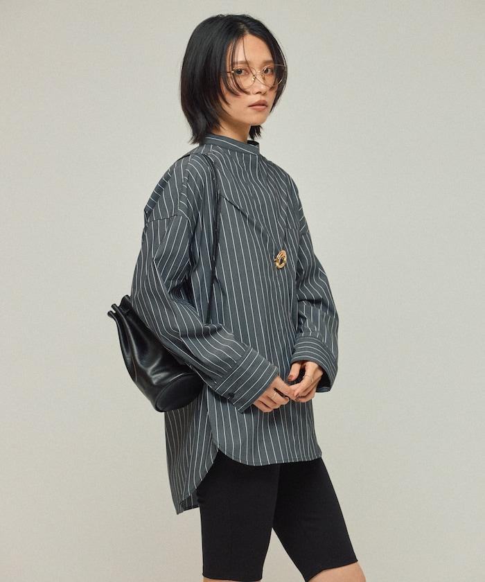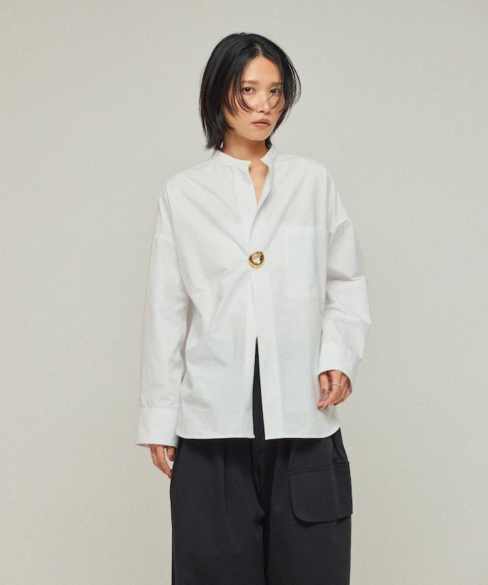 超大號的襯衫便於作為haori使用,在秋季開始等季節交替時也很實用。它還可以作為梭織上衣,內搭吊帶衫或背心,或與薄紗上衣或小巧的針織衫疊穿。下裝可搭配 I 字裙和適度寬鬆的休閒褲。可拆卸的胸針可佩戴在外套、G-JANES 或其他外衣的胸前,也可將圍巾纏繞在脖子上,再繫上胸針,使其成為一款可以有多種風格的單品。