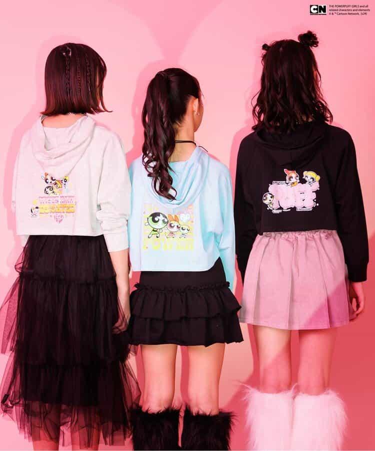 飛天小女警 "的三圖案連帽衫,印有三個女孩布盧斯(Blossom)、泡泡(Bubbles)和毛茛(Buttercup)的圖案。