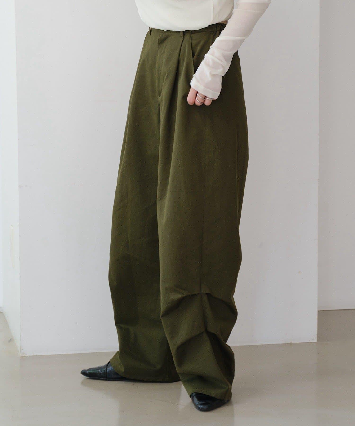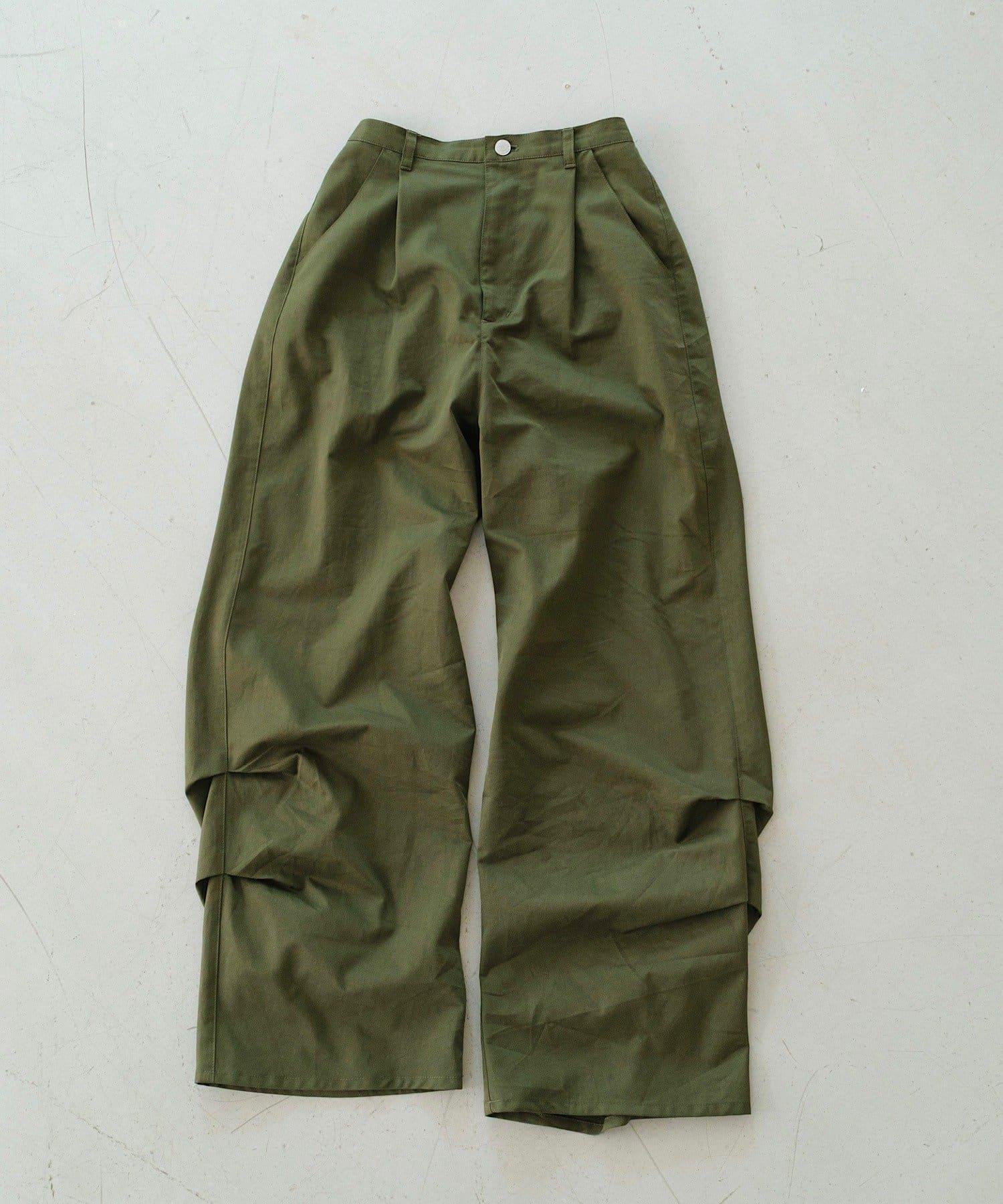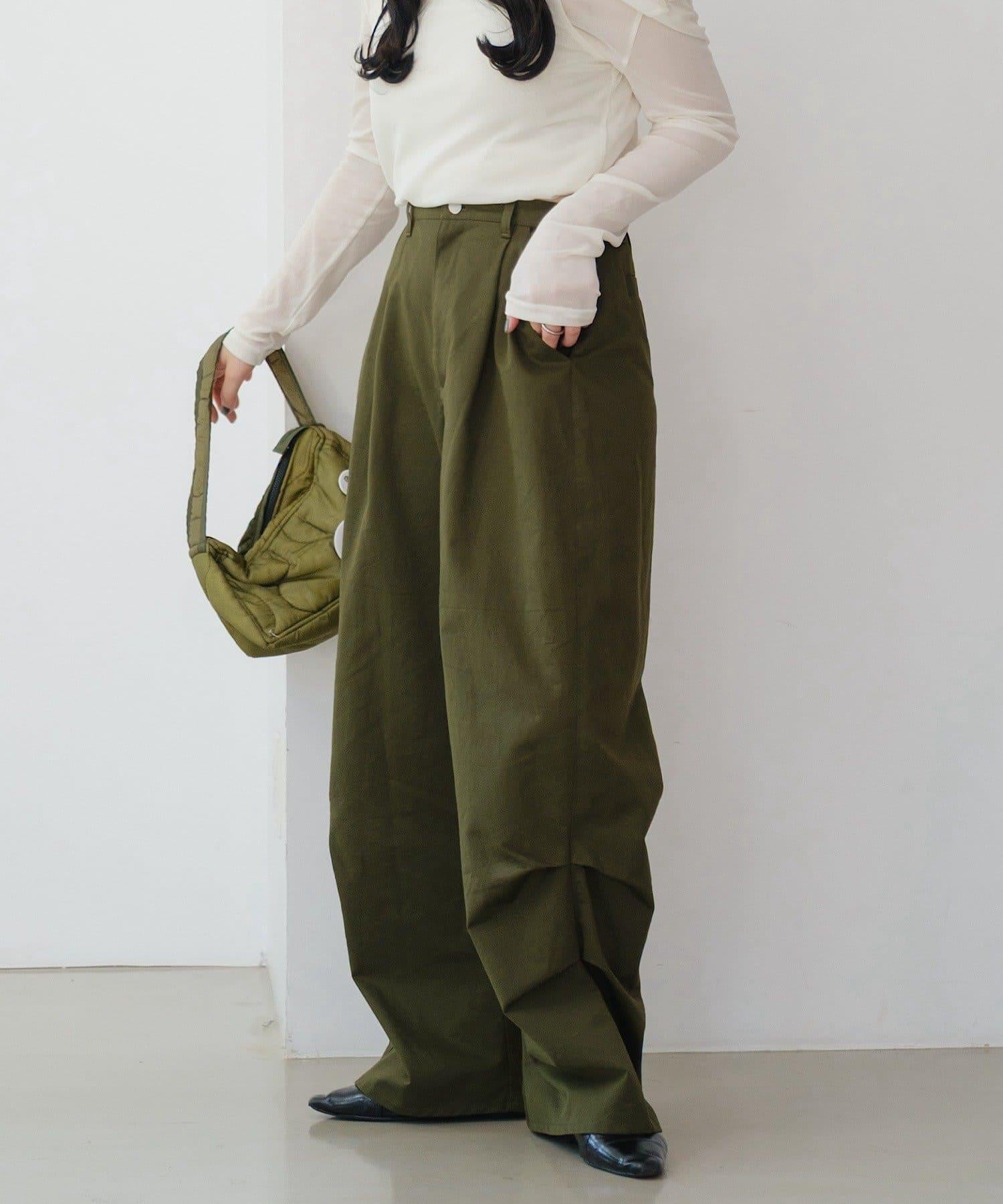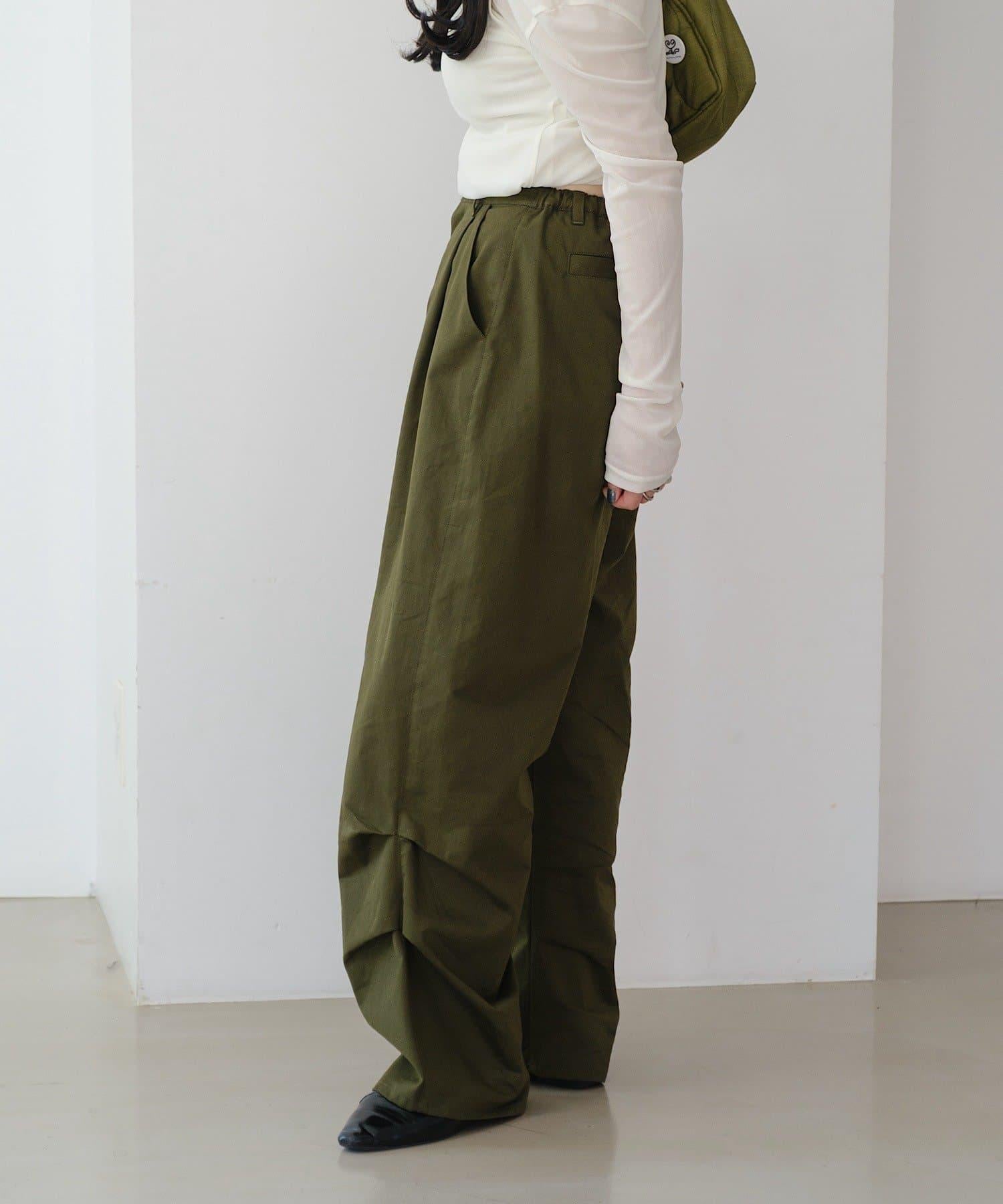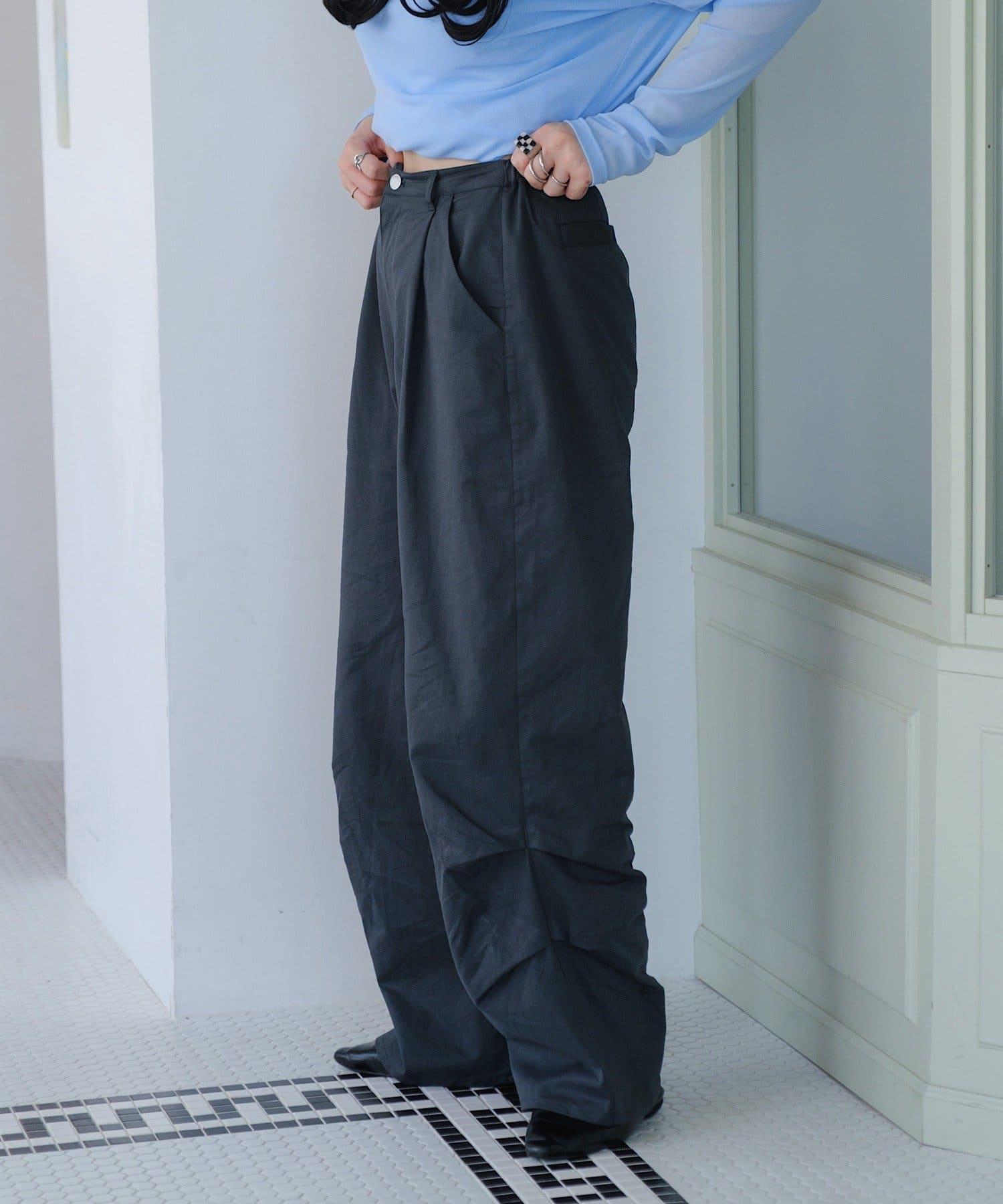 超高腰設計褶皺長褲