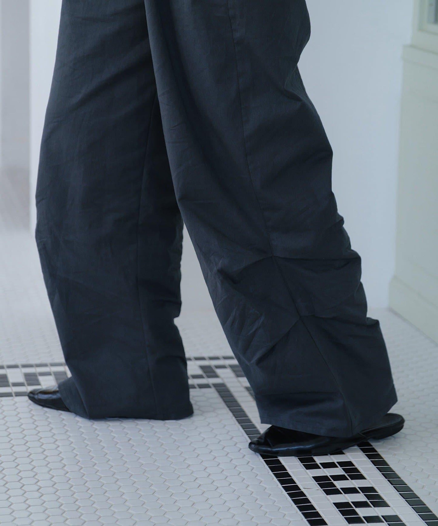 寬鬆、寬大的廓形遮住了腰部,而深襠設計則營造出超高腰線,起到拉長腿部線條的效果。