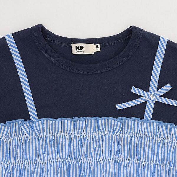 半身裙部分由足球條紋面料製成,手感輕盈光滑。