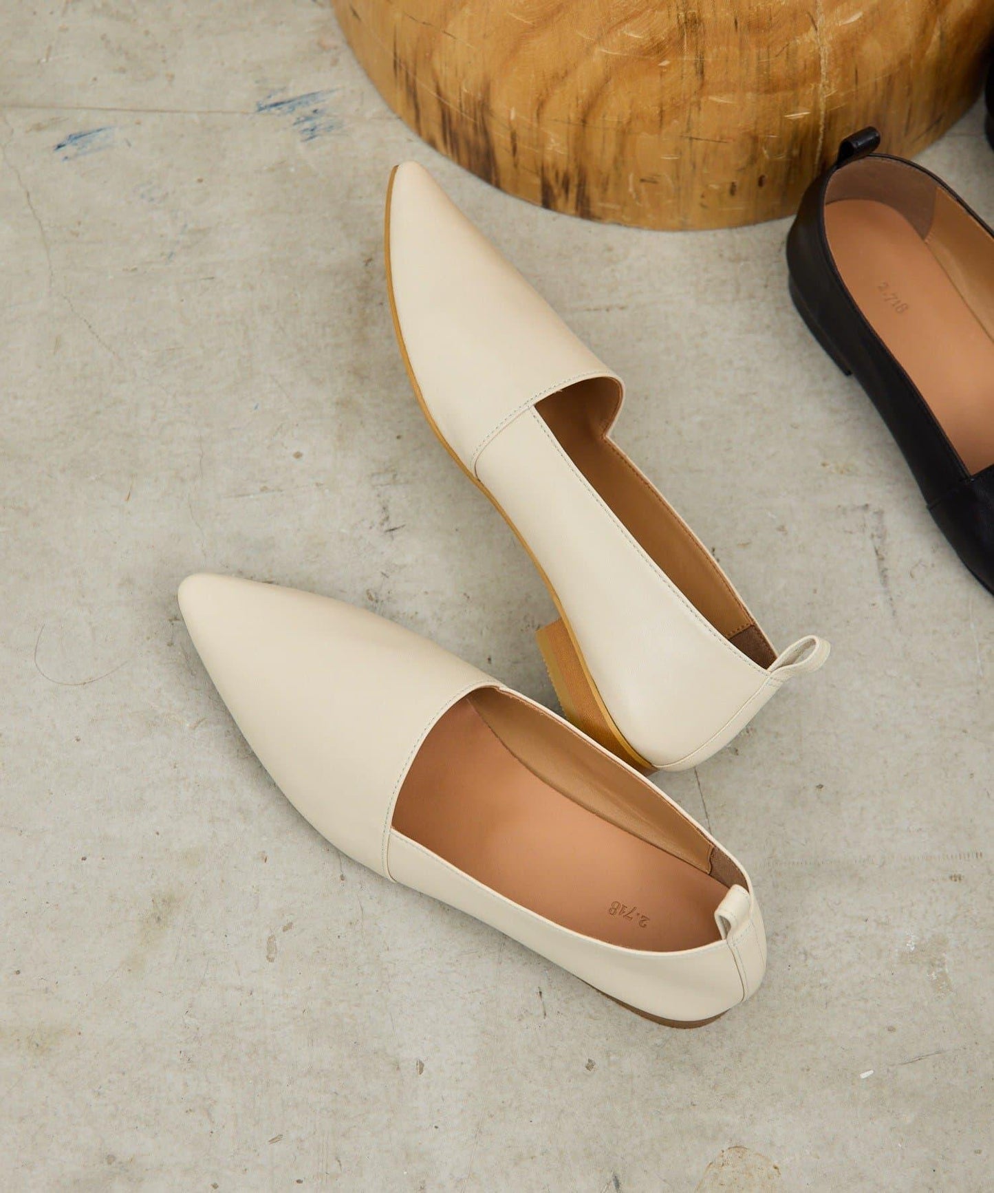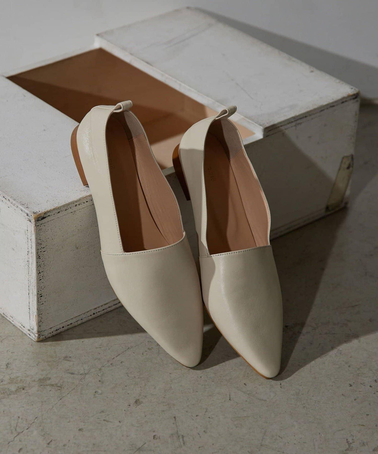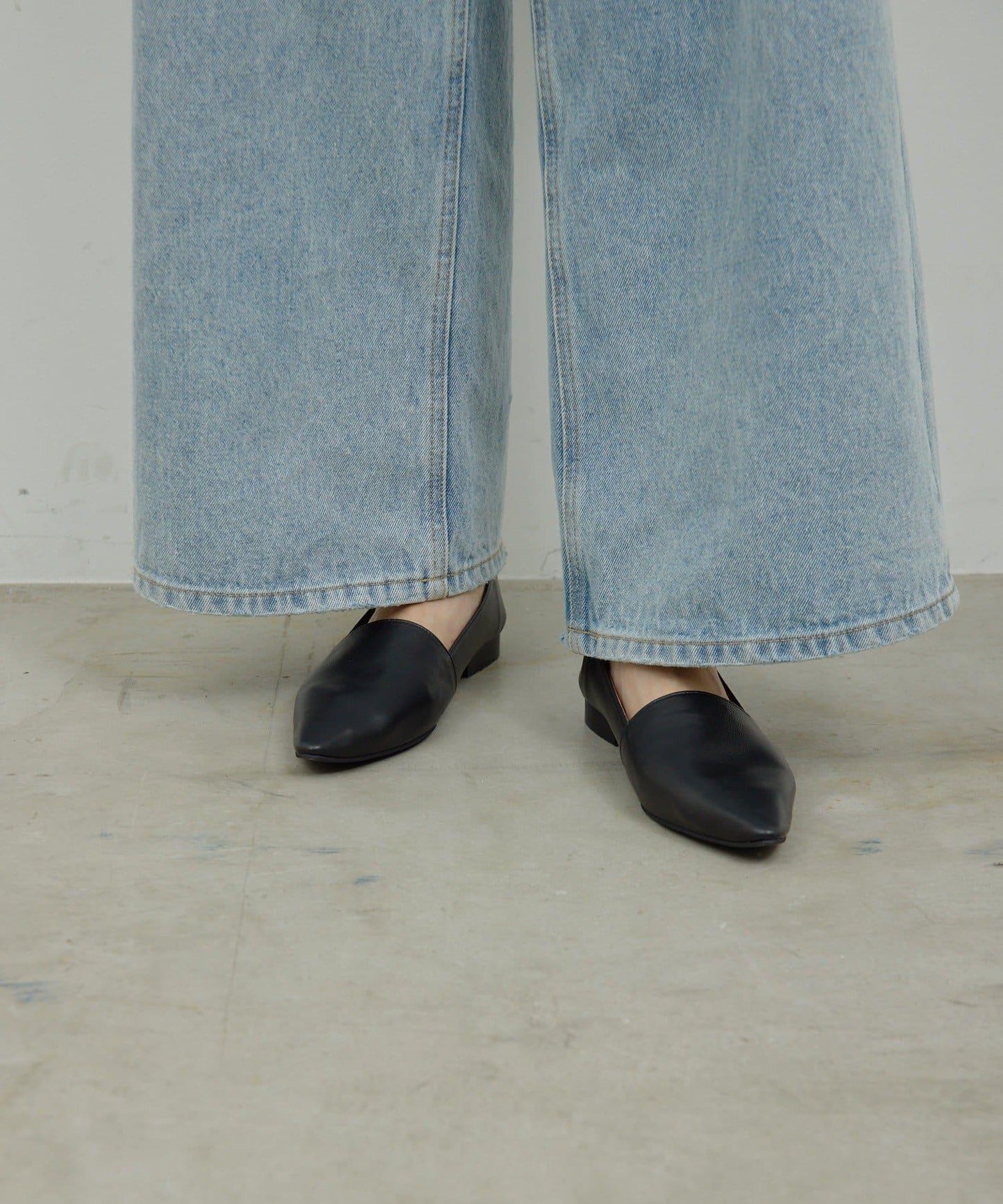 儘管是平底鞋,尖頭設計卻給人乾淨利落的印象。