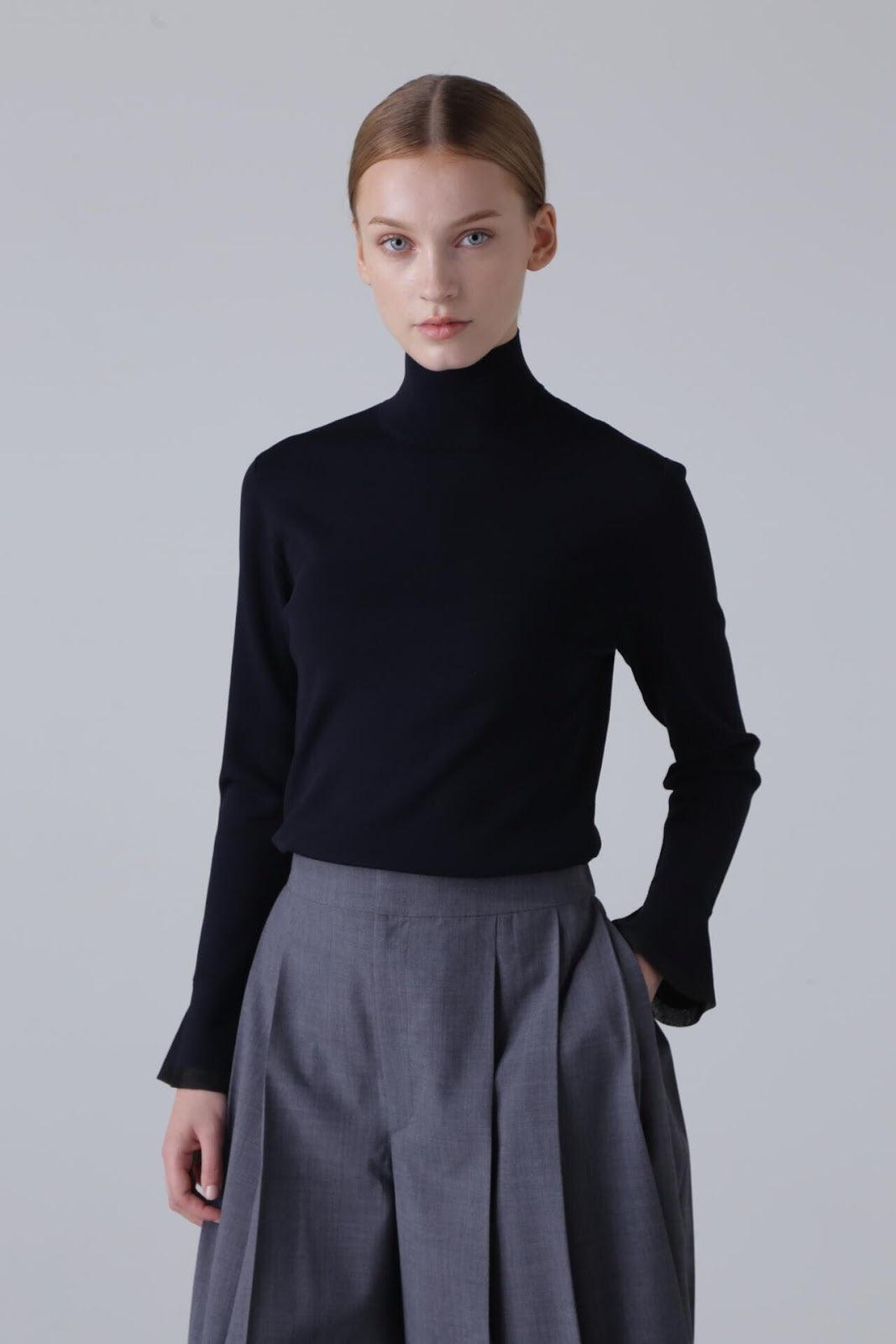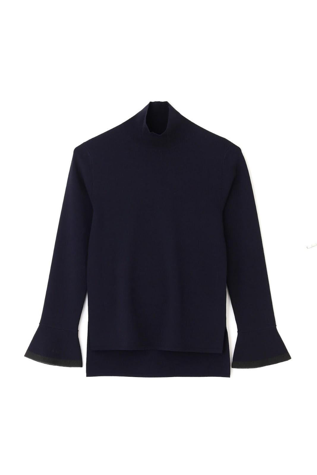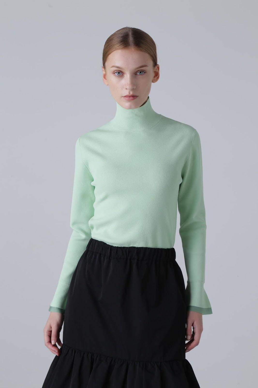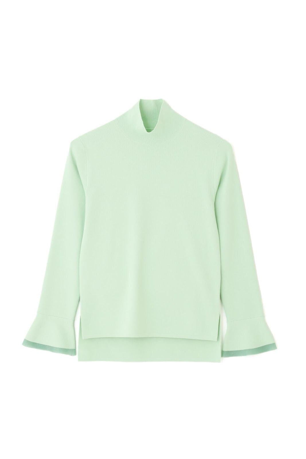 柔軟的彈力針織衫,既可單穿,也可作為內搭立領針織衫,袖口採用鐘罩式設計。這種設計在上一季非常流行,本季袖口採用了不同的針織面料。這款單品不會過於顯露您的曲線,給您帶來時尚、簡潔的外觀。人造絲和 PBT 聚酯高捻紗。袖口採用滌綸薄紗。