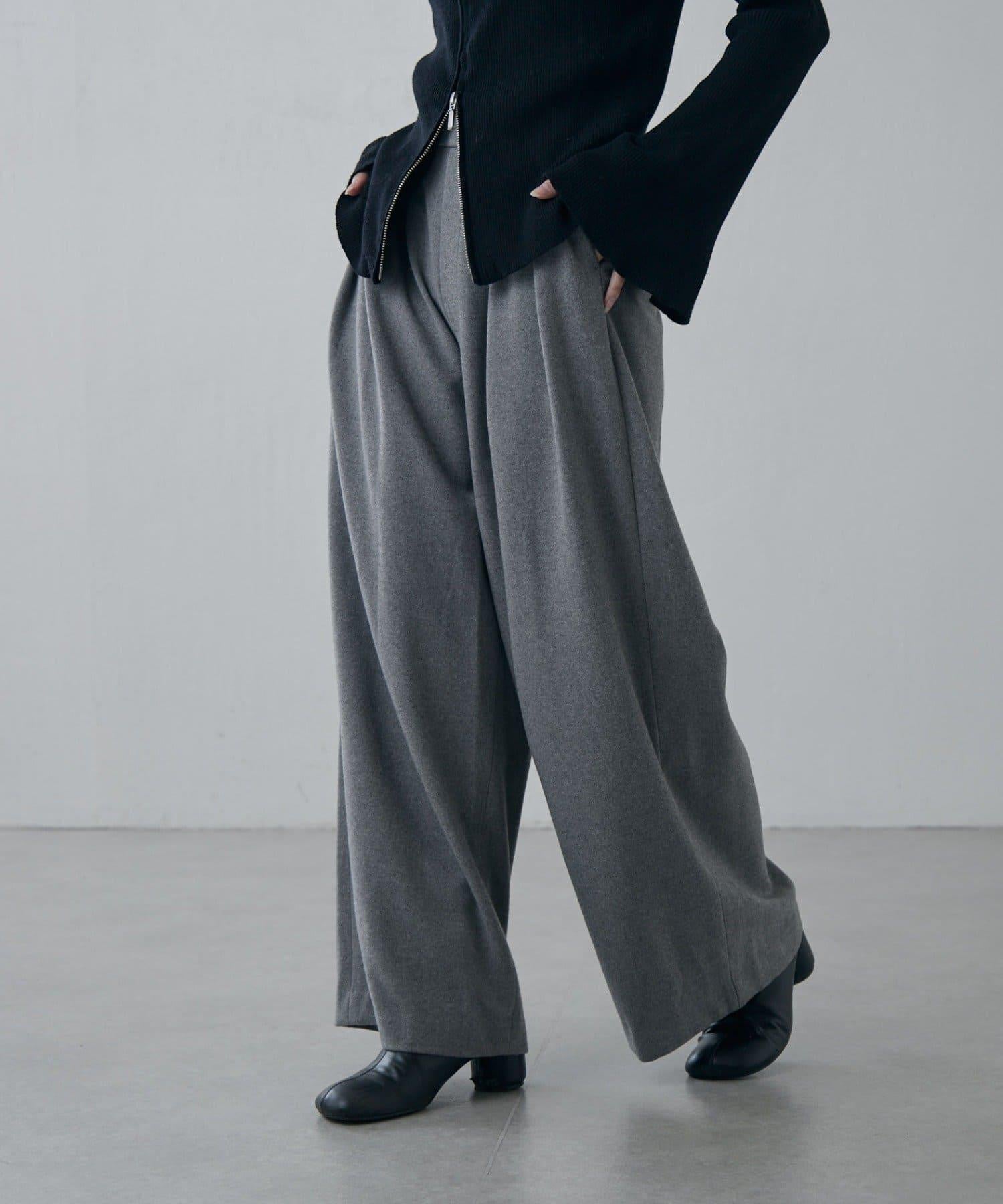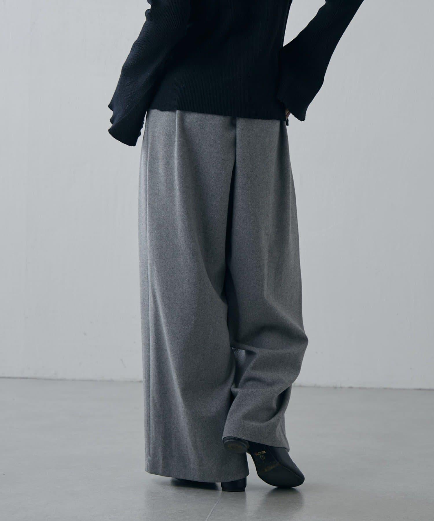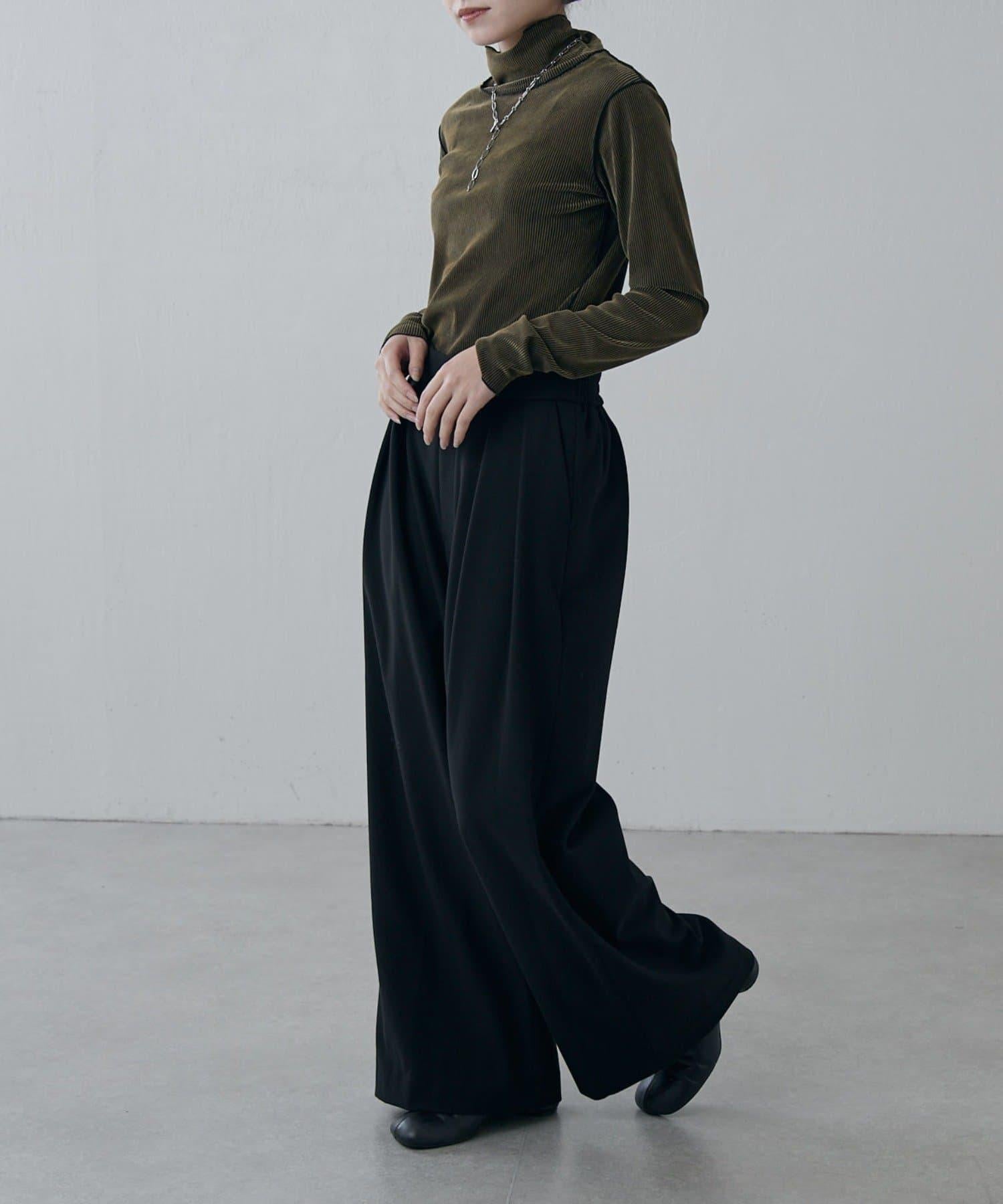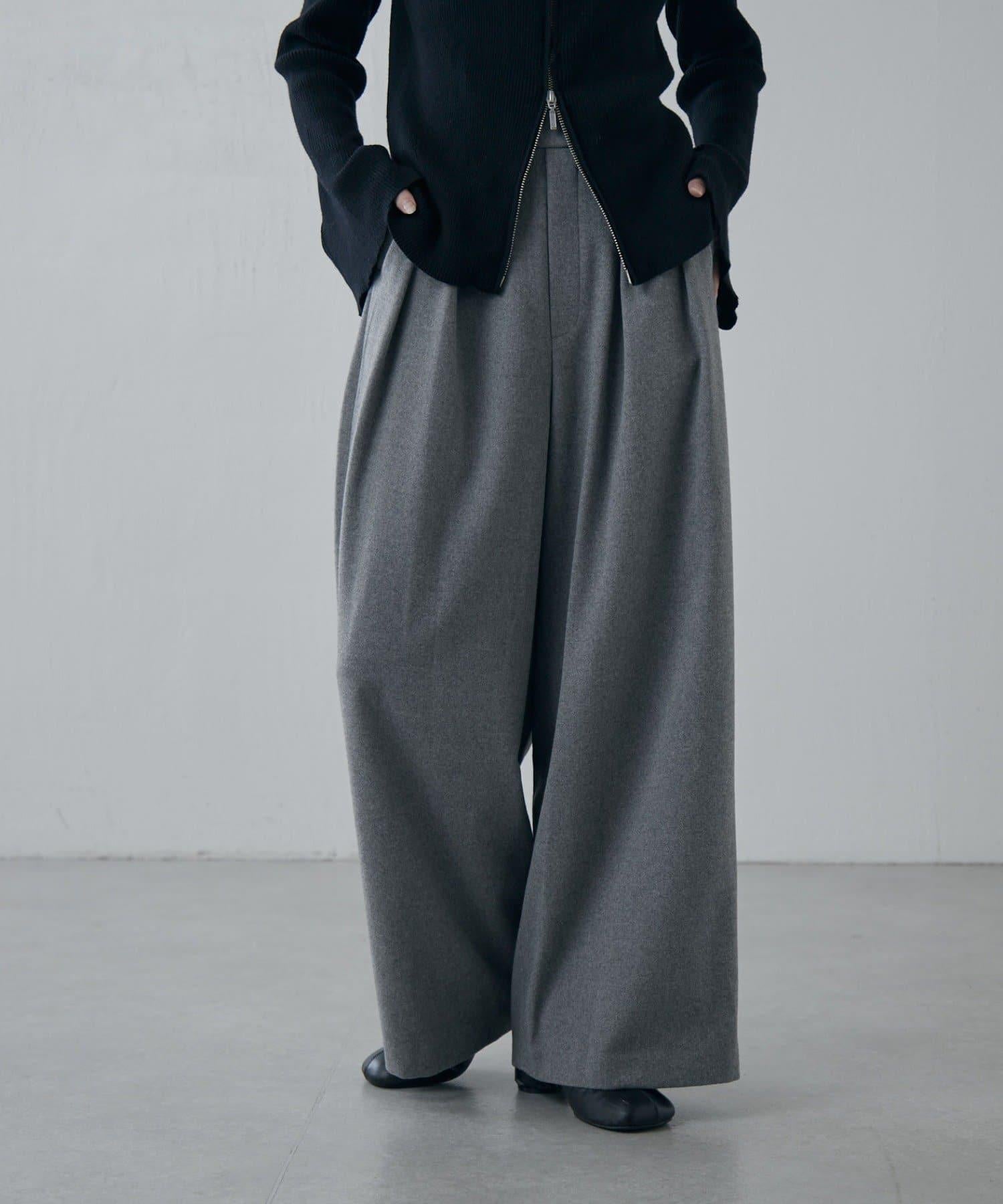 這款休閒褲的輪廓非常優美,腰部有兩個漂亮的收口,下襬寬度較寬,向下擺方向展開。