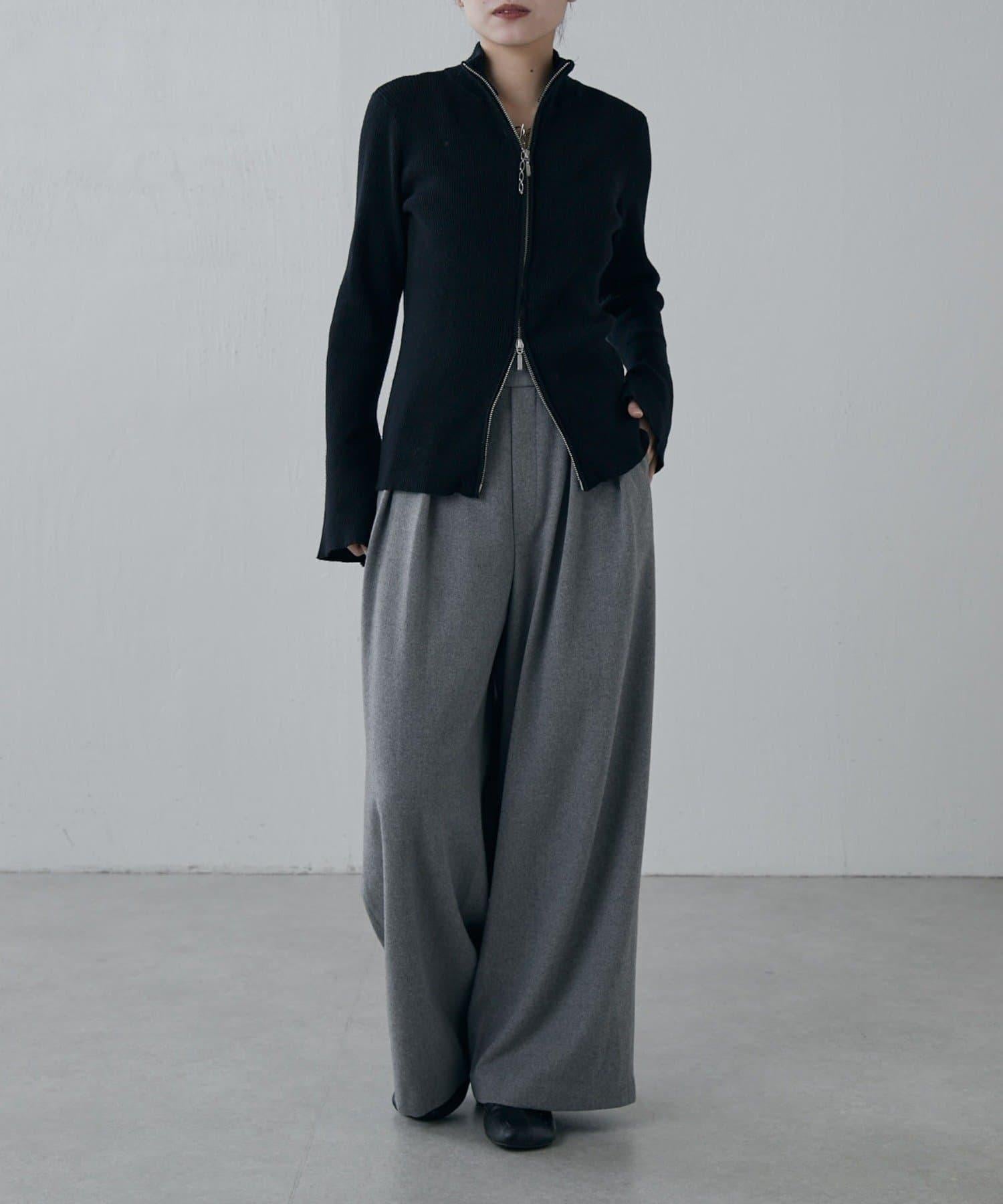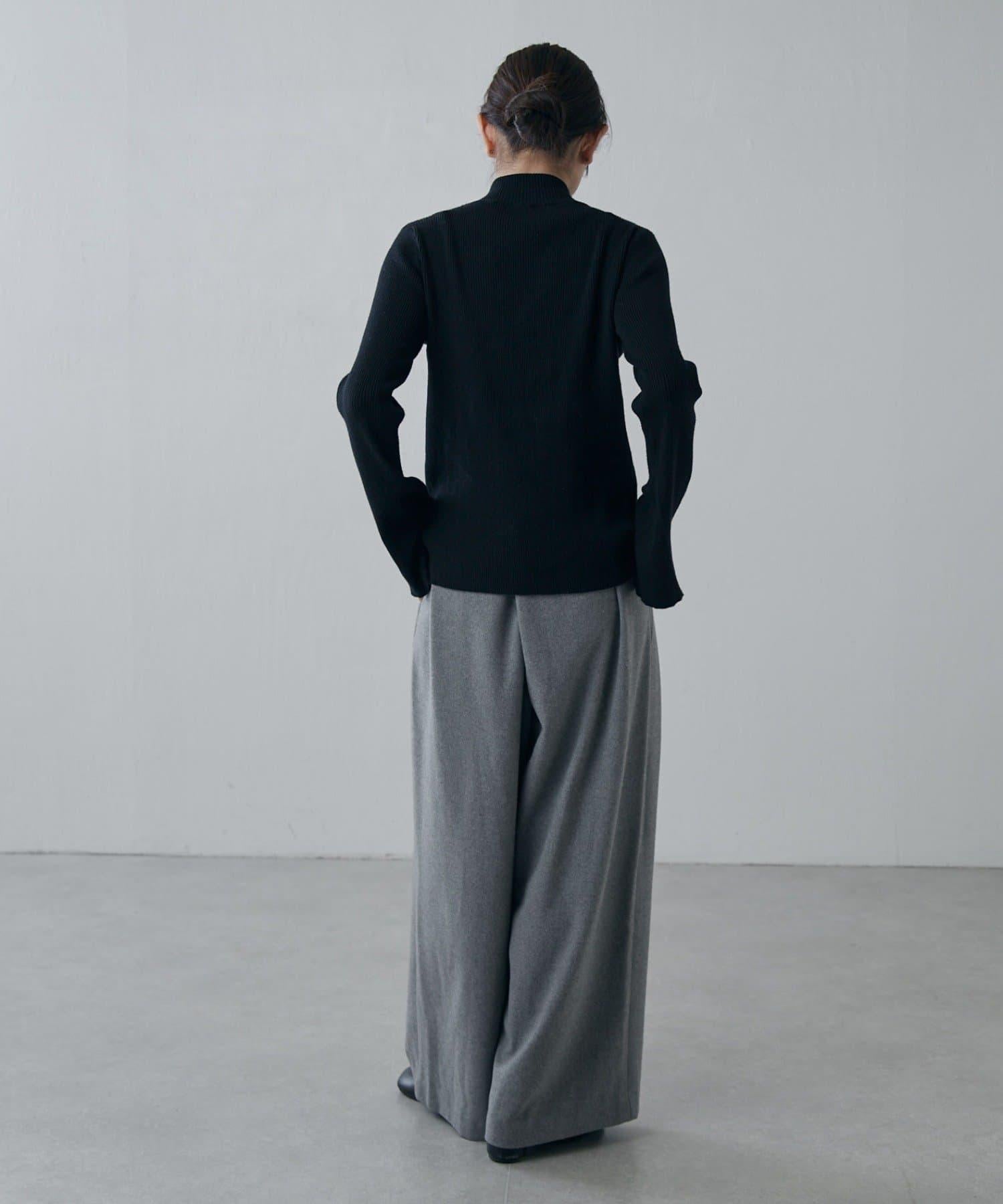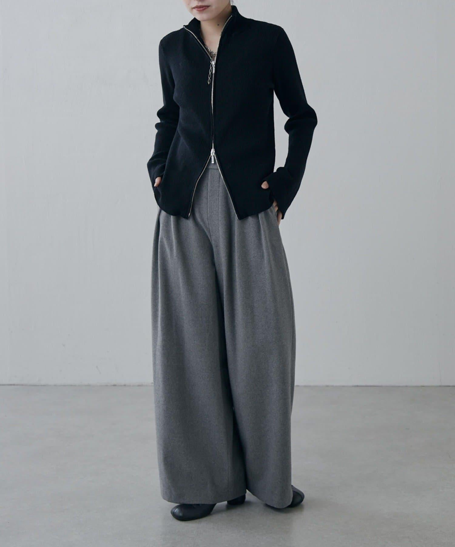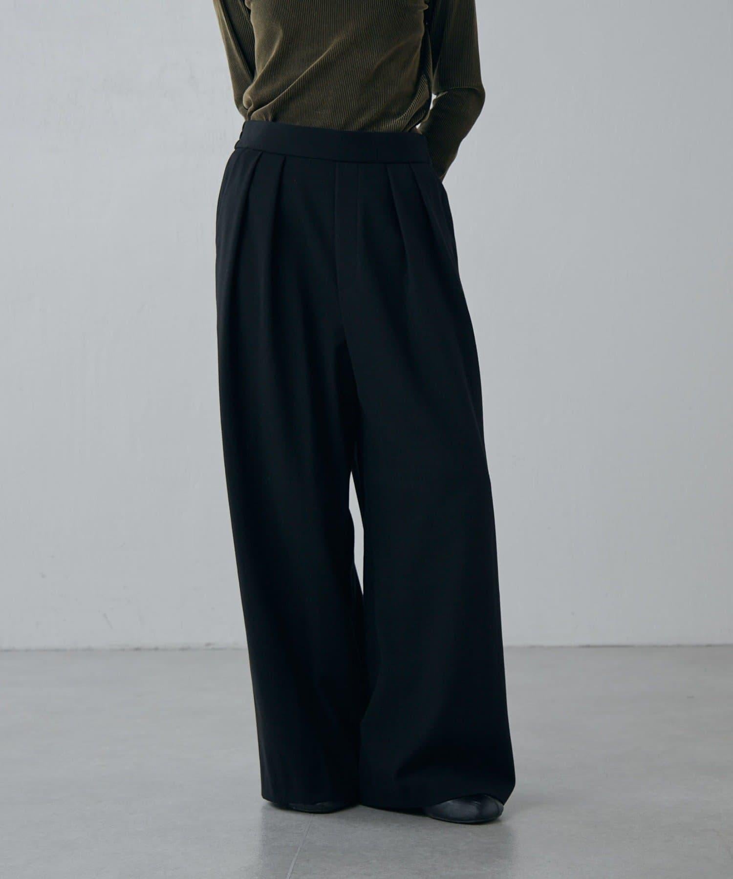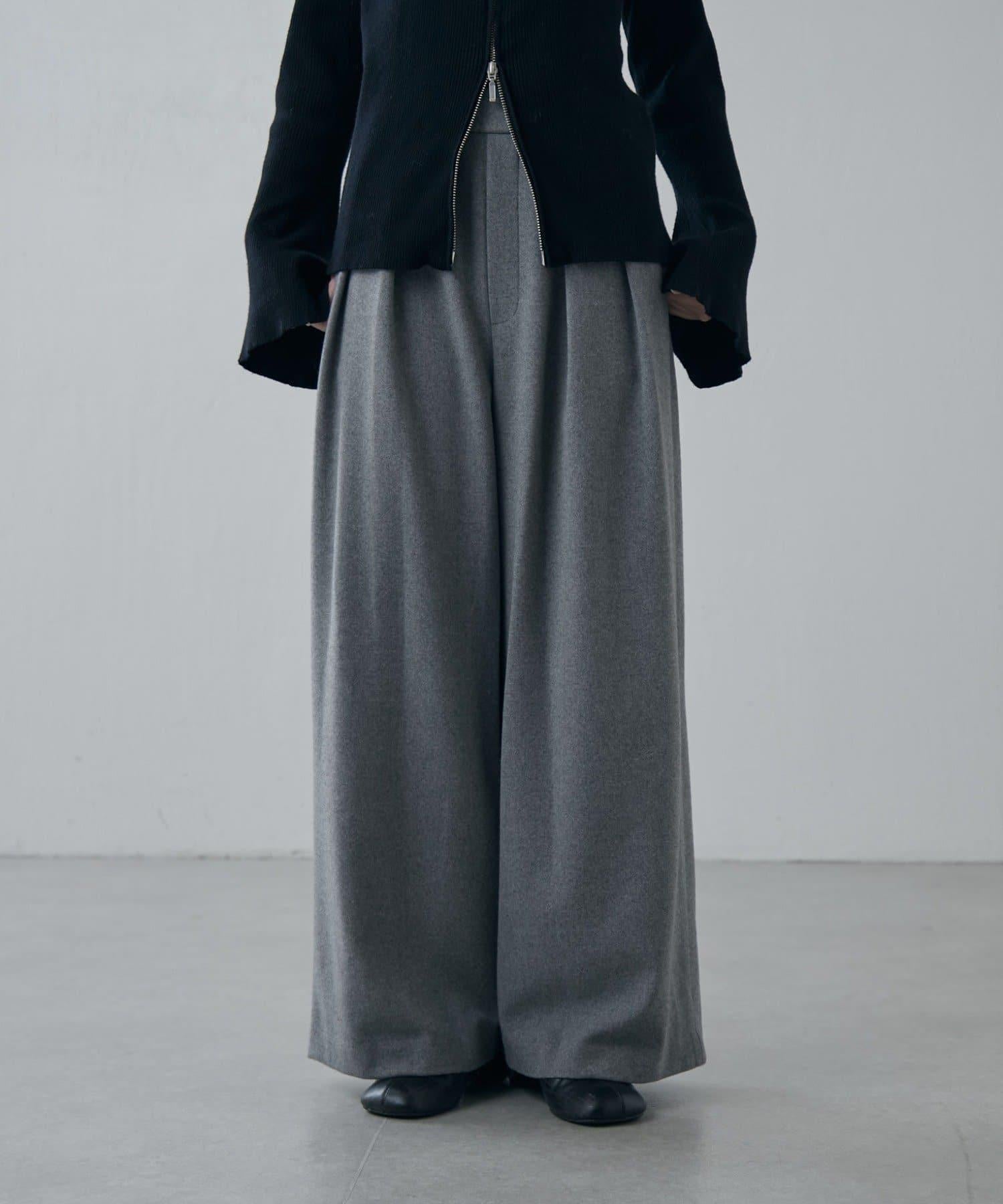 這款休閒褲的輪廓非常優美,腰部有兩個漂亮的收口,下襬寬度較寬,向下擺方向展開。