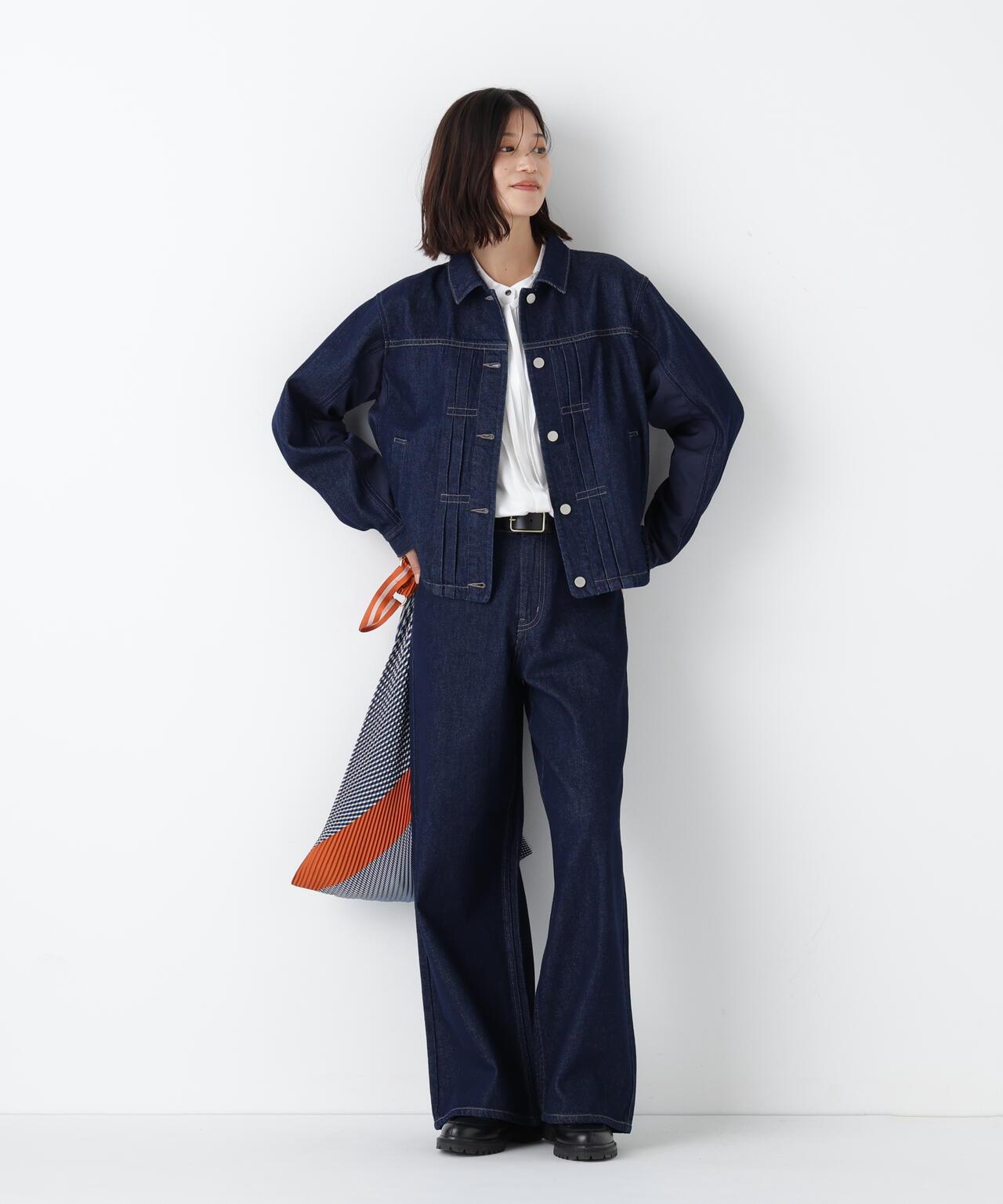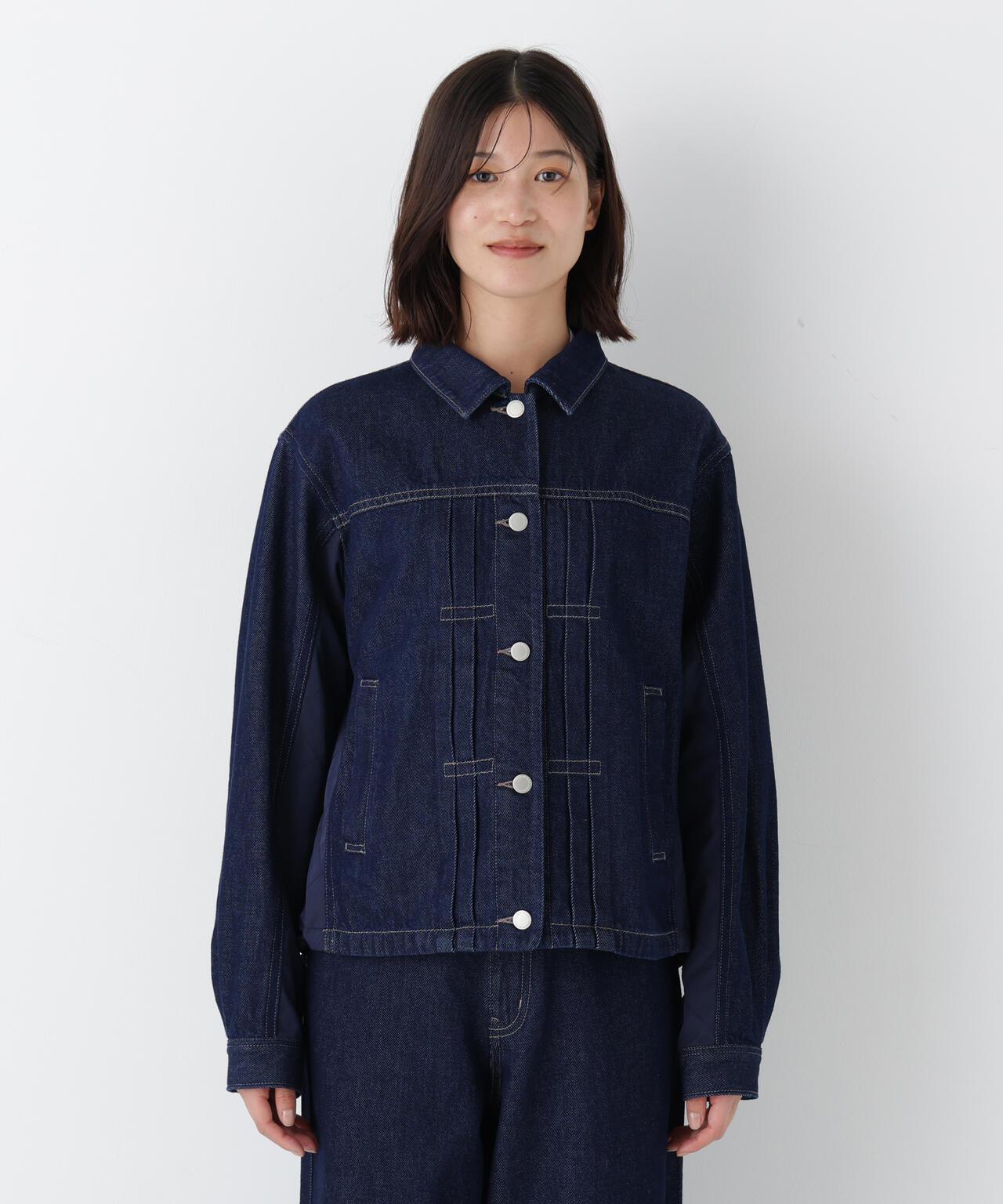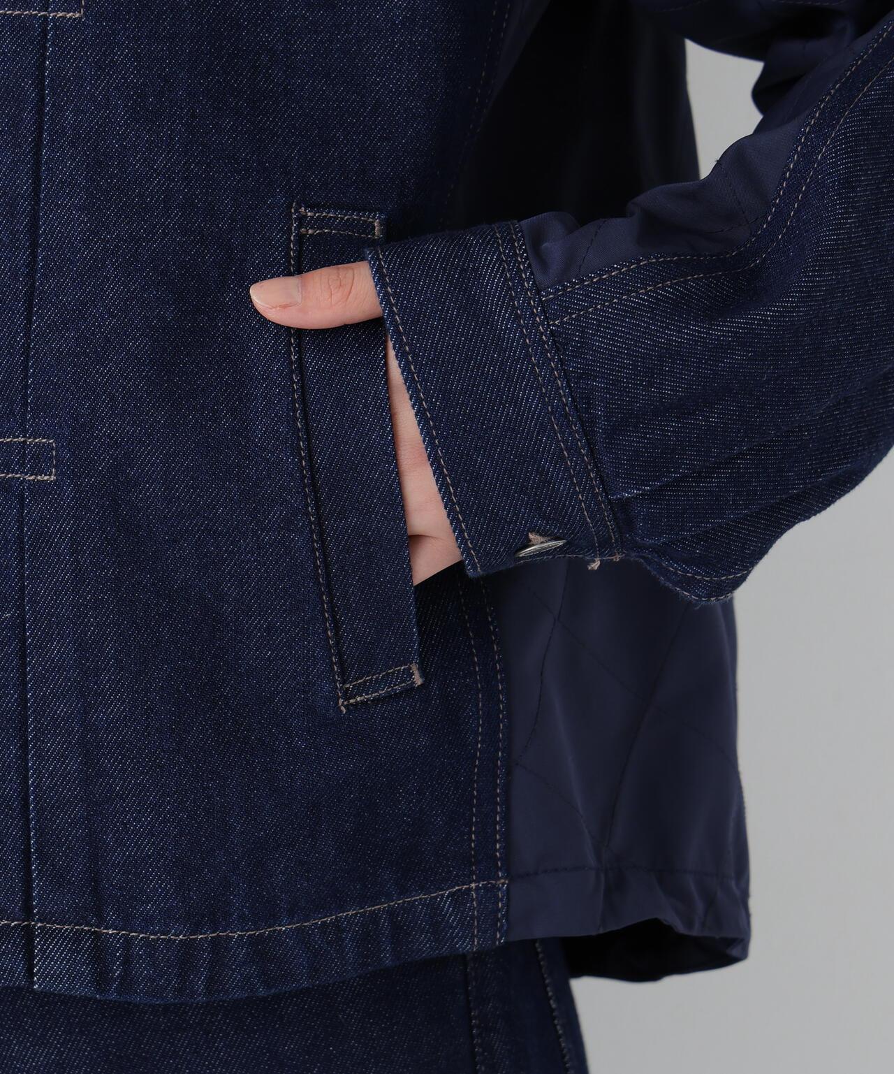 柔軟的牛仔布罩衫,不同材質的對接十分搶眼 [設計要點] 這款不同材質對接的罩衫,在牛仔布 G-jun 的背面和袖子下部對接了絎縫塔夫綢材質。只有塔夫綢和襯裡是絎縫的,以達到輕盈的效果。後下擺可以開叉,因此可以改變輪廓。罩衫由 0.3 盎司柔軟牛仔布和塔夫綢製成。同樣材質的牛仔布套裝也值得推薦。這款 blouson 可以搭配大衣穿著,因此可以一直穿到春天。