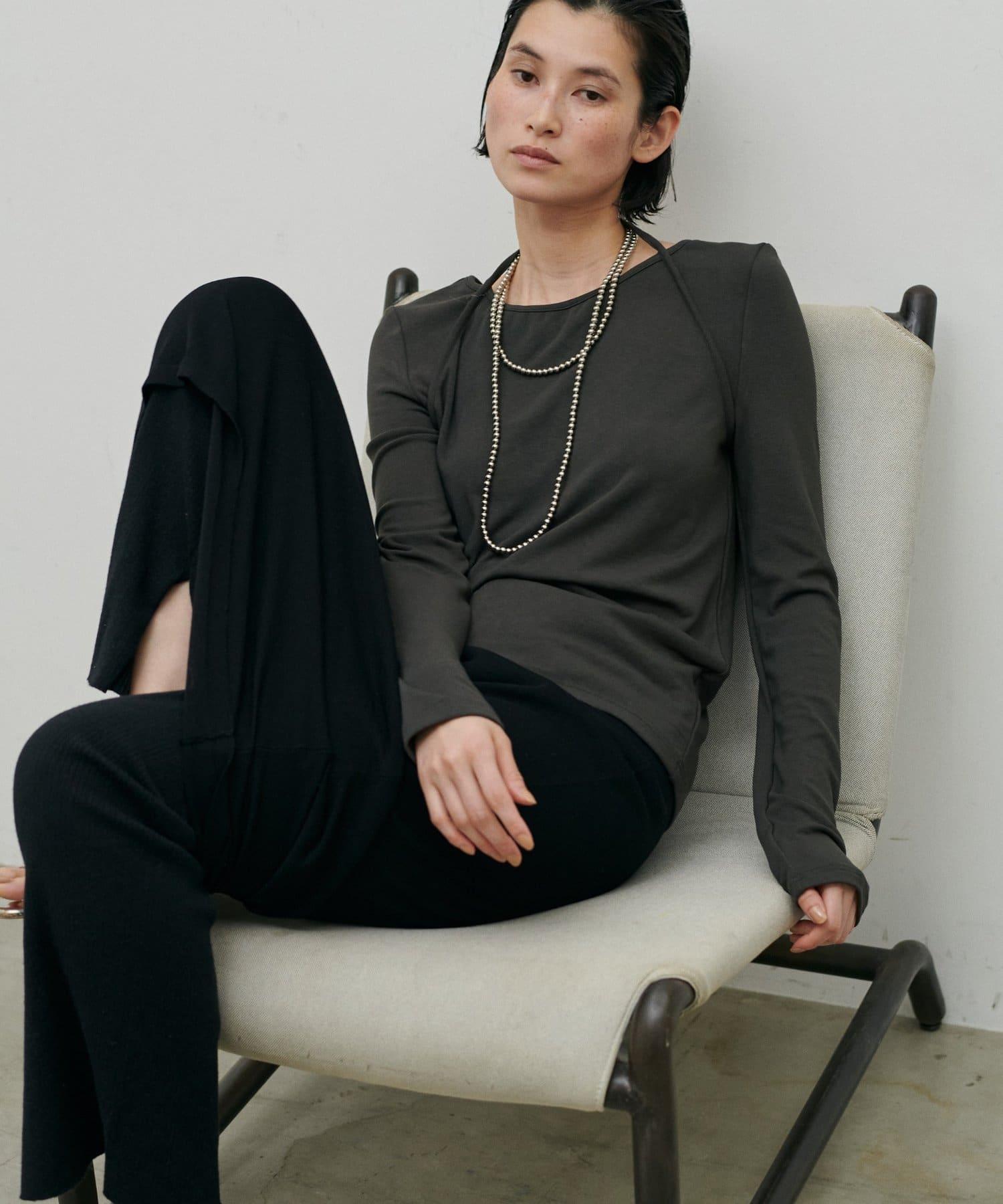 露背領設計的剪裁縫製套頭衫令人印象深刻。