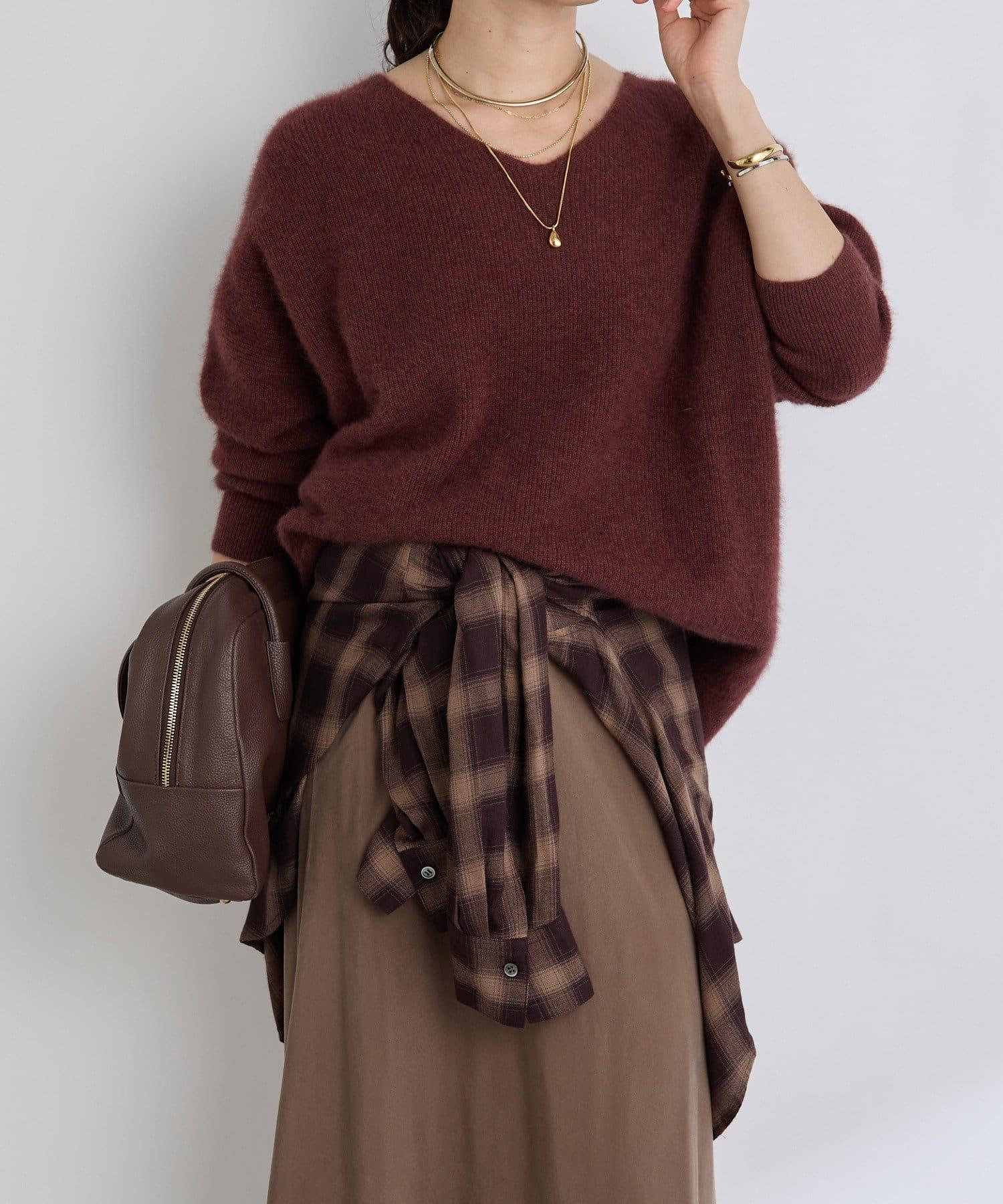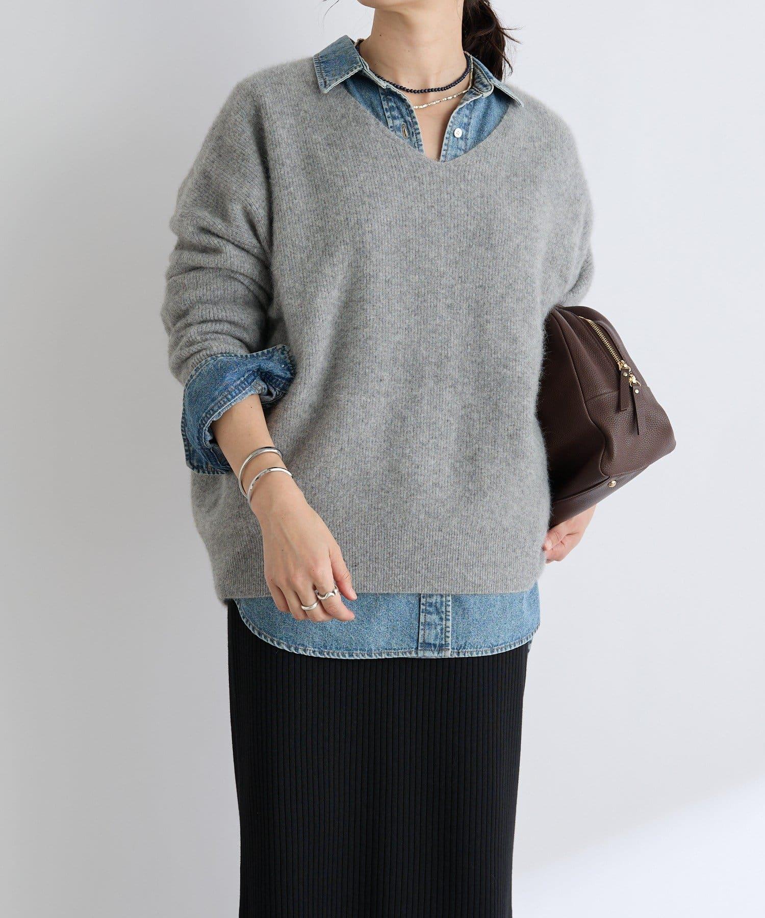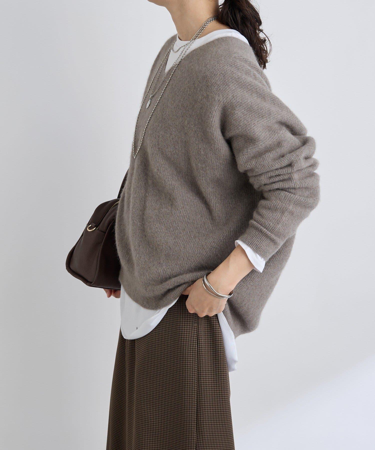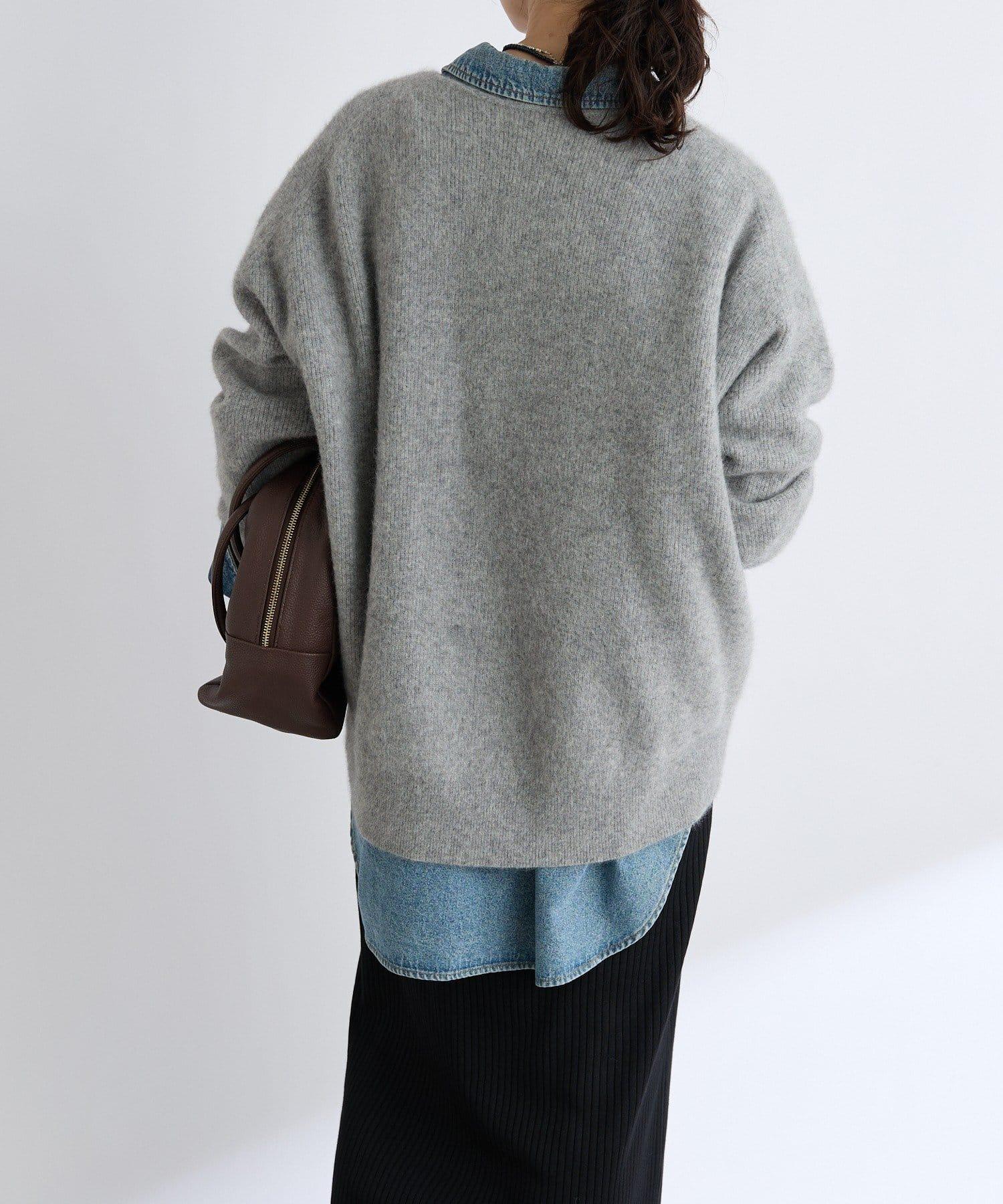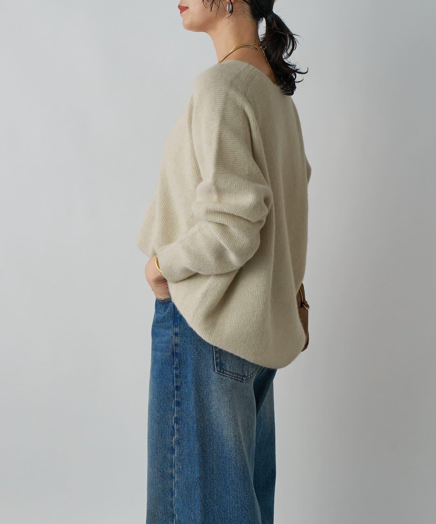 【輕盈感廓形】毛絨羊毛單面羅紋V領針織衫/預計10月上旬發貨