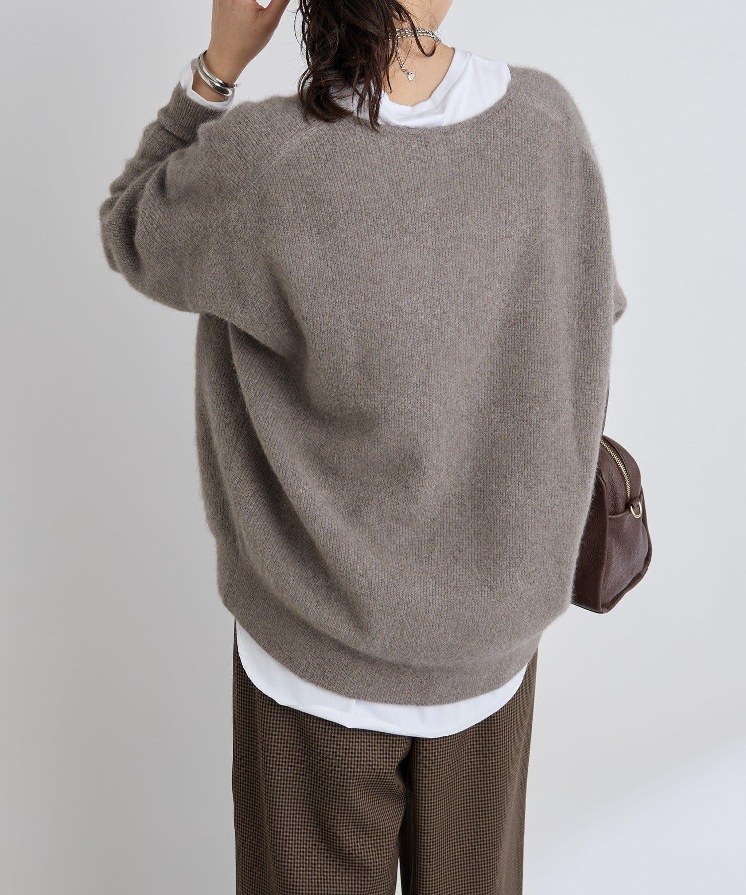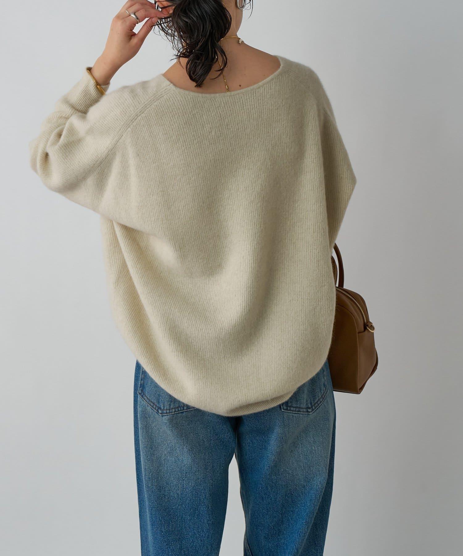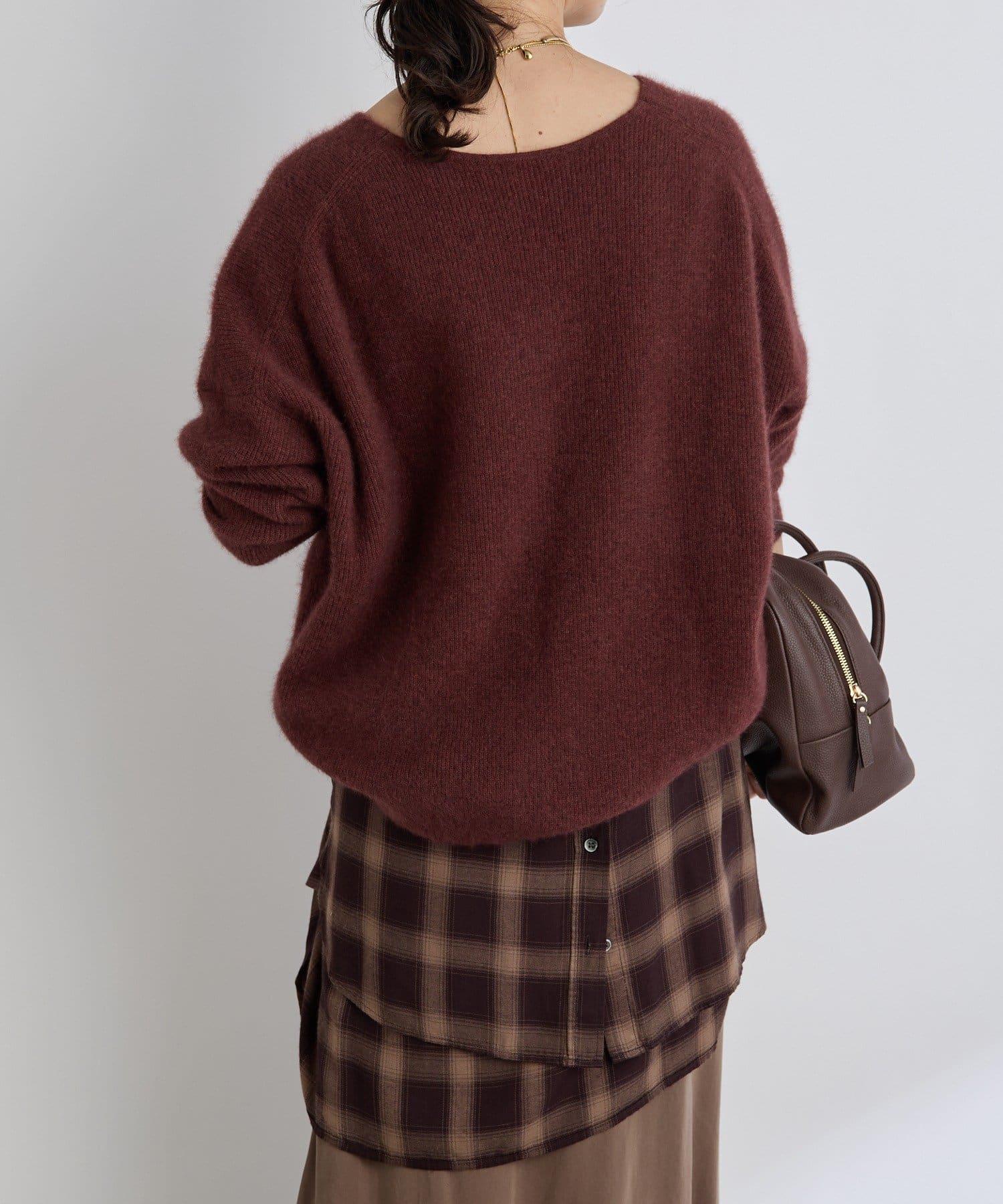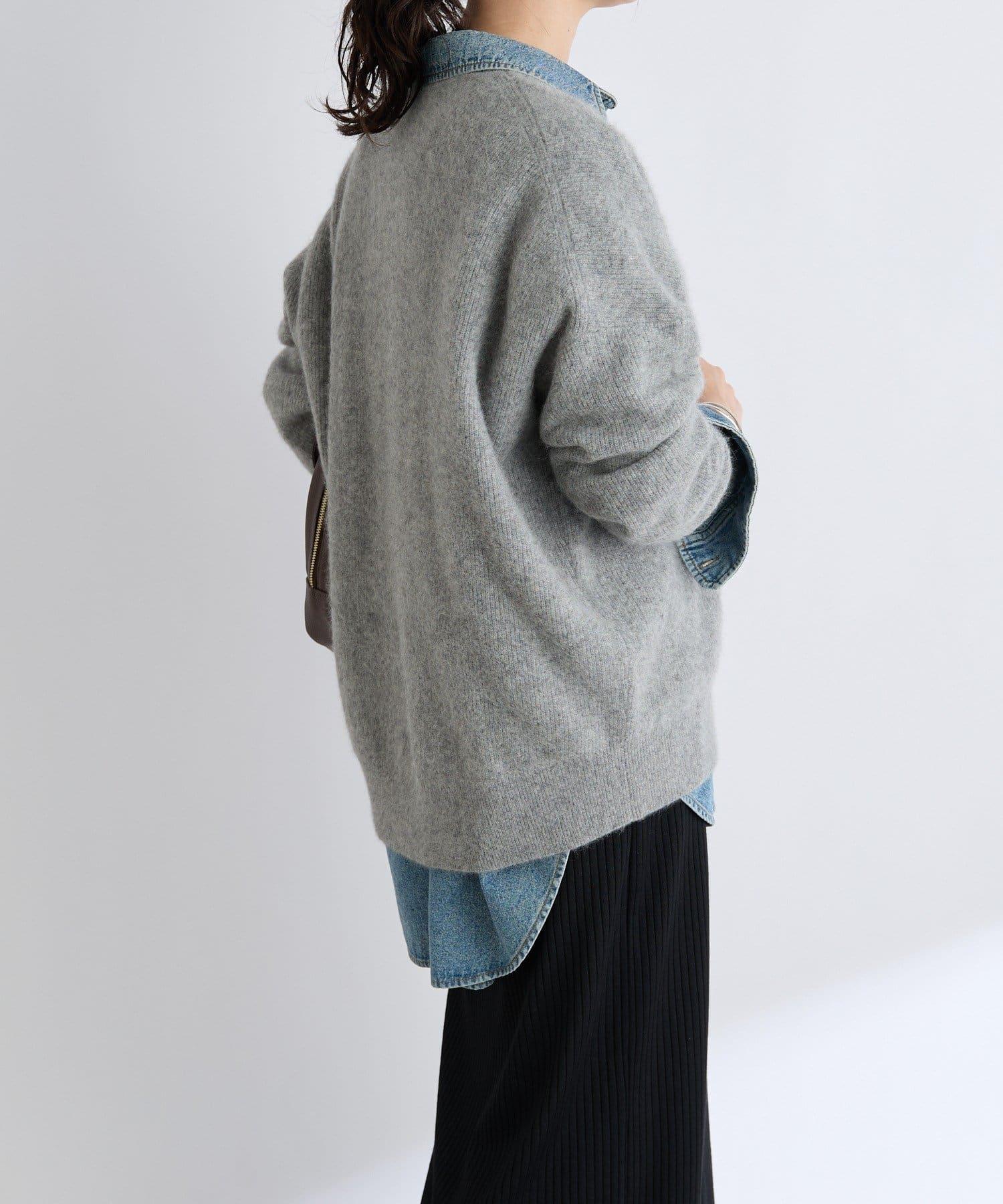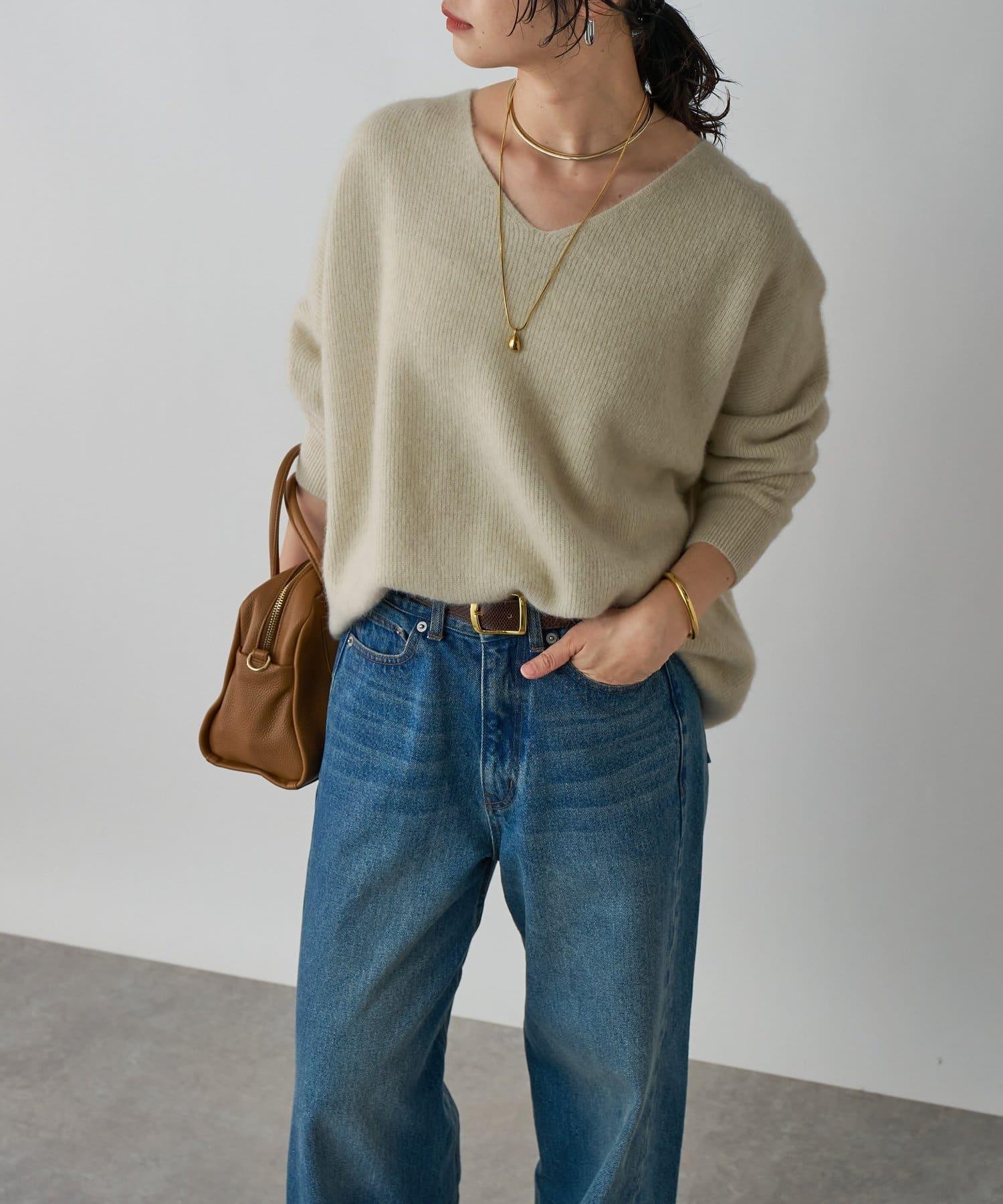 【輕盈感廓形】毛絨羊毛單面羅紋V領針織衫/預計10月上旬發貨