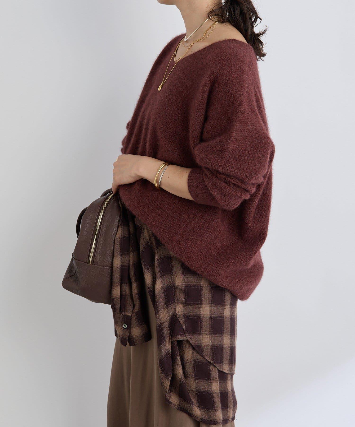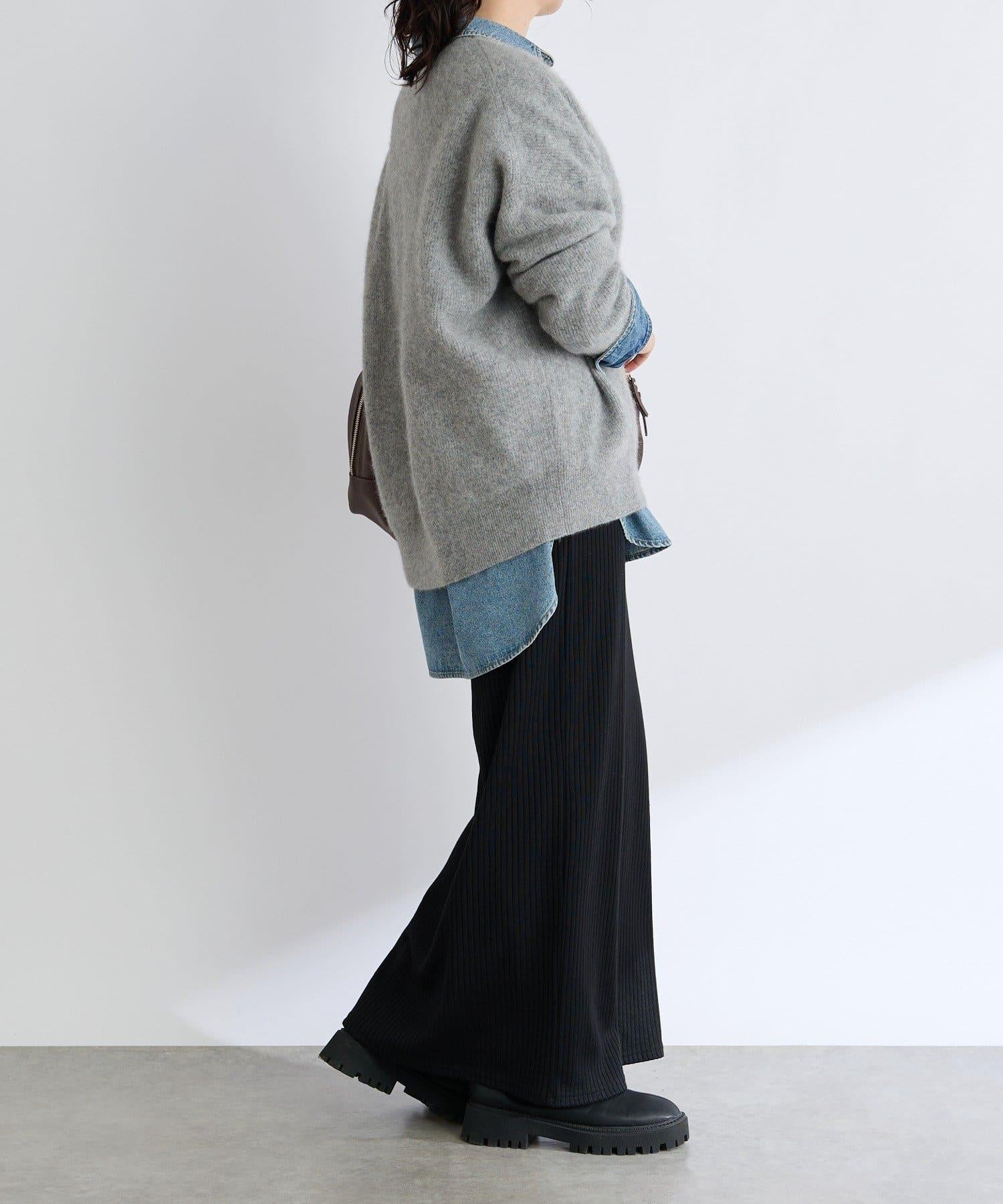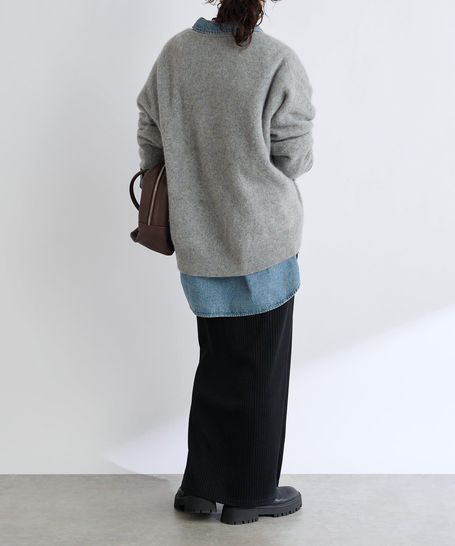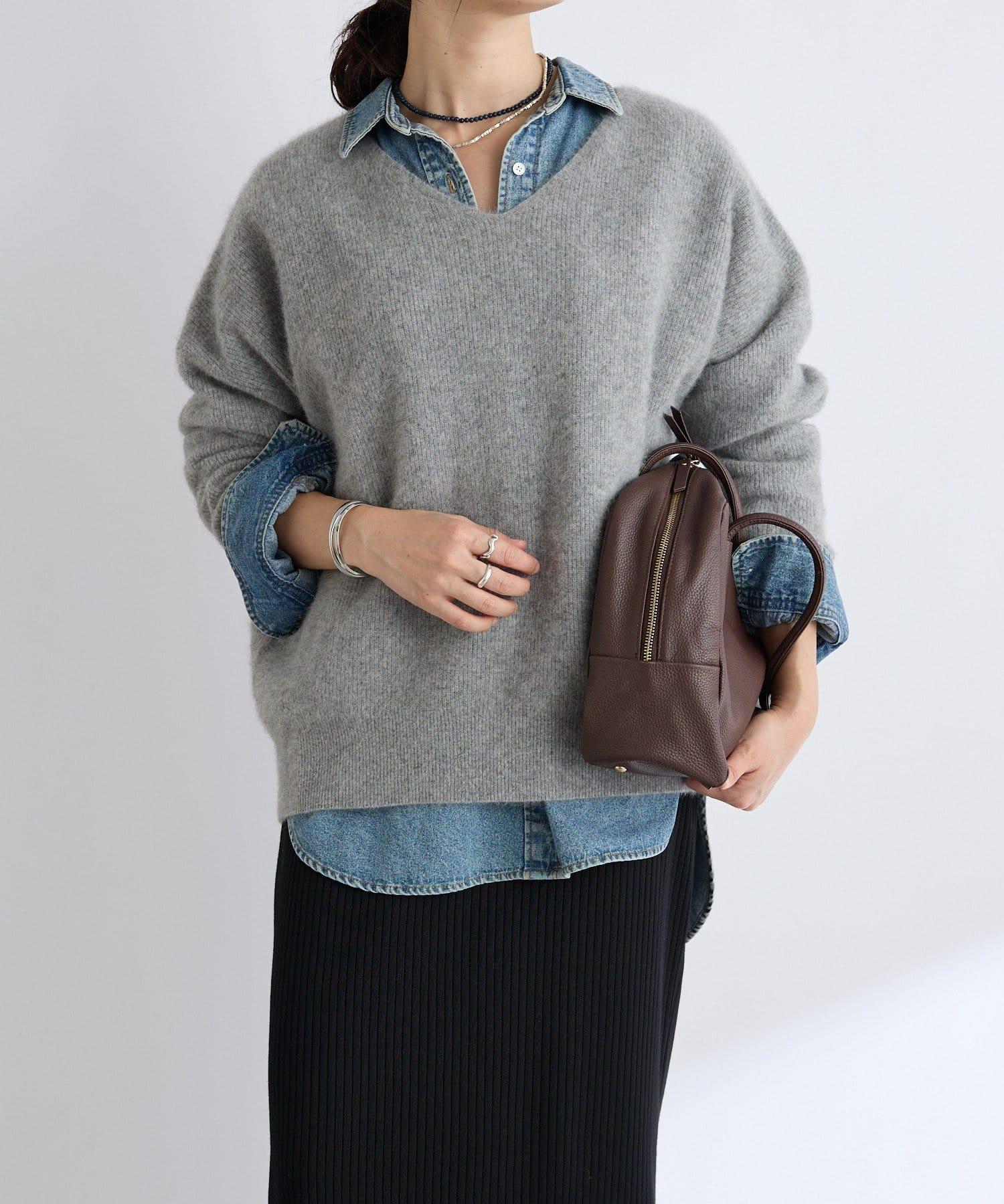 【輕盈感廓形】毛絨羊毛單面羅紋V領針織衫/預計10月上旬發貨