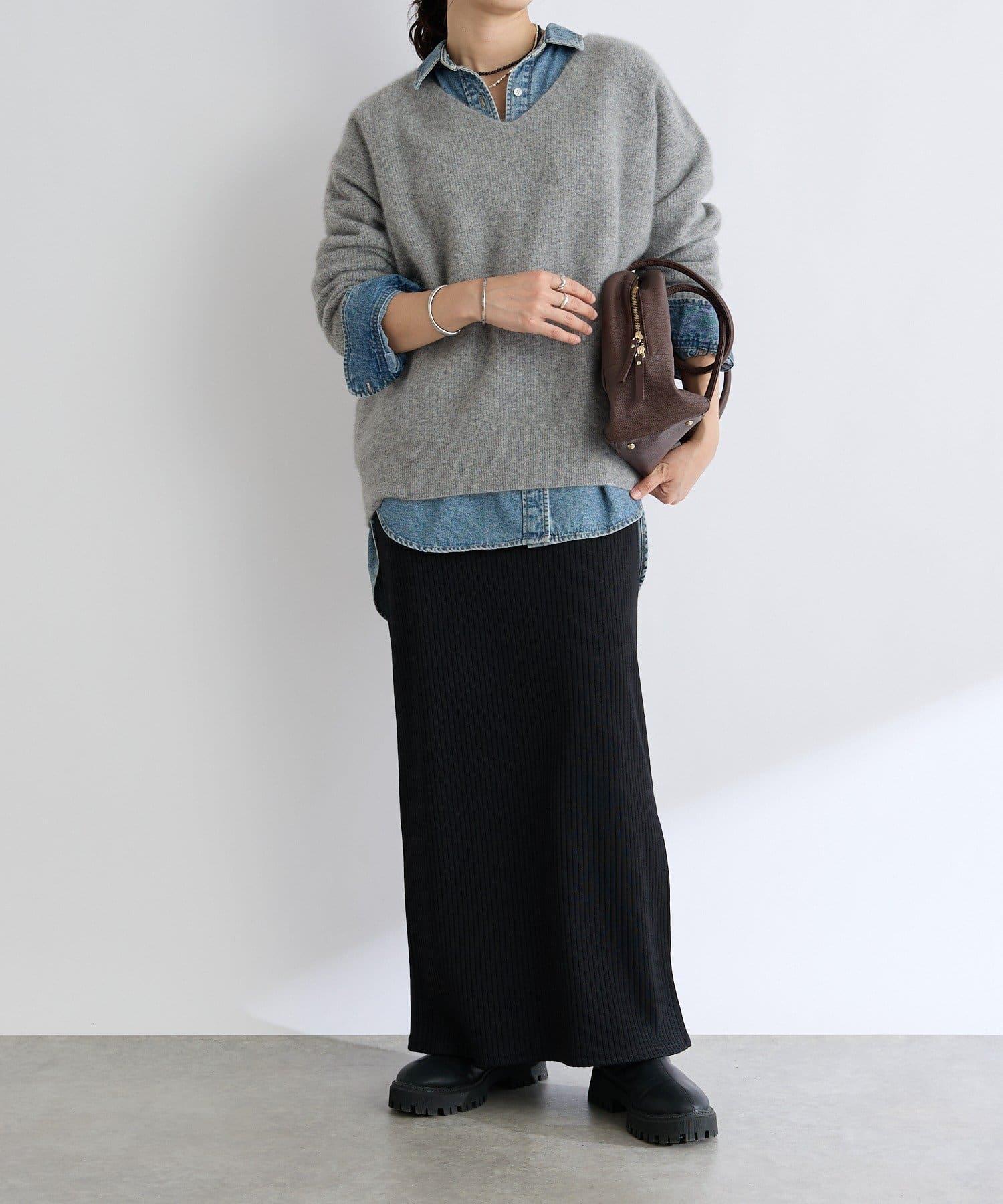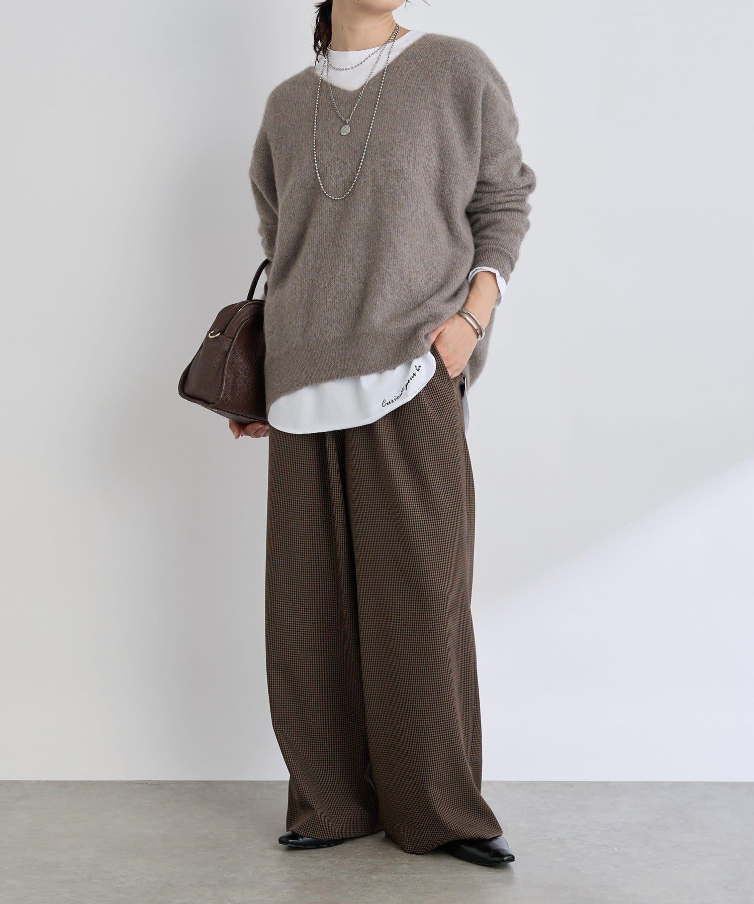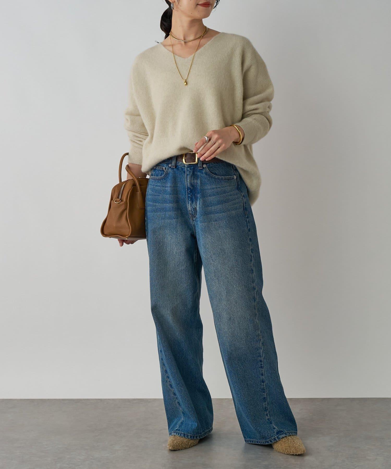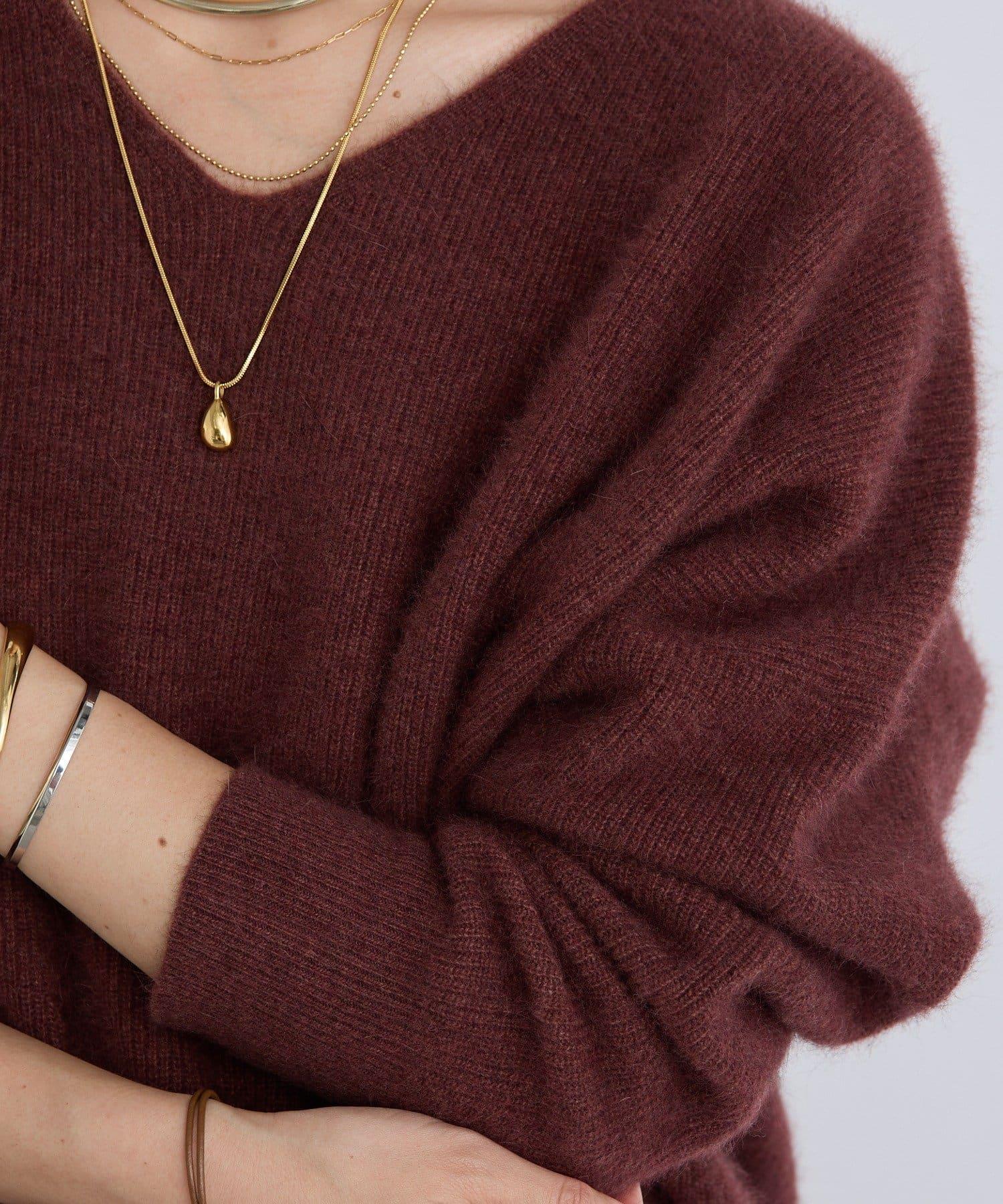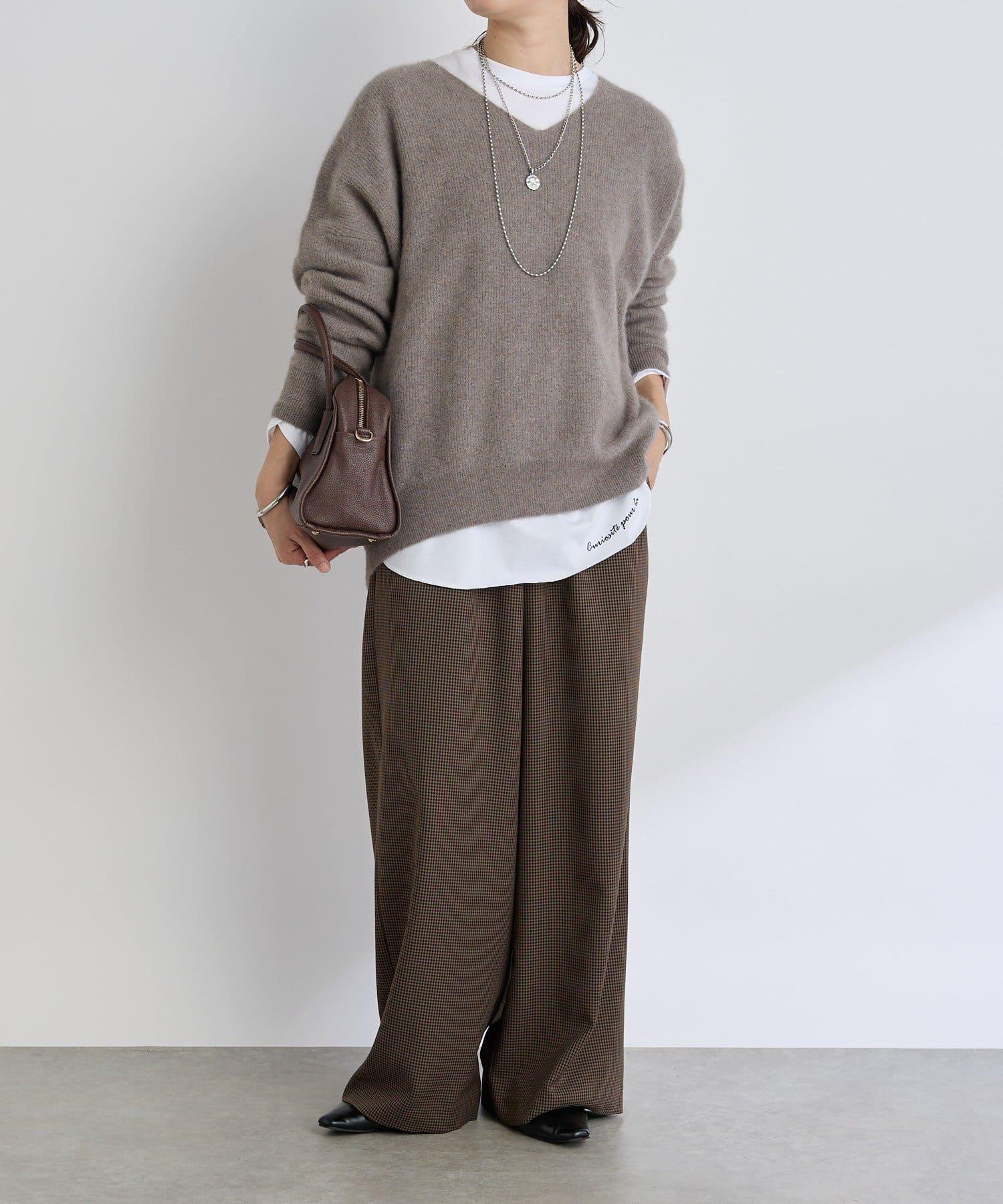 【輕盈感廓形】毛絨羊毛單面羅紋V領針織衫/預計10月上旬發貨