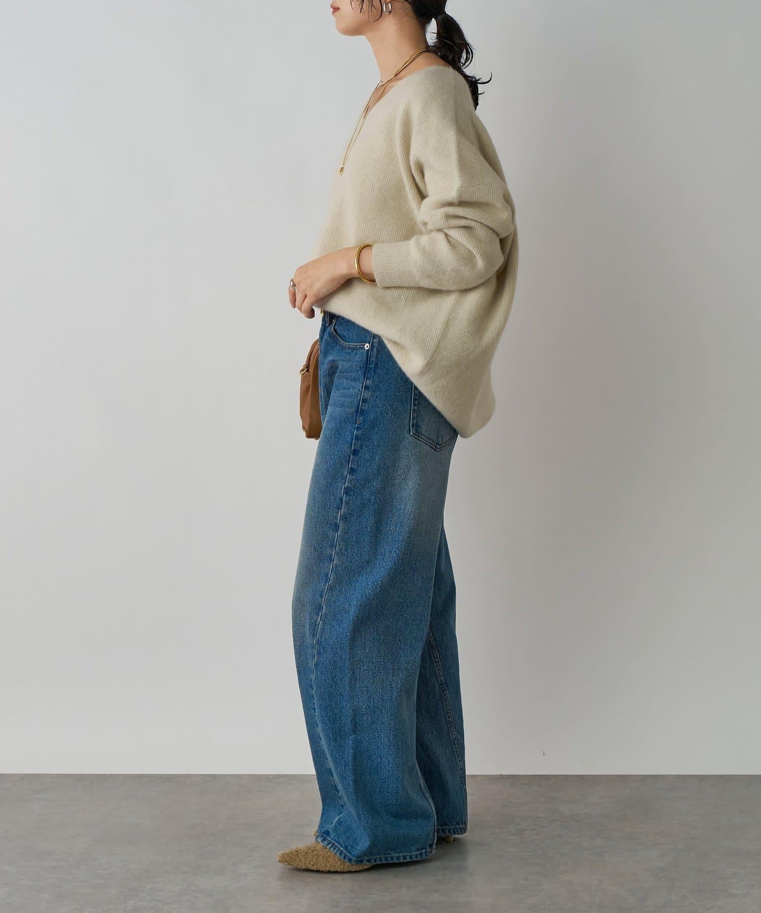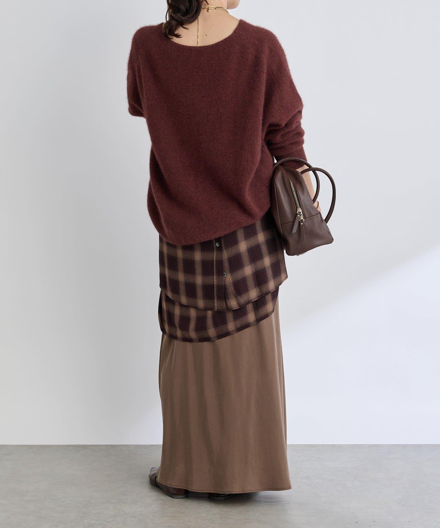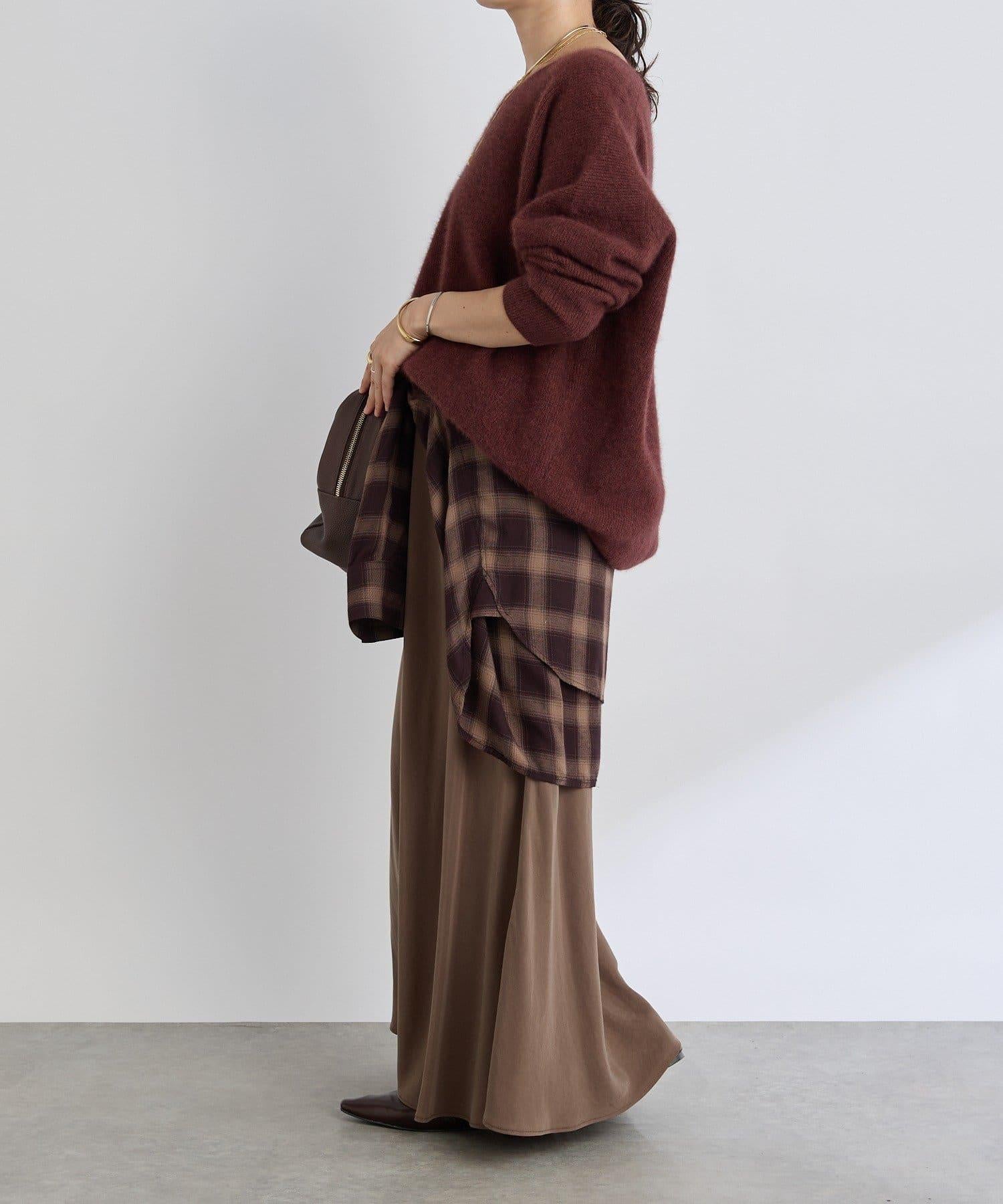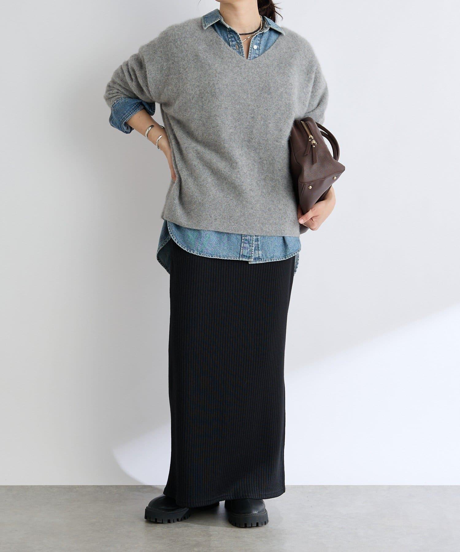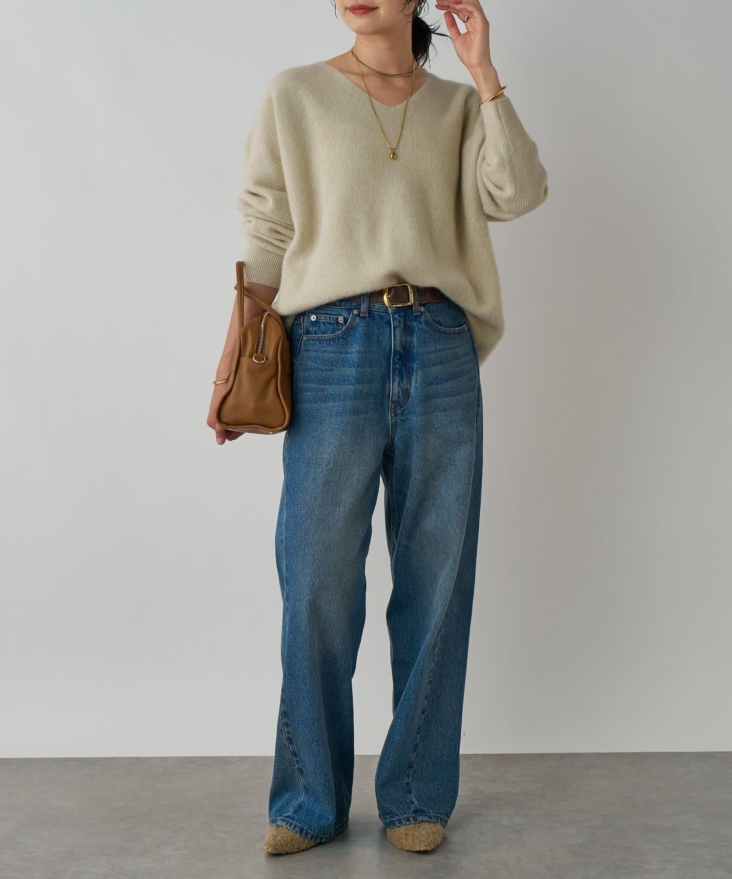 【輕盈感廓形】毛絨羊毛單面羅紋V領針織衫/預計10月上旬發貨