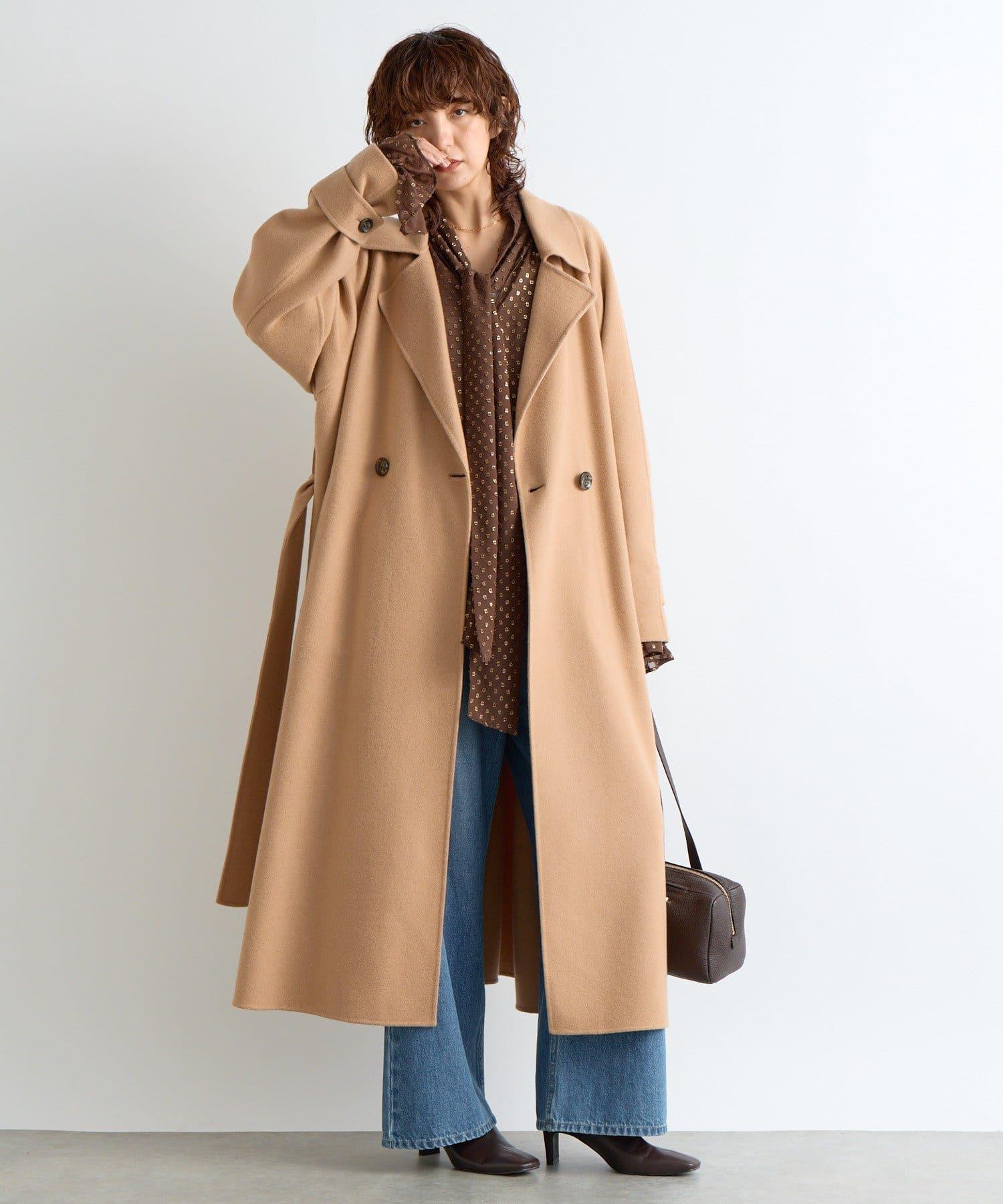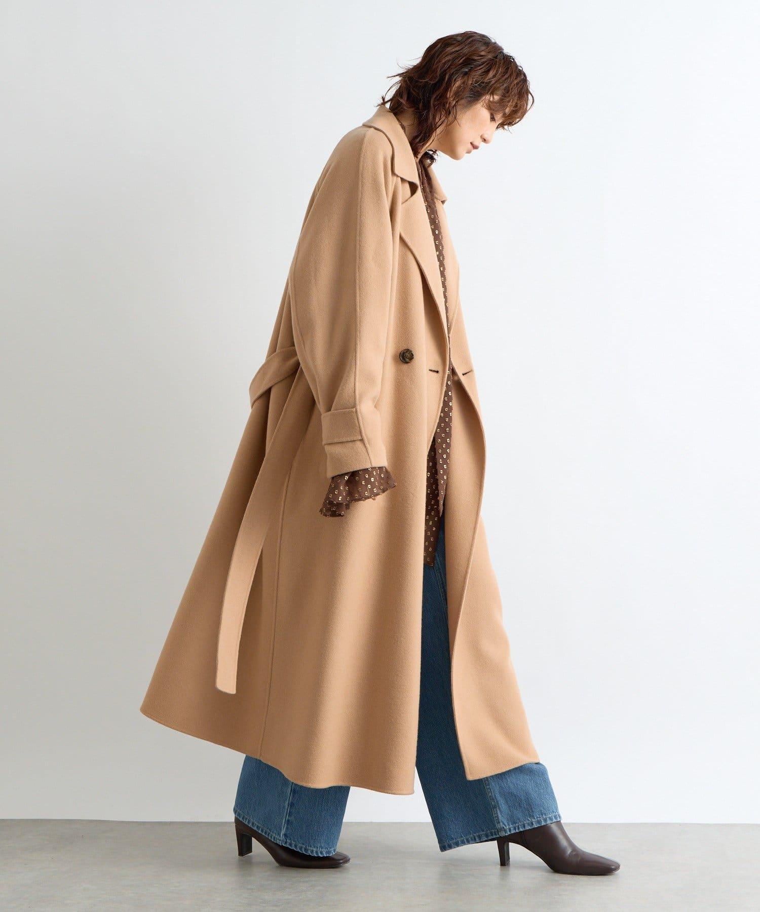 附帶的共織腰帶將腰部修飾得更加柔美。