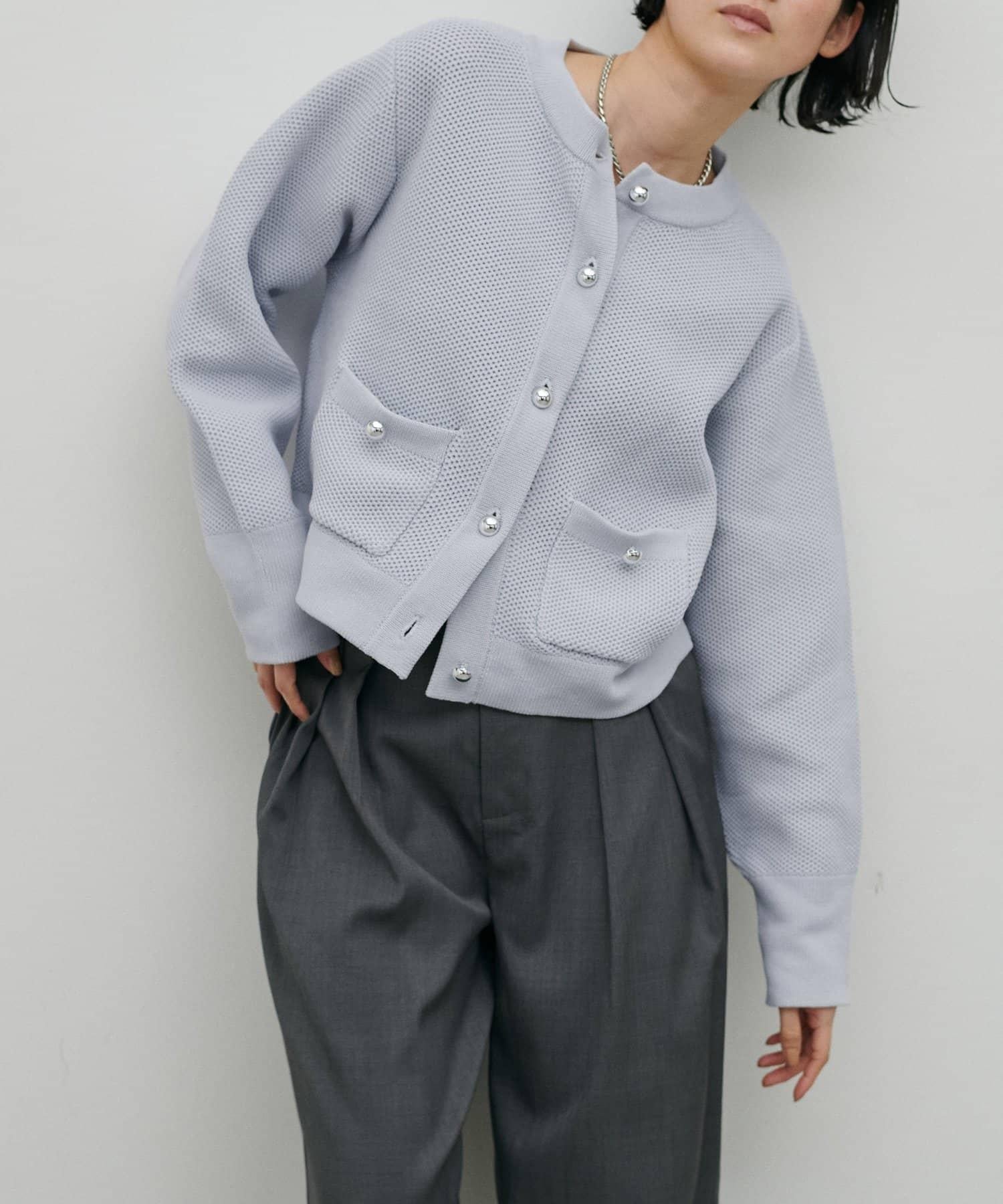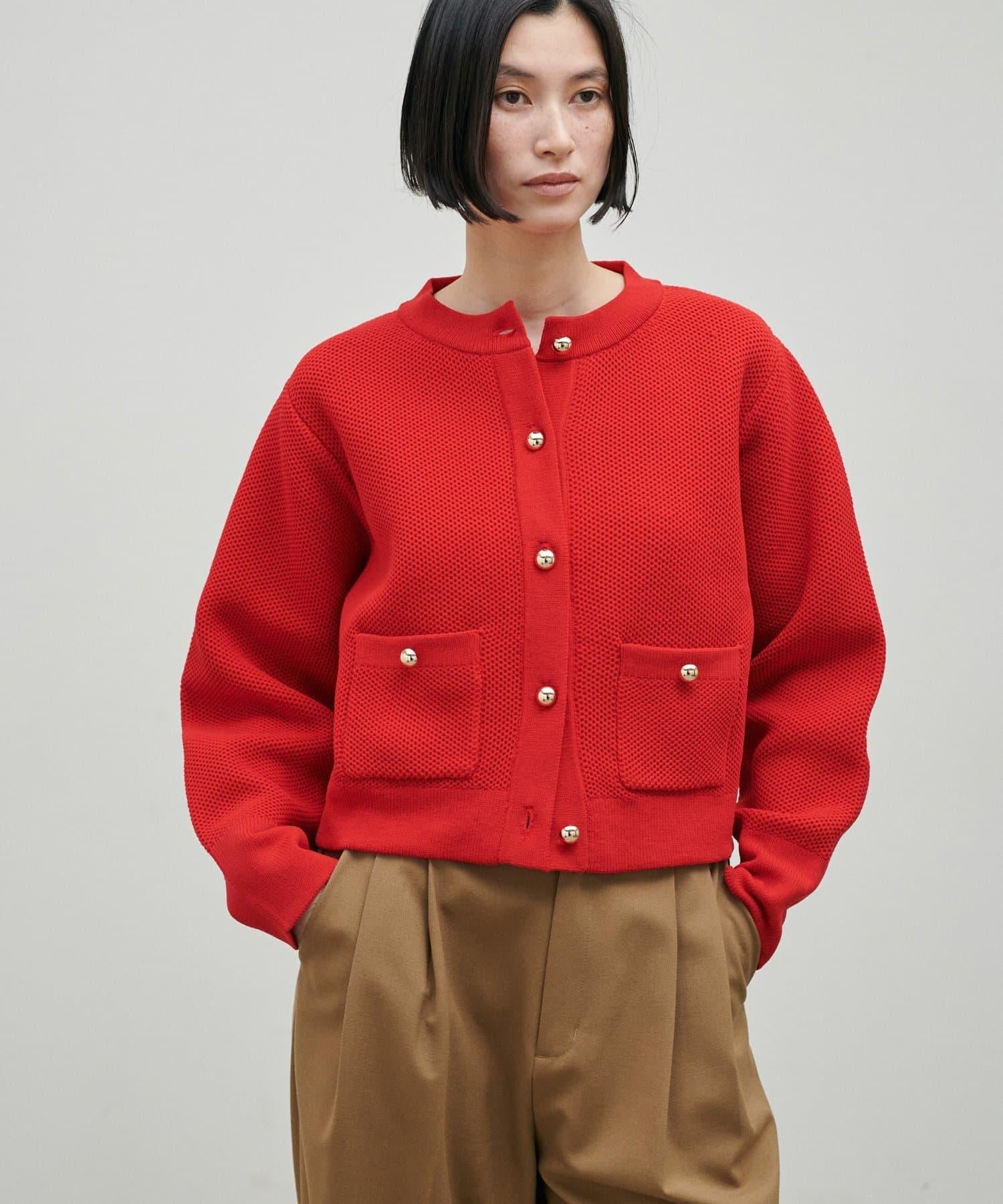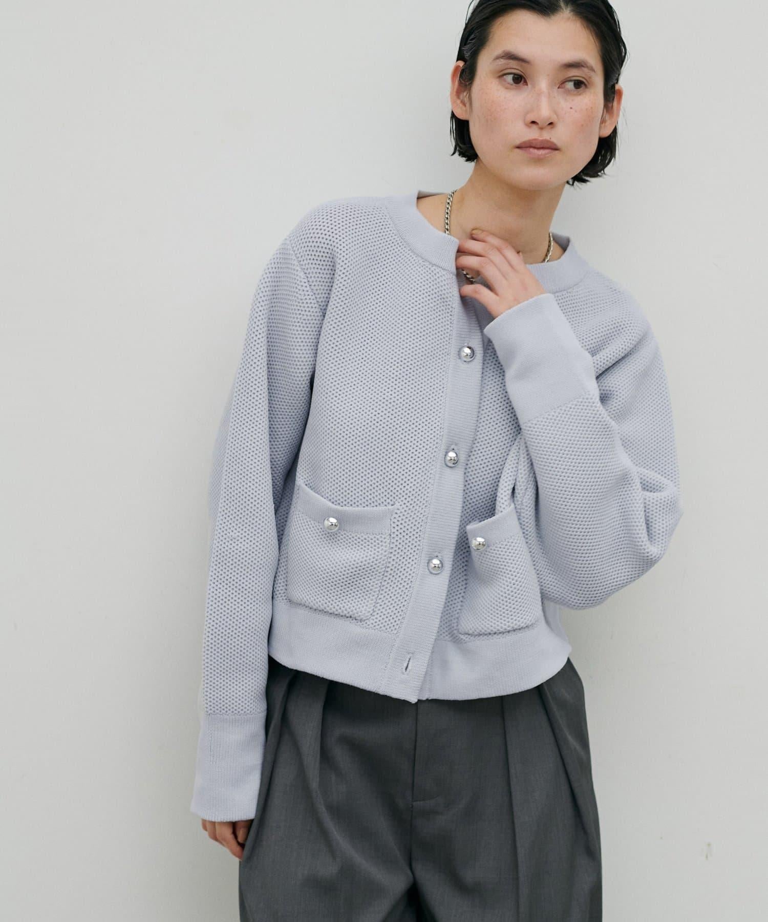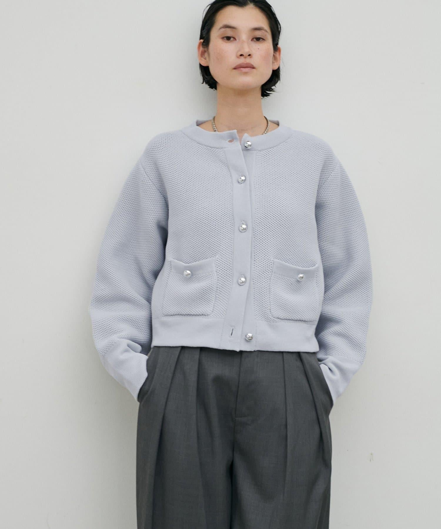 這款針織開衫採用蜂窩狀針織,表面富有表現力。