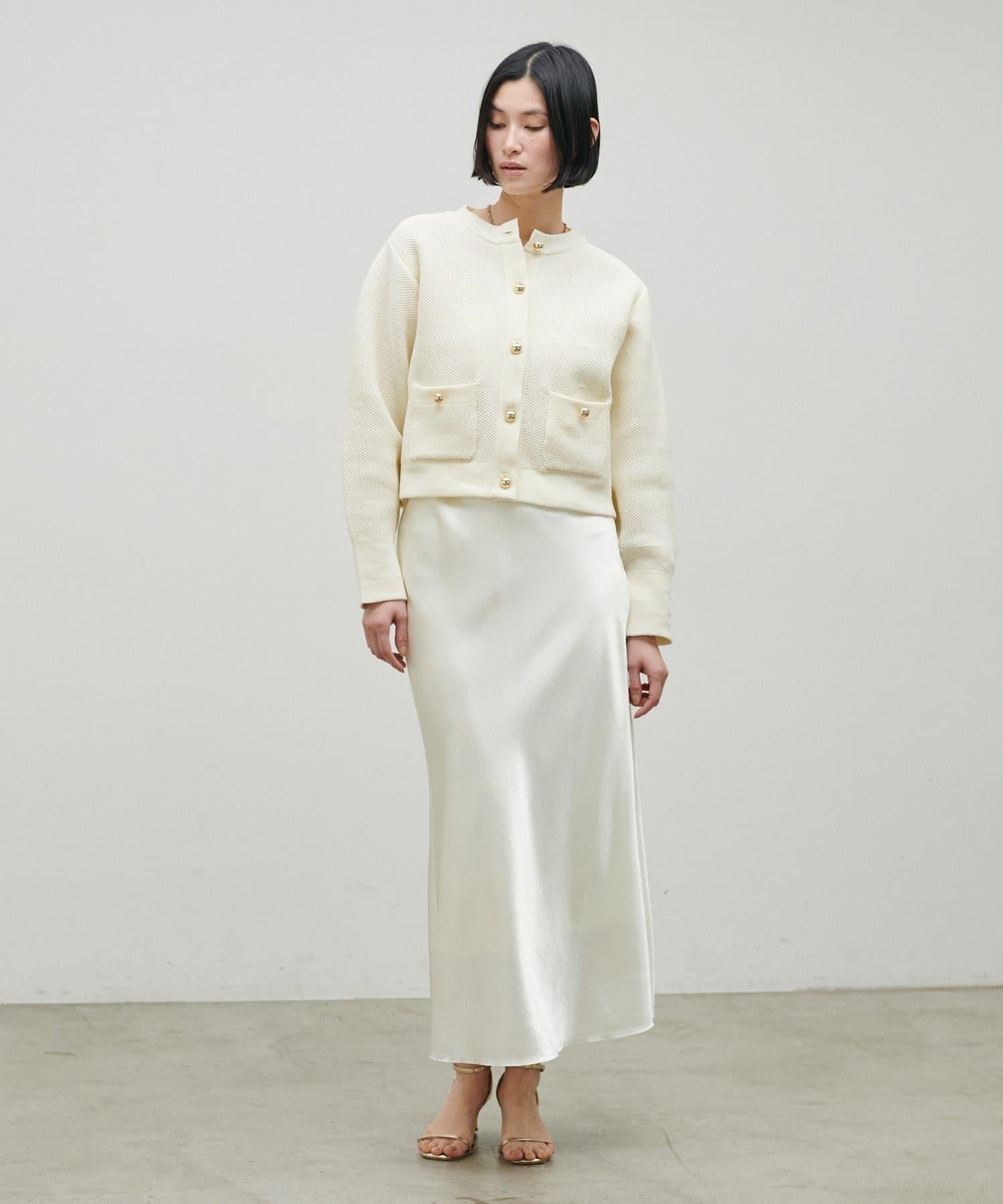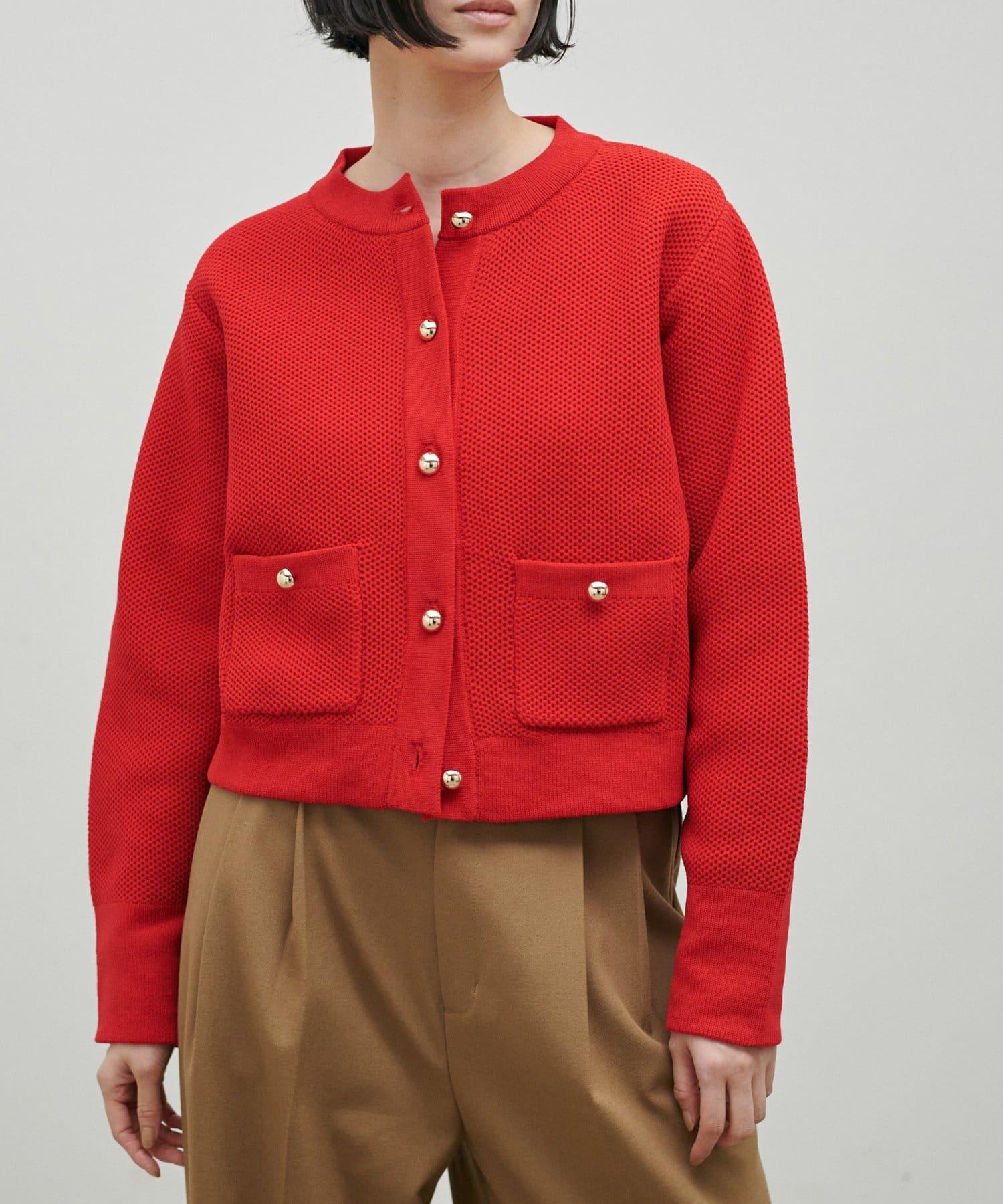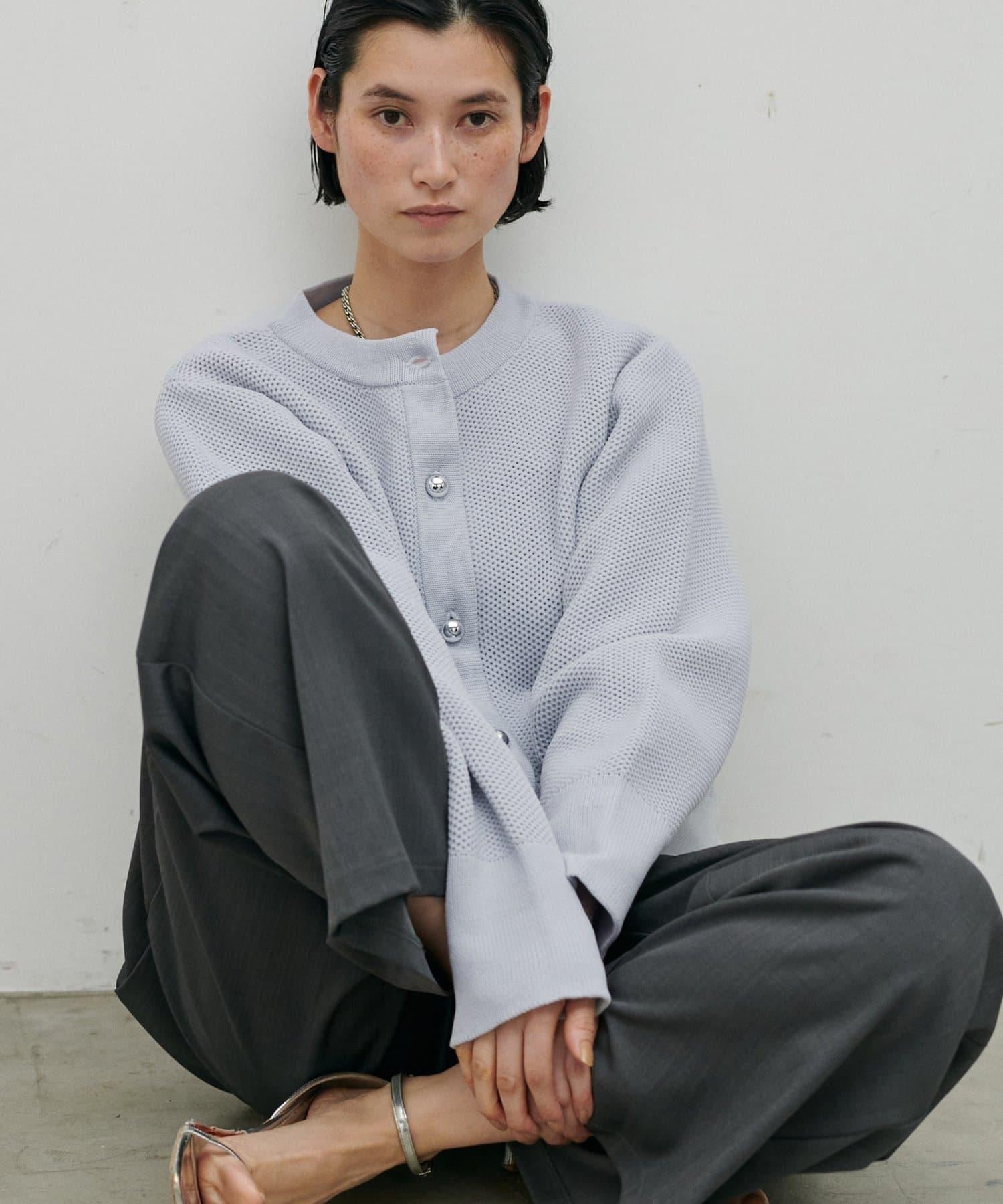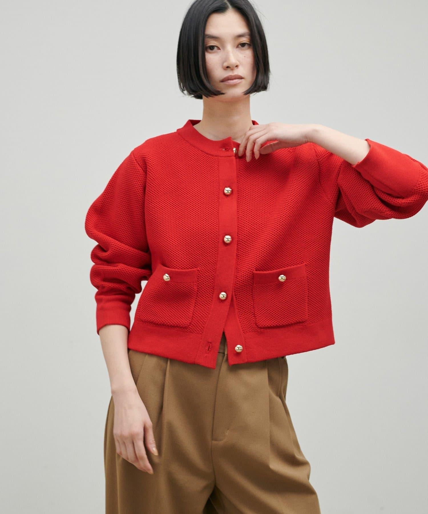 這款針織開衫採用蜂窩狀針織,表面富有表現力。
