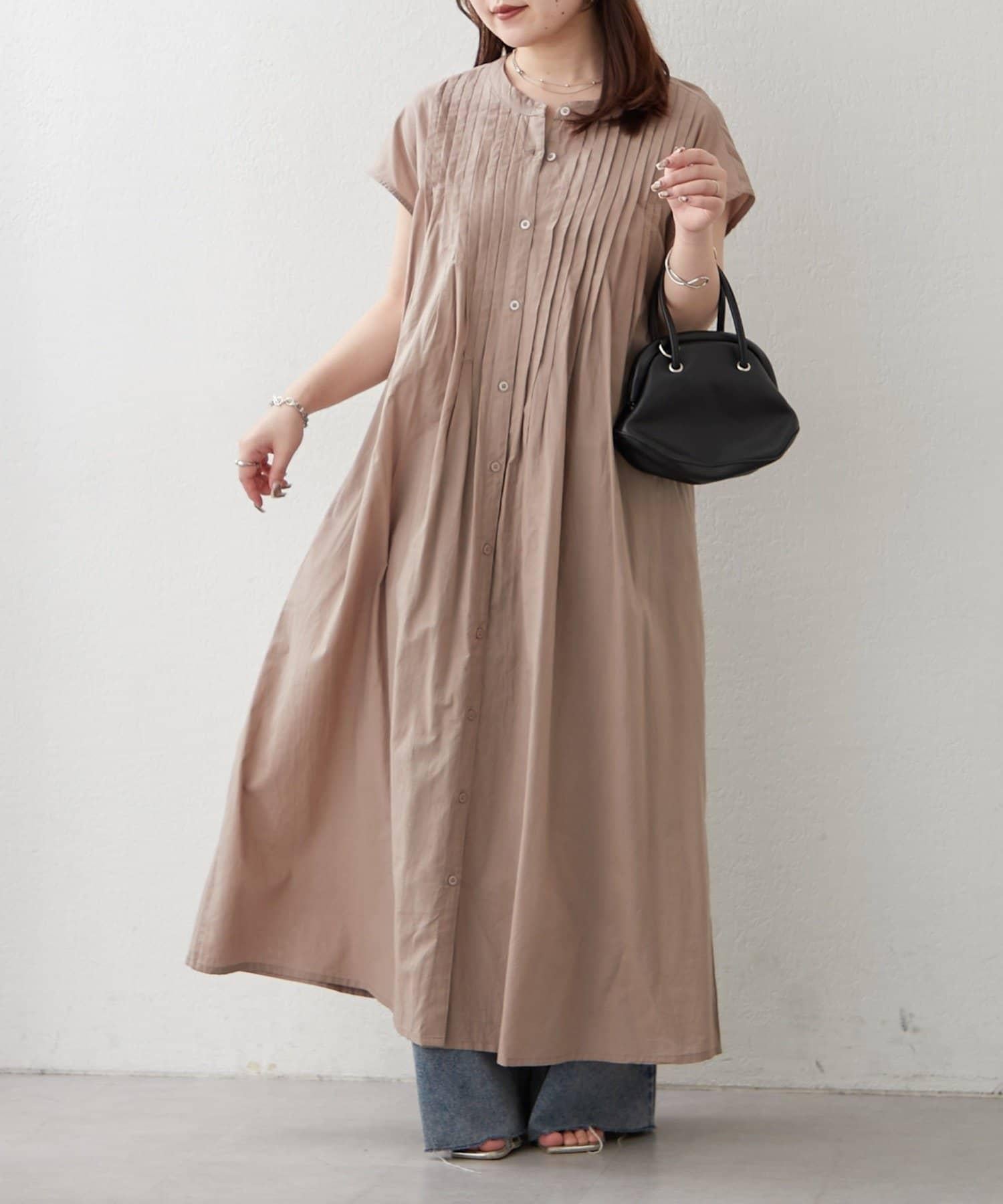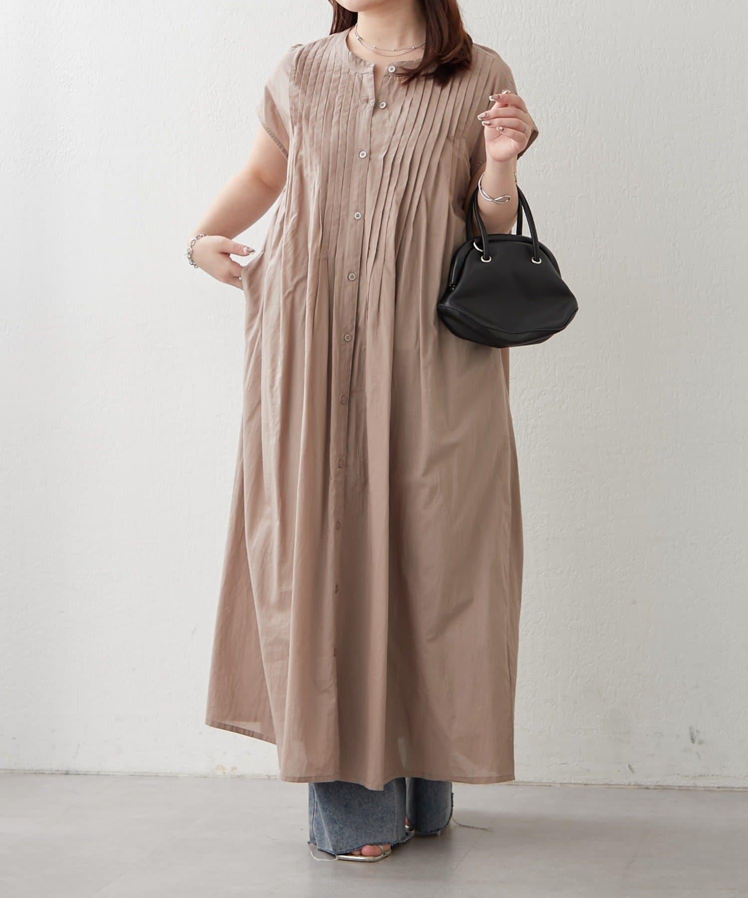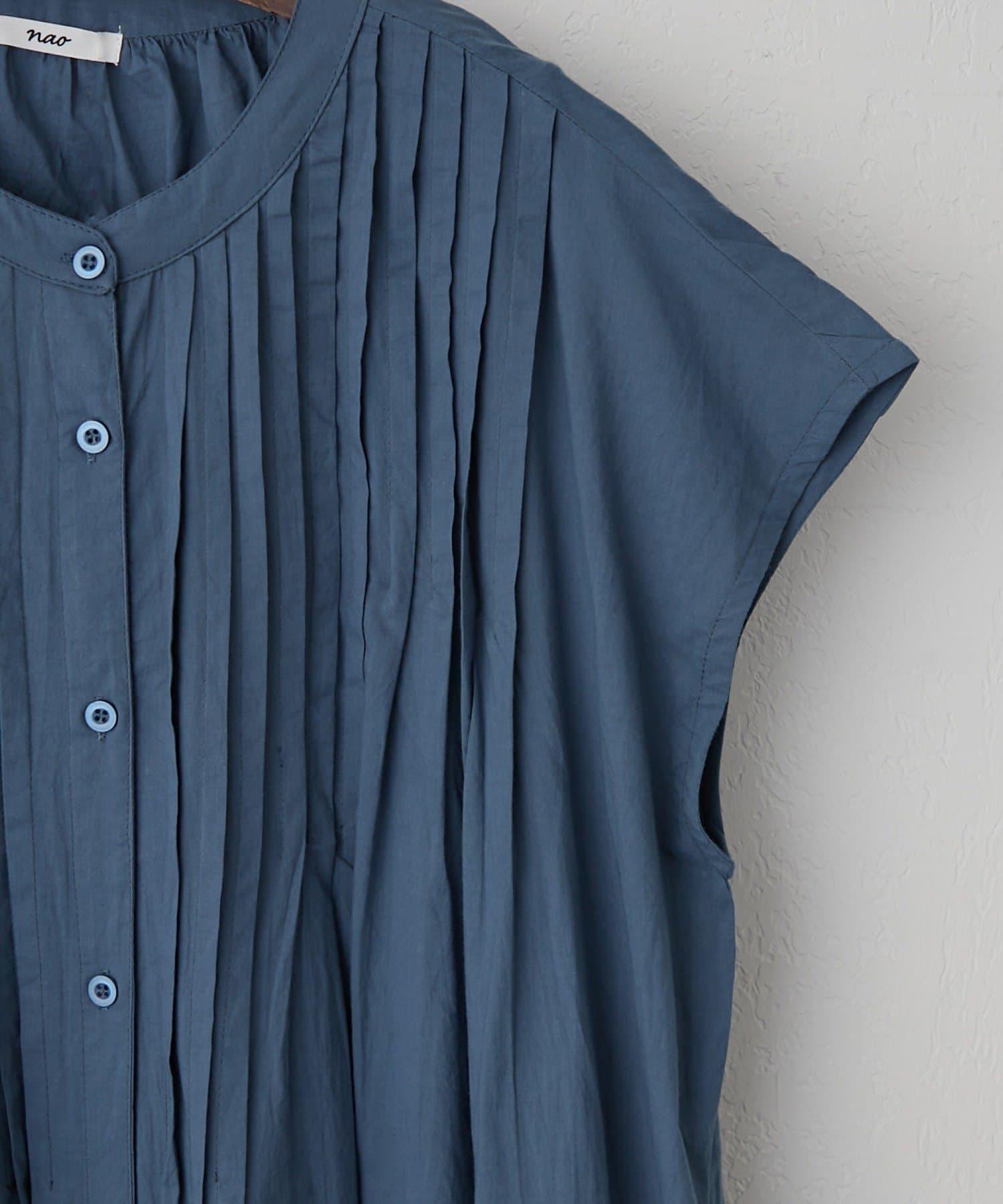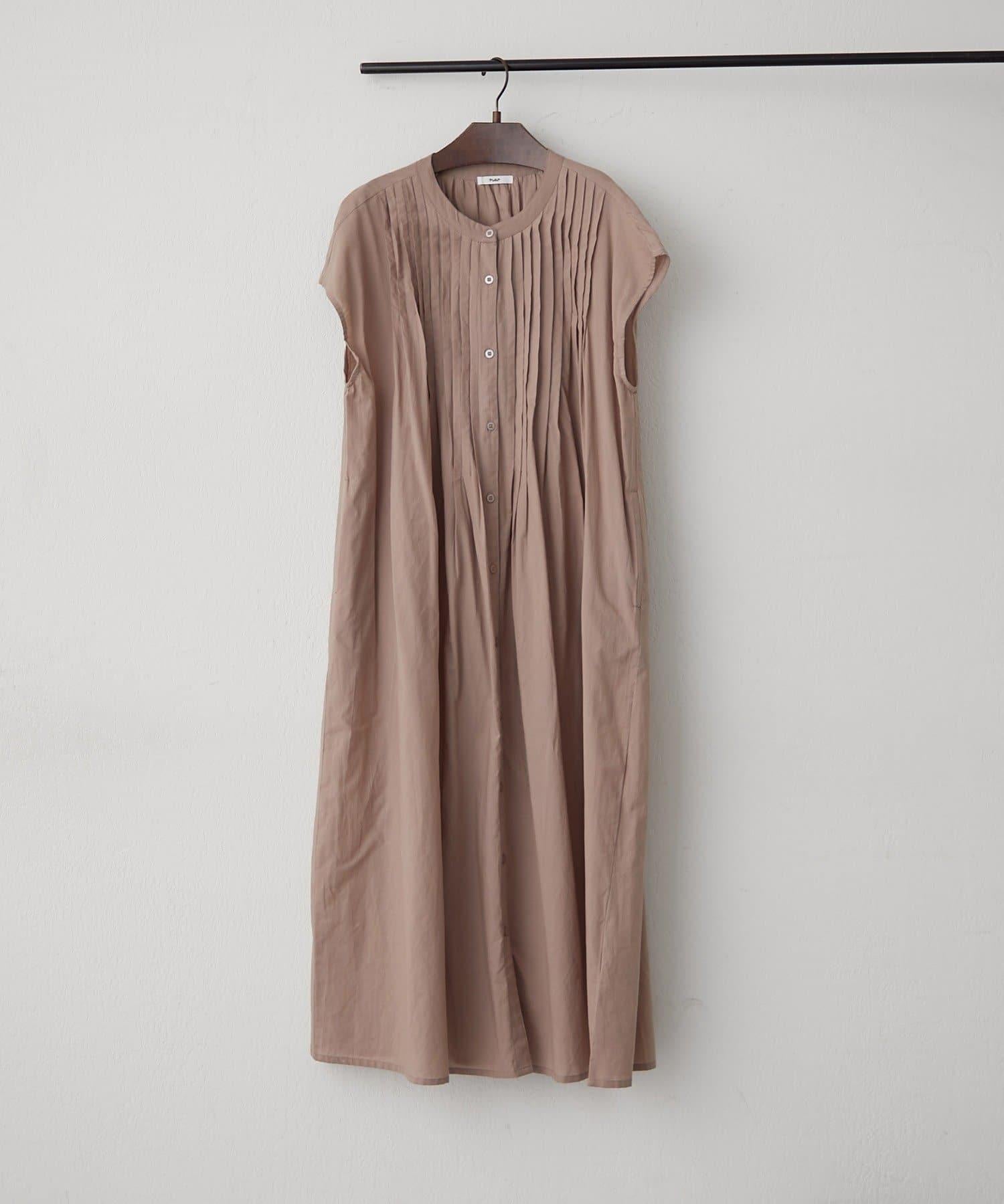 這款無袖連衣裙的前襟採用優雅的細褶襉設計。